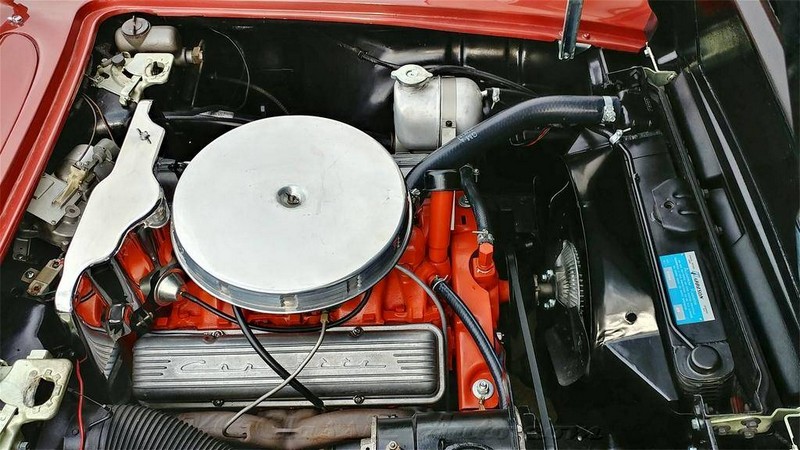 4spd manual transmission shifts great. . Excellent condition and runs even better than it looks. The original numbers matching 327 and makes this car run like a rocket. Comes with the Wonderbar radio. The frame is solid.
