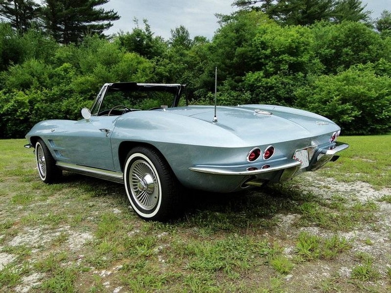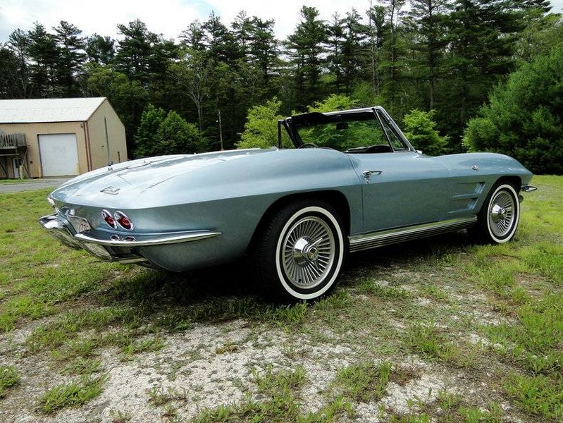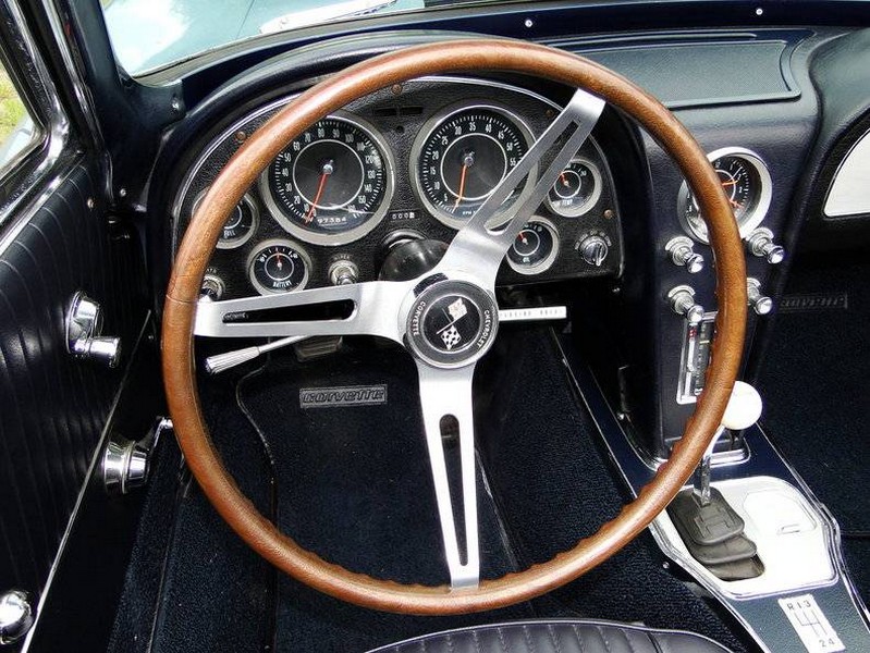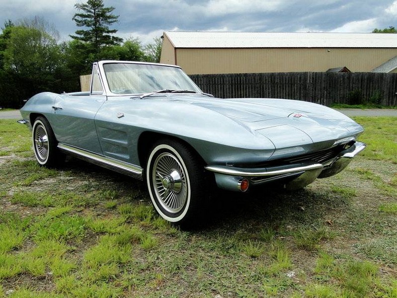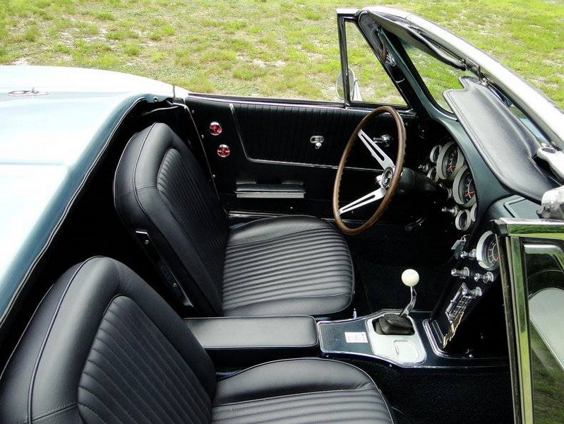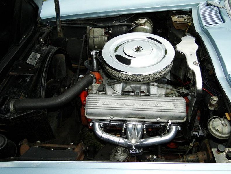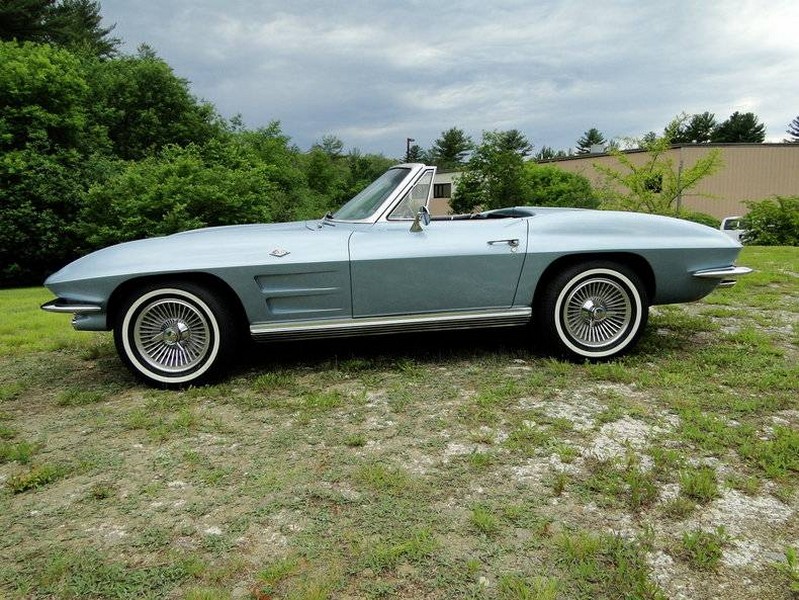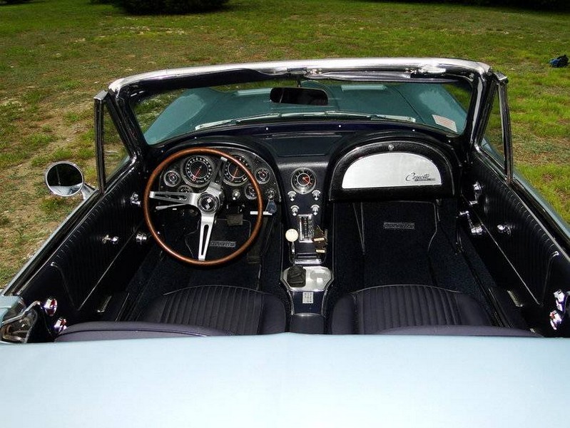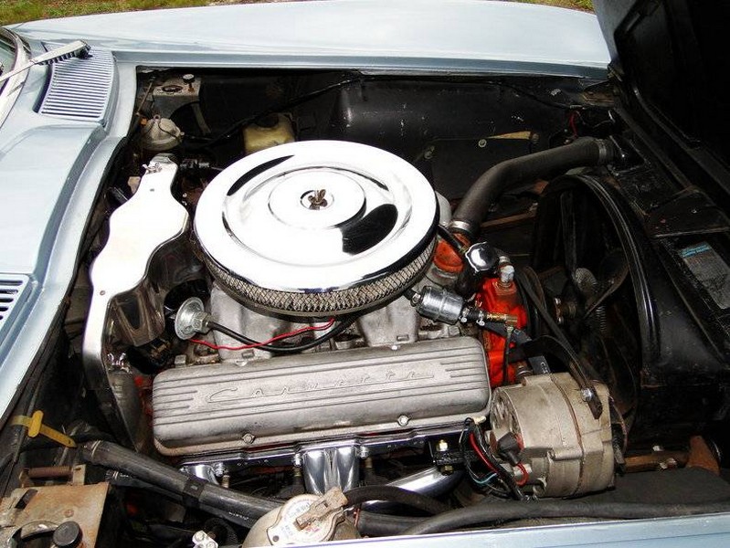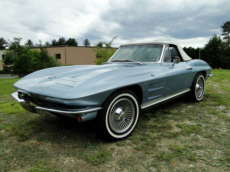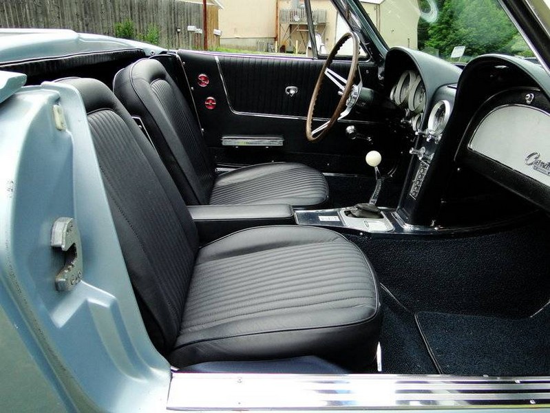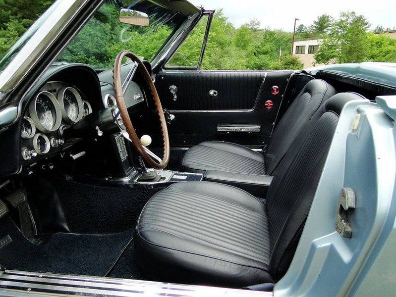 1964 Chevrolet Corvette Convertible is in very good condition from the silver blue paint to the newer blue interior upholstery with leather seating. The period correct 327 cubic inch motor with 4 speed manual transmission runs beautifully and pulls strongly down the road on this solid Corvette Convertible.