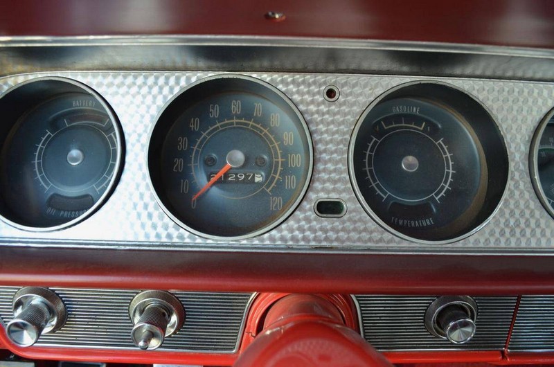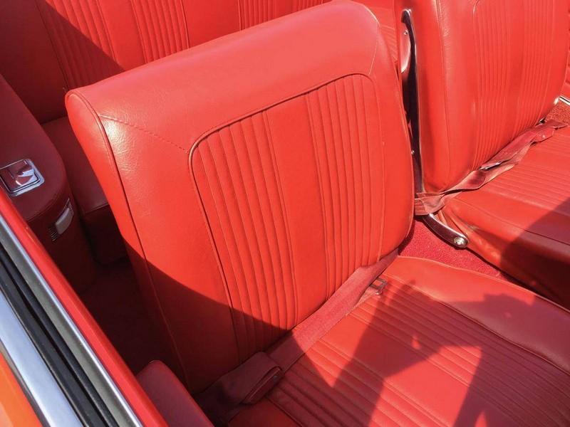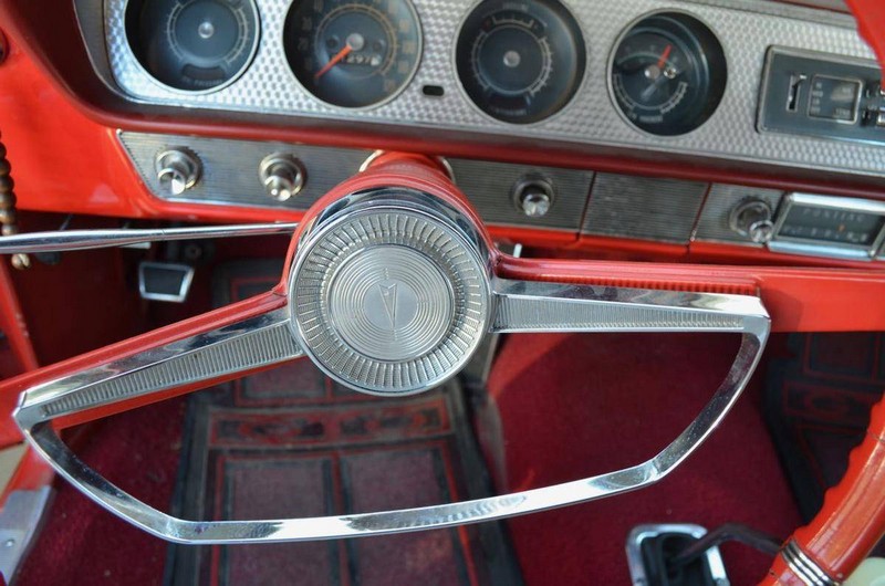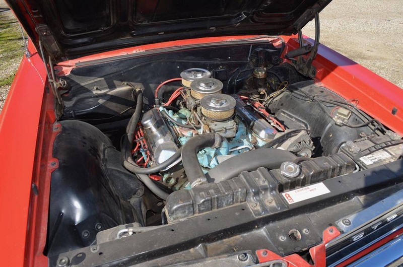 The odometer reads an incredible 21,297 original miles since new. Power is provided by by a 389 V/8 with Tri-Power matched to a factory 4-speed standard transmission. Factory Vinyl interior upholstery is outstanding. Interior hardware, control levers, handles, dashboard, garnish moldings, steering wheel, dash pad, seats, doors, panels, headliner plus sun visors are rated #2 (Excellent). Back seating appears to be rarely if ever sat-in. The spare tire including tools are still mounted in the trunk.