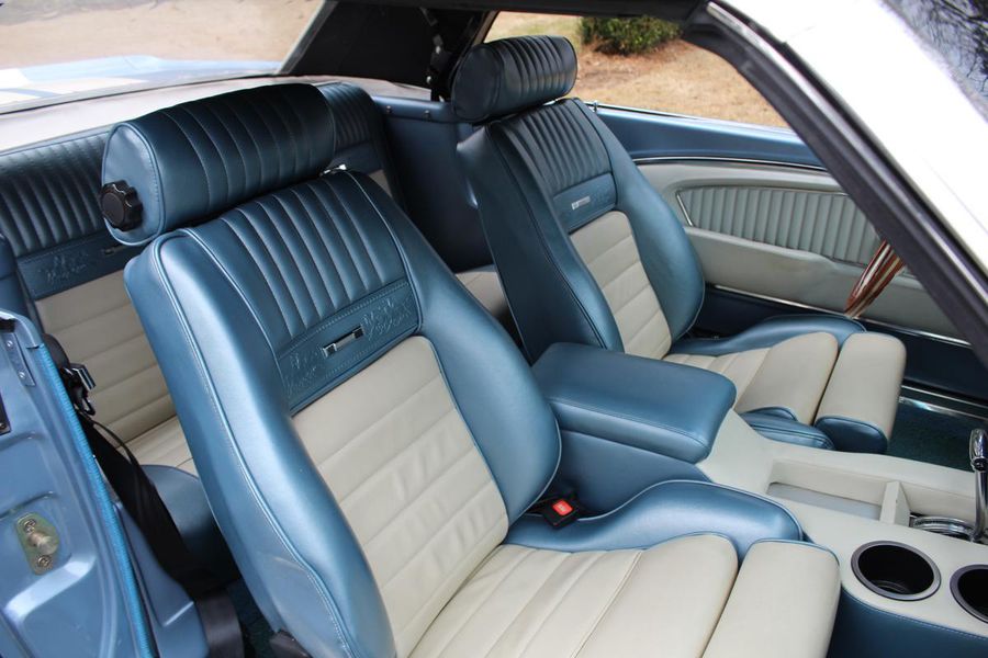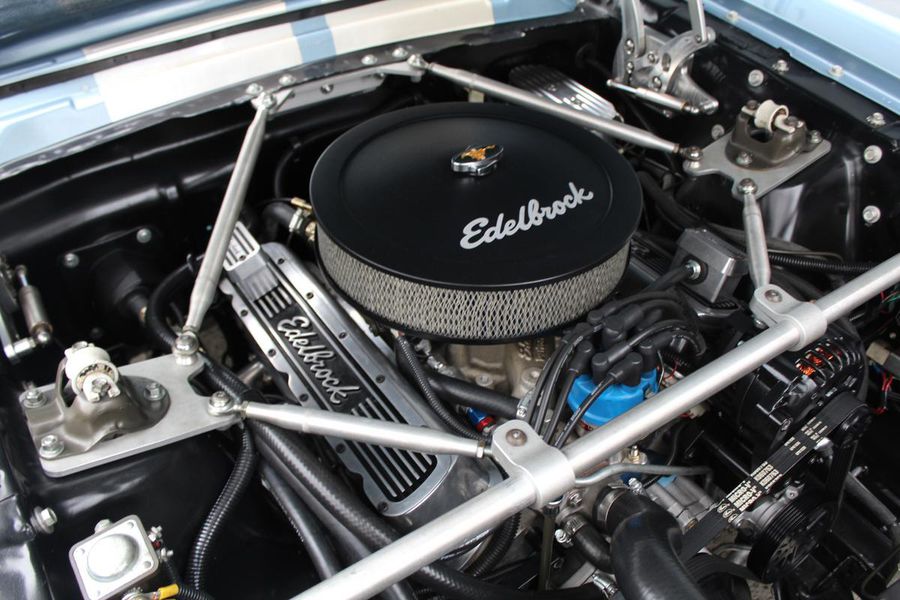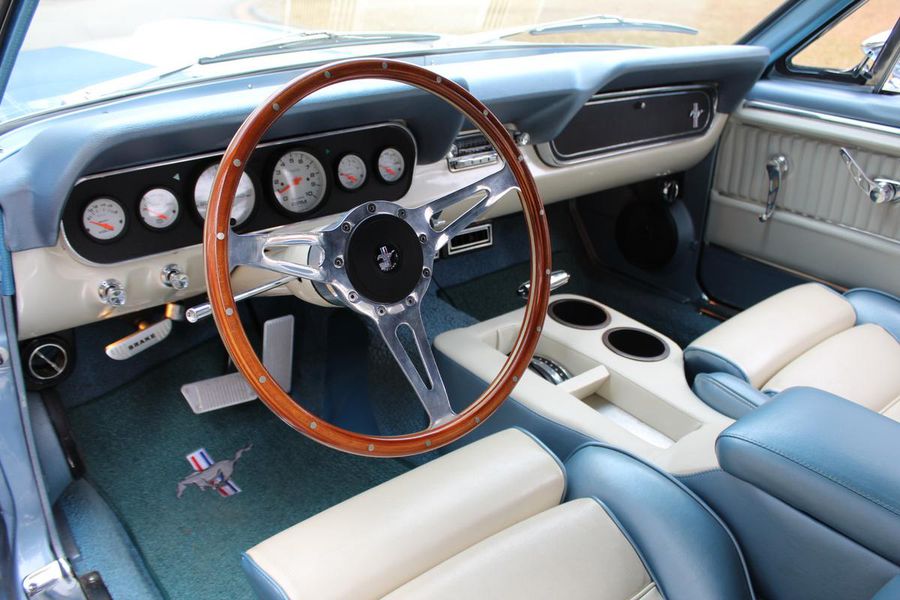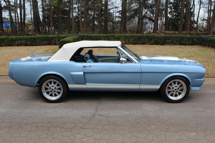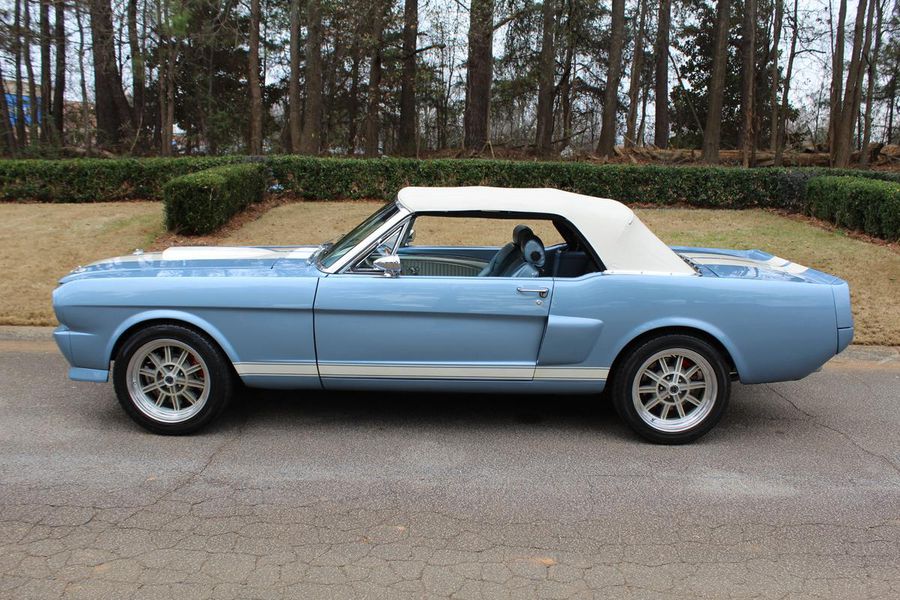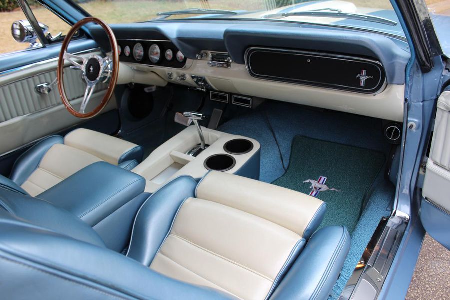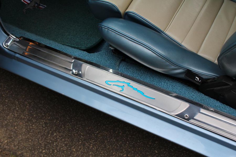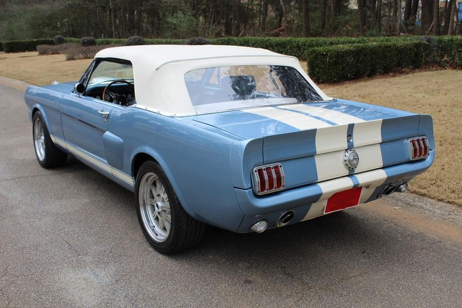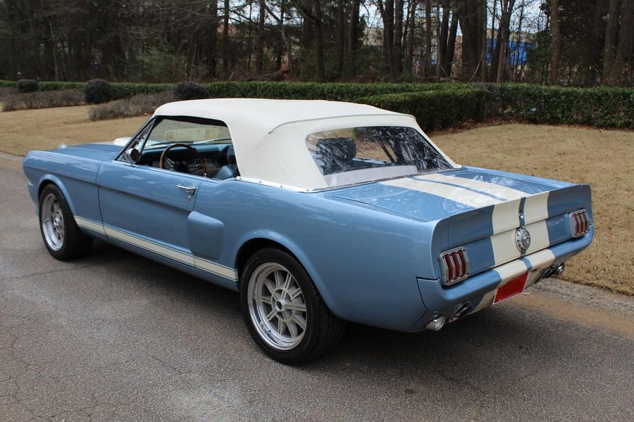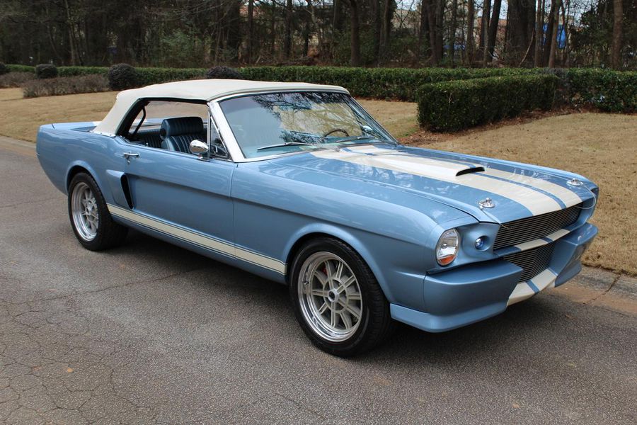 FANTASTIC RESTO CLONE BUILT TO AMAZING SPECS, SPECIAL ‘R’ CODE FRONT END, SCULPTURED FRONT END WORK WITH DOUBLE GRILL, SPECIAL LED LIGHTING, SIDE SCOOPS, SHELBY REAR END, STRIKING ACAPULCO BLUE WITH WHITE LEMANS STRIPES, STRONG BUILT 289, UPRATED ALUMINUM TOP END-COMP CAM-HEADS-PERFORMANCE CAM, 4-WHEEL BAER DISCS, 9” CURRIE POSITRACTION REAR END, UPRATED SUPPORT UNDERCHASSIS, 10 SPOKE SHELBY ALLOYS, MODERN RADIALS, 4-SPEED AOD PERFORMANCE TRANSMISSION, UPRATED TWO-TONE PONY BUCKETS WITH ADJUSTABLE HEADRESTS, AIR CONDITIONING, GREAT HISTORY FILE OF SPECS.