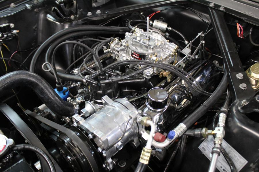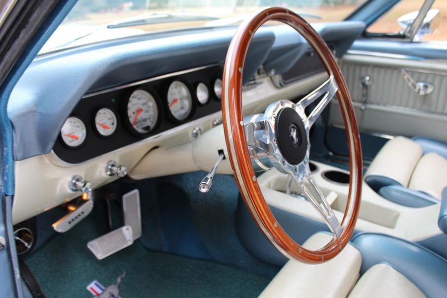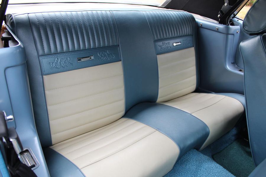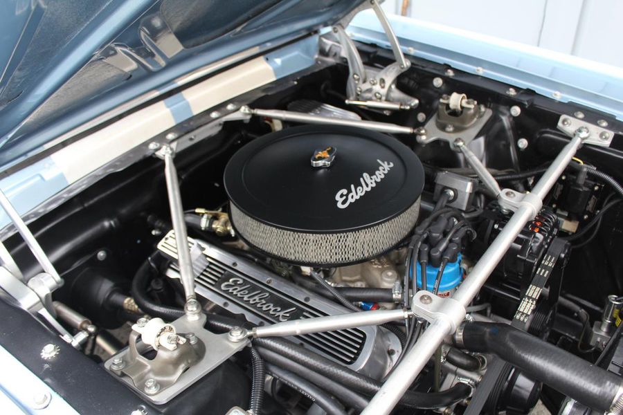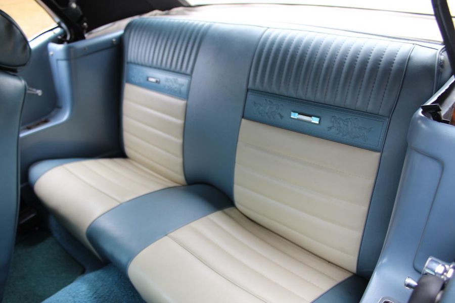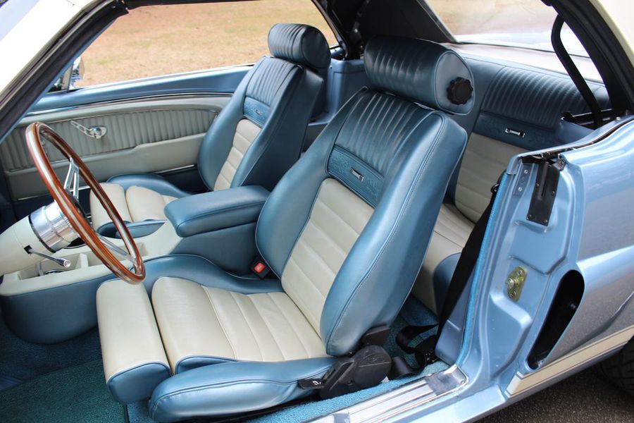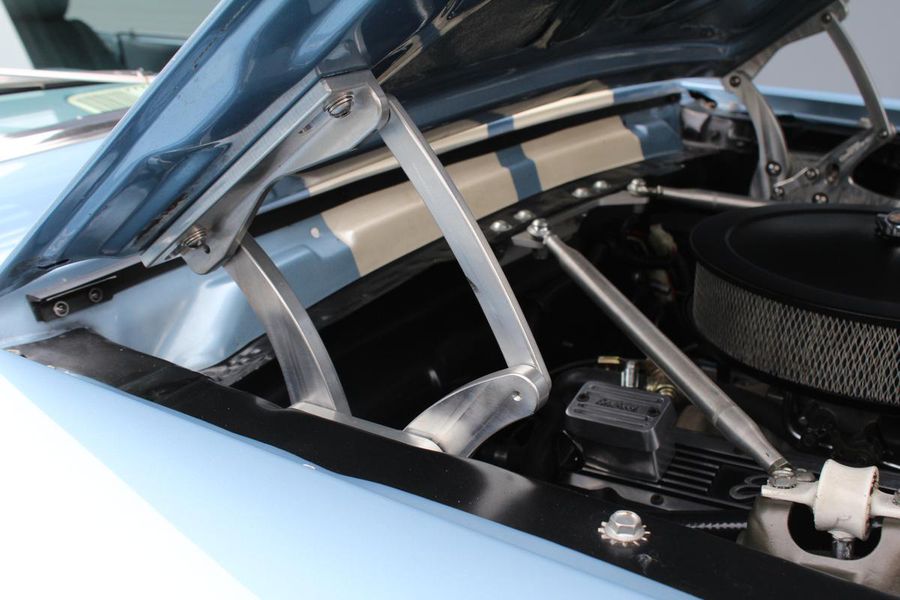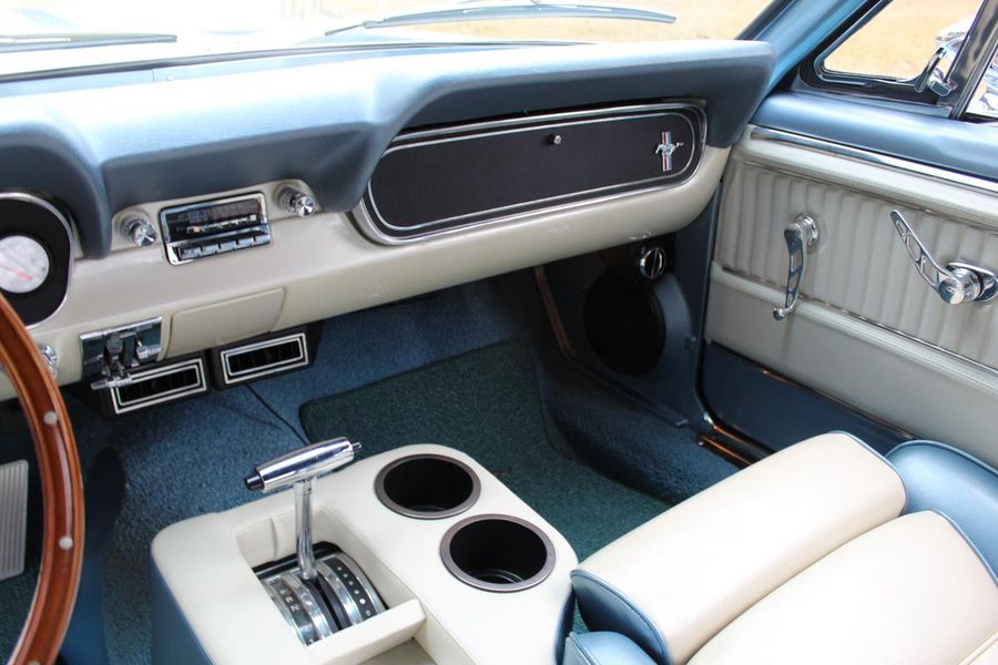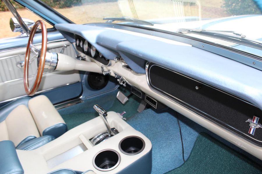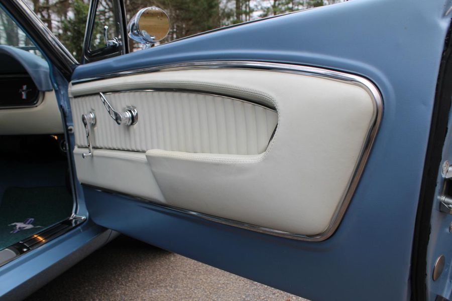 FANTASTIC RESTO CLONE BUILT TO AMAZING SPECS, SPECIAL ‘R’ CODE FRONT END, SCULPTURED FRONT END WORK WITH DOUBLE GRILL, SPECIAL LED LIGHTING, SIDE SCOOPS, SHELBY REAR END, STRIKING ACAPULCO BLUE WITH WHITE LEMANS STRIPES, STRONG BUILT 289, UPRATED ALUMINUM TOP END-COMP CAM-HEADS-PERFORMANCE CAM, 4-WHEEL BAER DISCS, 9” CURRIE POSITRACTION REAR END, UPRATED SUPPORT UNDERCHASSIS, 10 SPOKE SHELBY ALLOYS, MODERN RADIALS, 4-SPEED AOD PERFORMANCE TRANSMISSION, UPRATED TWO-TONE PONY BUCKETS WITH ADJUSTABLE HEADRESTS, AIR CONDITIONING, GREAT HISTORY FILE OF SPECS.