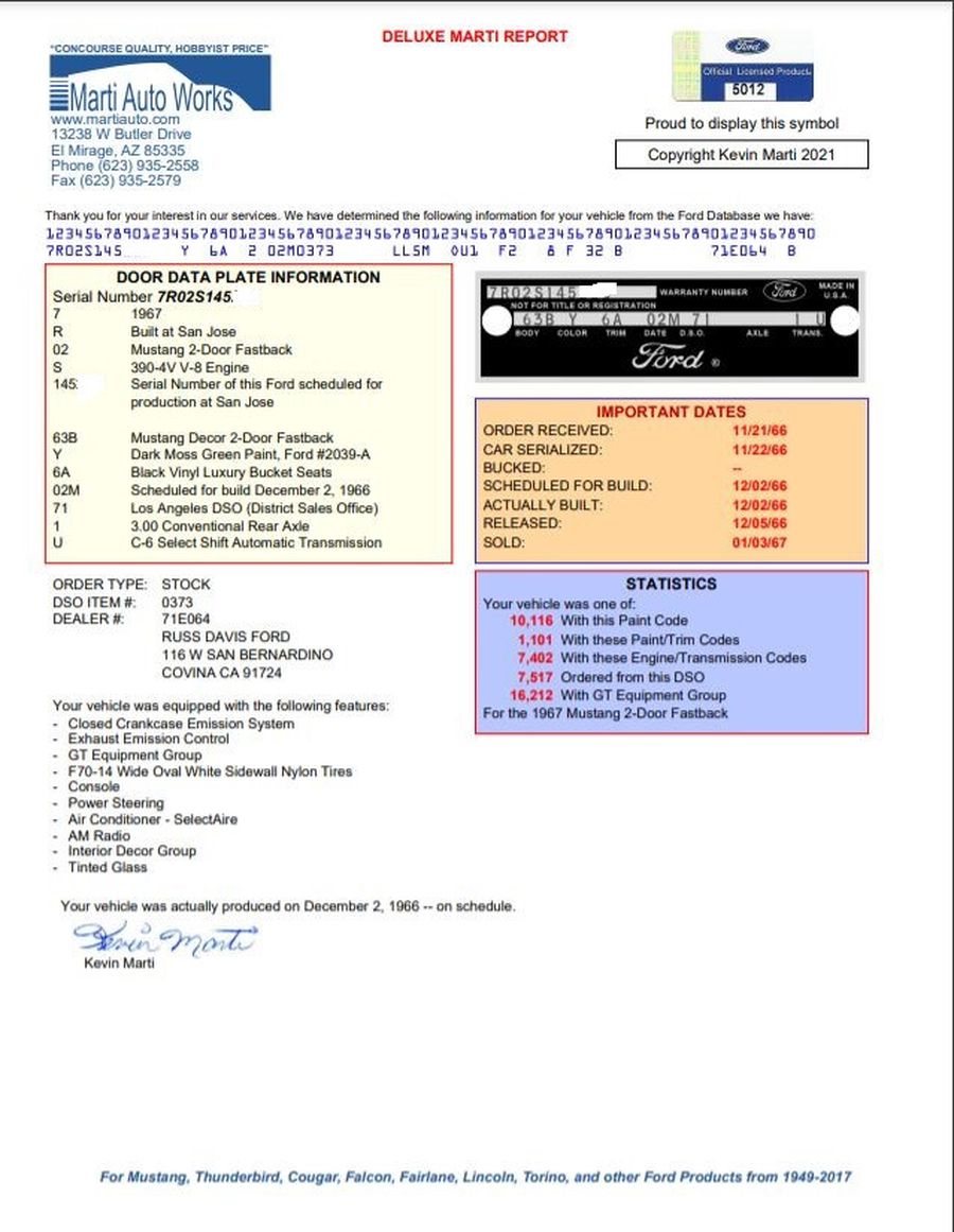For Sale!! 1967 Mustang GTA Fastback. This fine example sold for a record breaking price at the Barrett-Jackson auction back in 2003. Less than 1500 miles have been put on over the last 18 years. Sold new in Covina CA and spent the majority of its life in the SW US. A true S code, rebuilt 390 with automatic transmission and factory AC. Full color change to Candy Apple Red from Moss Green while retaining 100% of the original body panels. Beautiful reproduction deluxe interior. Posi-traction rear end with 3.55 gear set, power steering and power brakes. Rolled just over 80,000 miles.