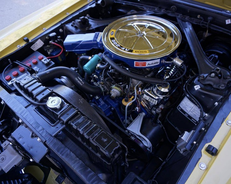 Much of the original heavy-duty suspension including the tie rods, HD sway bar and rear leaf springs are original and still show their original factory paint daubs. The rear “Staggered Shock” setup unique to high performance models including Boss 302, Boss 429 and 4-Speed 428 Cobra Jet cars is still intact.