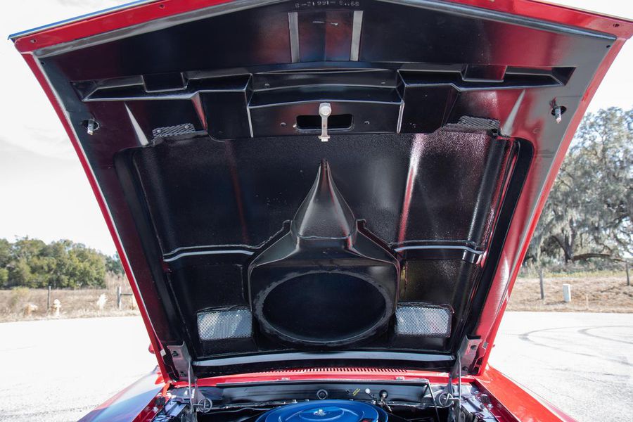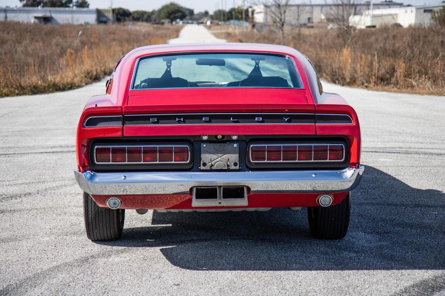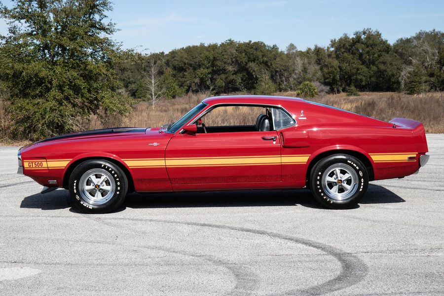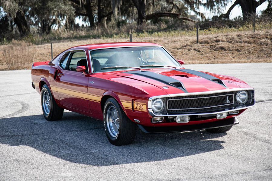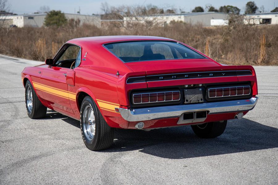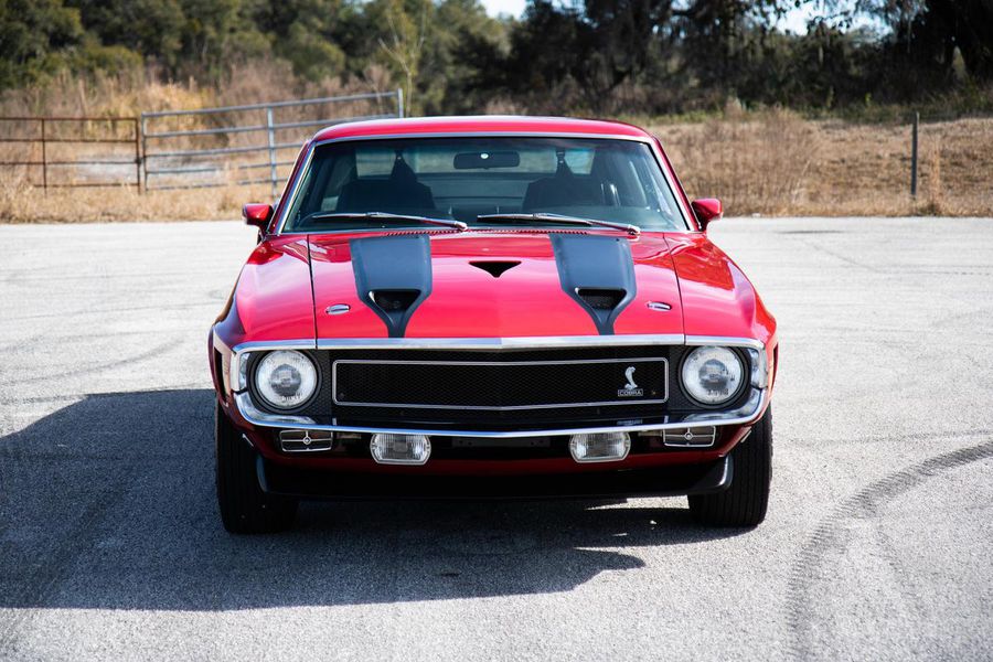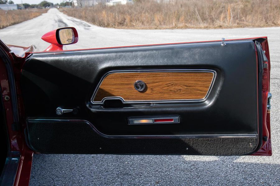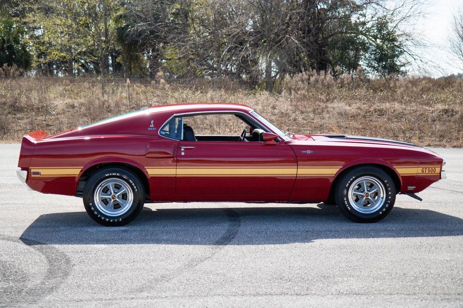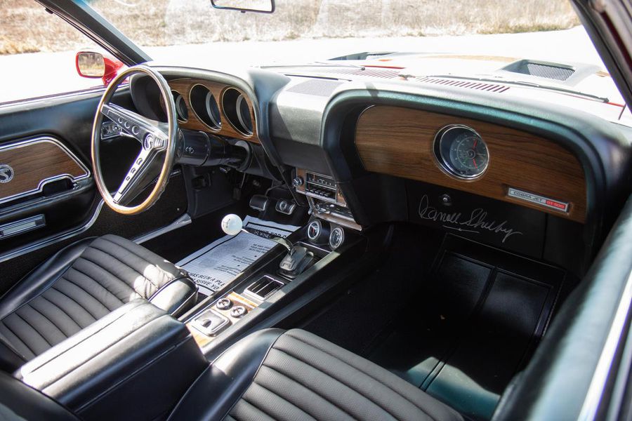 The car underwent a complete four year nut and bolt restoration around 1990 and was refinished Acapulco blue before being repainted yet again around 2019 in it’s current and factory correct shade of T5 Candyapple Red. Wearing a set of period correct Firestone wide oval bias ply tires wrapped around factory five spoke alloy wheels with polished lips and Cobra center caps. The optional visibility group added separate front fog lights under the bumper, and combine with the front and rear spoilers, rear window louvers, side stripes, and side scoops to give this Shelby a very racy appearance. The interior is done is factory black knit and vinyl trim, with front bucket seats, tilt steering column, AM radio, tinted glass, woodgrain trim, and deluxe seat belts rounding out the options list. Under the hood is the legendary 428CI Super Cobra Jet V-8 with single Holley 4150 carburetor producing 335 horsepower and a whopping 440 lb. ft. or torque. This heavy duty engine was built to racing specifications with a special crankshaft and connecting rods to handle the abuse of high RPM drag racing. While the Cobra Jet and Super Cobra Jet share the same outputs, the internal parts differ greatly between the two with the SCJ being much better suited to drag strip duty. This GT500 was also equipped from Shelby with the Drag Pack option, and was originally equipped with the C-6 automatic transmission and a stout 3.91 rear gear with Traction-Lok. Power steering and power brakes round out the options list and make this beast of a muscle car easy to drive in modern traffic if you so chose. This GT500 is in excellent condition, is free of body damage, fit and finish are excellent, and the doors click shut easily. The engine, while powerful, is docile enough to street drive and starts with only a twist of the key. This fully documented GT500 comes with a binder full of history to include title history, appraisal report, service receipts, Elite Marti report, and the original Shelby dealer order sheet and original Shelby dealer invoice. It has been verified as a numbers matching and correct car, and is listed in the national Shelby registry. This is a blue chip, investment level automobile, and will only continue to appreciate rapidly in the coming years.