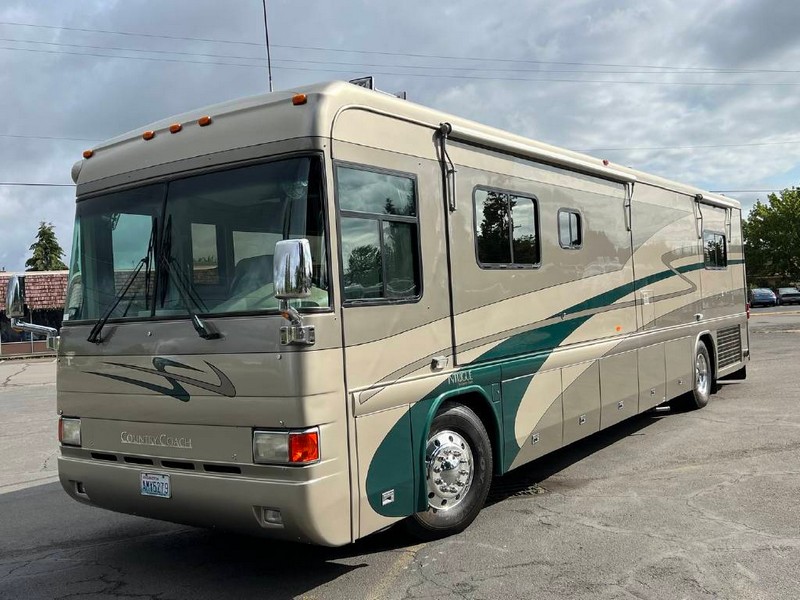 02 40” Country Coach Intrigue Suite of Dreams. Maple Cabinets, 2 slides, Hurricane Diesel Boiler, Upgraded Pioneer Bluetooth in Dash, 97k Miles Full Body Paint, Girad Auto Awning, Samsung LED TV.