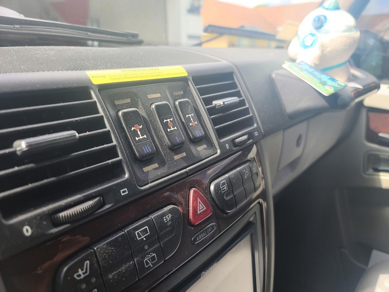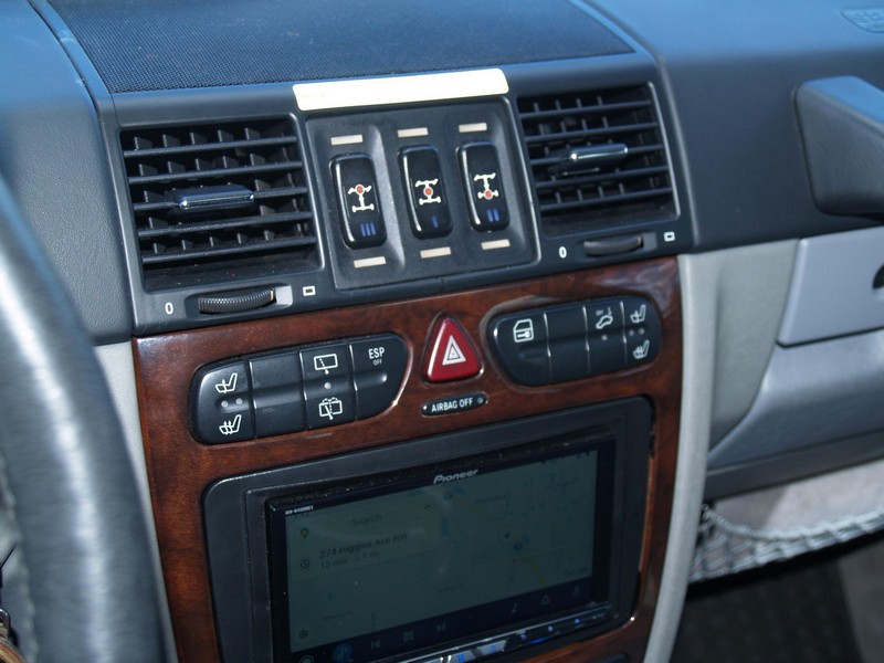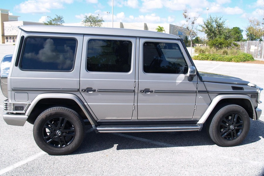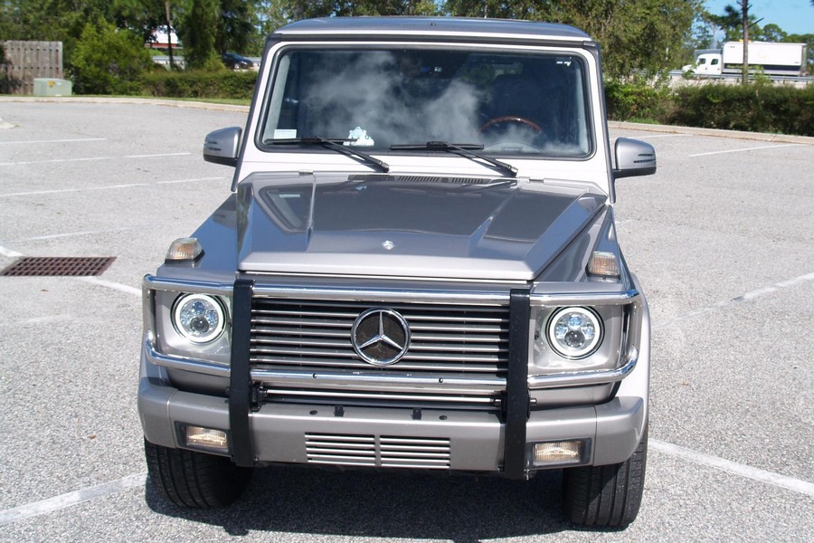 THIS… is a 2003 Mercedes-Benz G500, finished in Cubanite Silver Metallic with a gray interior. Equipment includes solid front and rear axles, full-time four-wheel drive, a 2-speed transfer case, three locking differentials, a sunroof, leather upholstery, wood trim, power-adjustable and heated front seats, heated second-row seats, and more as detailed below. Power comes from an “M113” 5.0-liter V8 engine, rated at 292 horsepower and 336 lb-ft of torque. Output is sent to all four wheels via a 5-speed automatic transmission and a 2-speed transfer case.