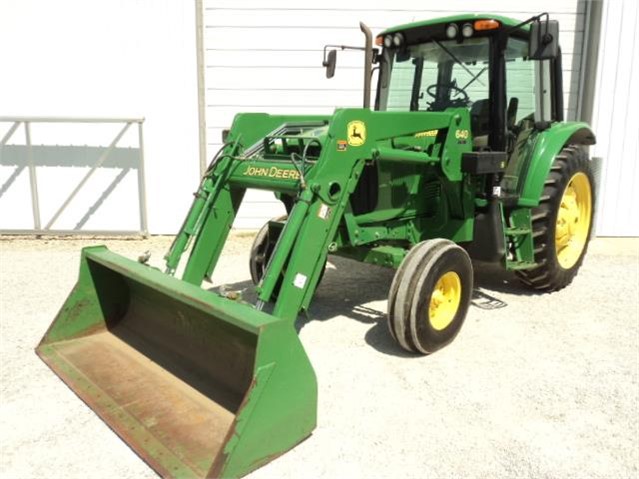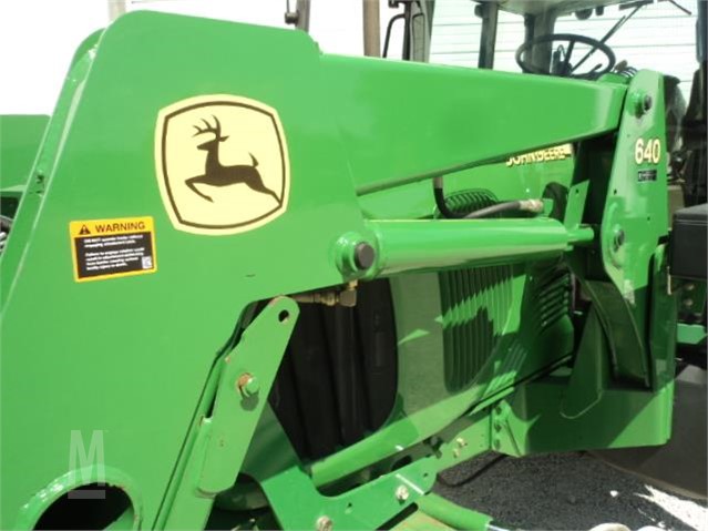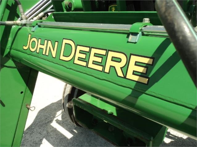 1310 HOURS, CAB/HEAT/AIR/RADIO, 2 HYD, 540 PTO, 15.5X38 @ 95%, 10.00-16 @ 95%, JOHN DEERE 640 QUICK TATCH LOADER, w/84″ QUICK TATCH BUCKET, FRONT WEIGHT BRACKET, 2 SETS REAR WEIGHTS, HOOD GUARD, 16 SPEED PQ w/ LEFT HAND SHUTTLE SHIFT, EXCELLENT SEATS & INTERIOR, TOOL BOX.