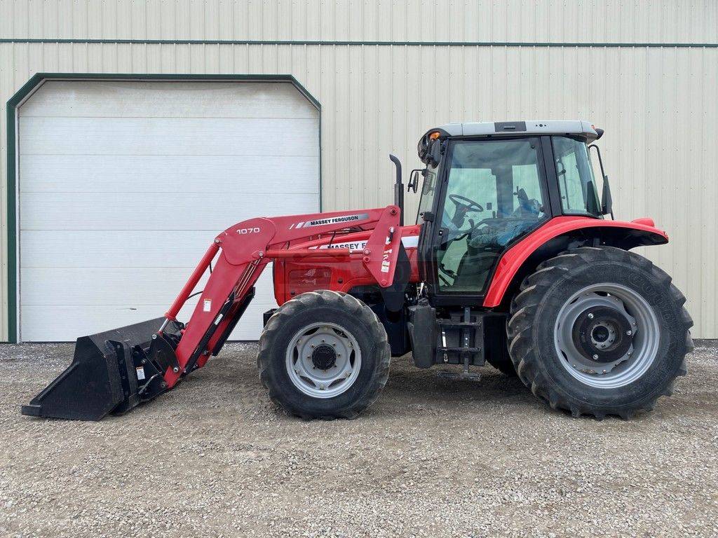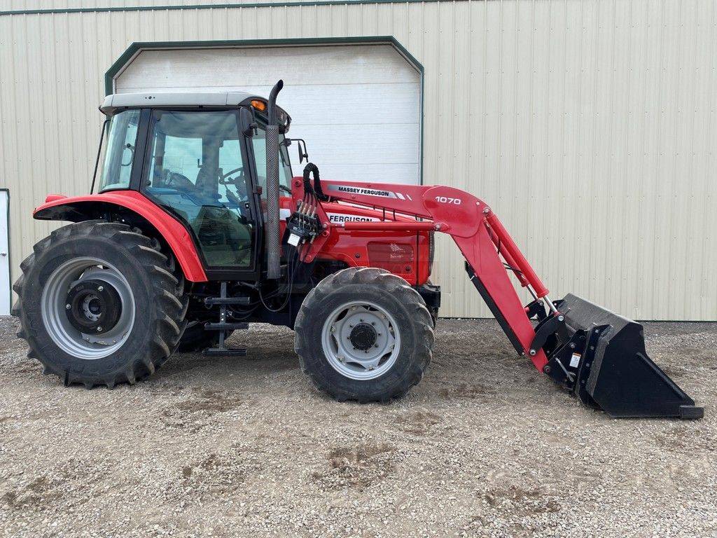 2004 MASSEY FERGUSON 5445 TRACTOR W/ MF 1070 LOADER, SAME AS NEW, 305 HOURS, 4X4, 3 POINT, 540 PTO, 2 REAR REMOTES, HEAT & A/C, CAB, 305 HOURS, 4X4, 3 POINT, 540 PTO, 2 REAR REMOTES, DRAWBAR, HEAT & A/C, LHR, 16F/16R GEARED TRANMISSION, 85 HP PERKINS PRE-EMISSIONS DIESEL ENGINE, 9,305 LB OPERATING WEIGHT, MF 1070 LOADER W/ 84″ BUCKET, 13.6R24 FRONT TIRES, 16.9R34 REAR TIRES, FRESH SERVICE & MULTI-POINT INSPECTION COMPLETED BY A CERTIFIED TECHNICIAN.