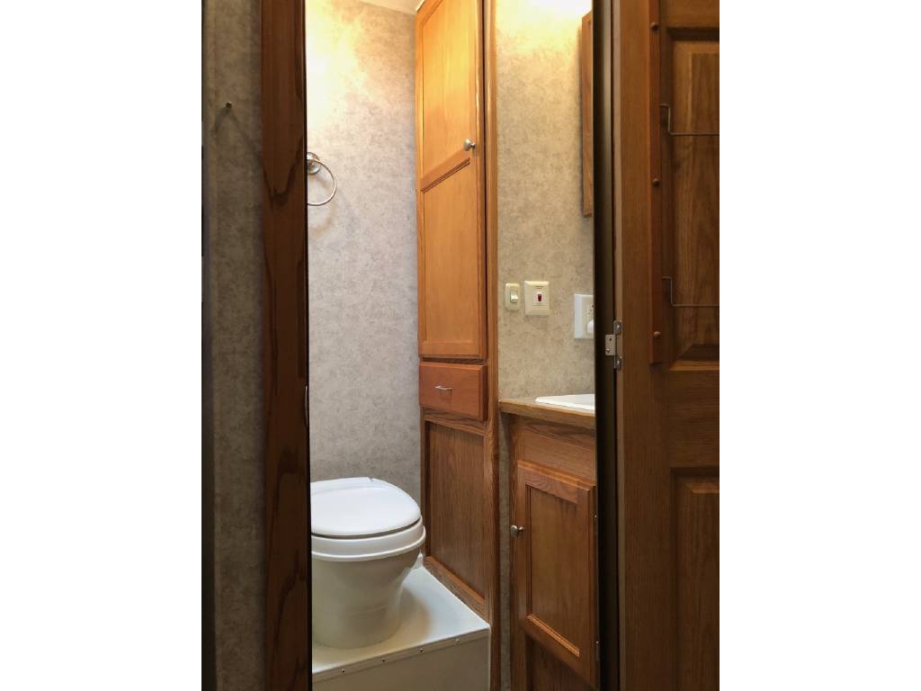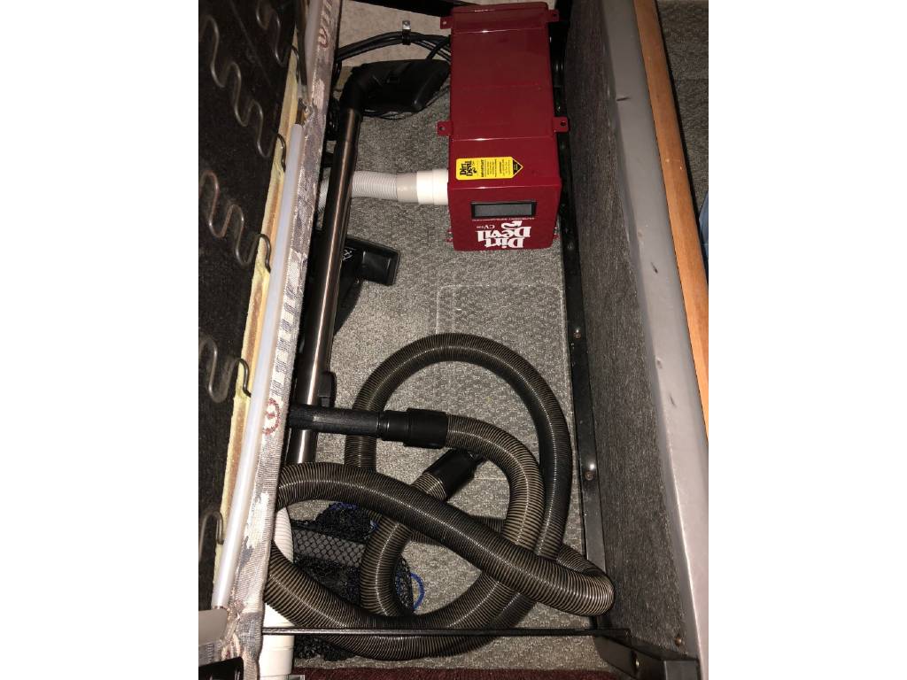 This motorhome has many upgrades, including stainless steel on walls in kitchen, residential size single bowl kitchen sink, additional outlets and shelves added in bedroom for charging phones, etc. Additional shelves with power outlets and closet for storage in bunk area. Sleep by number bed in bunk area. Central vac system. Steel shelving added in rear enormous garage storage compartment with four point access. Firestone airbags and ugraded shock systems. Outdoor shower and tornado tank cleanout rinsing system. 3 gallon 1 hp air compressor and tinted windows.