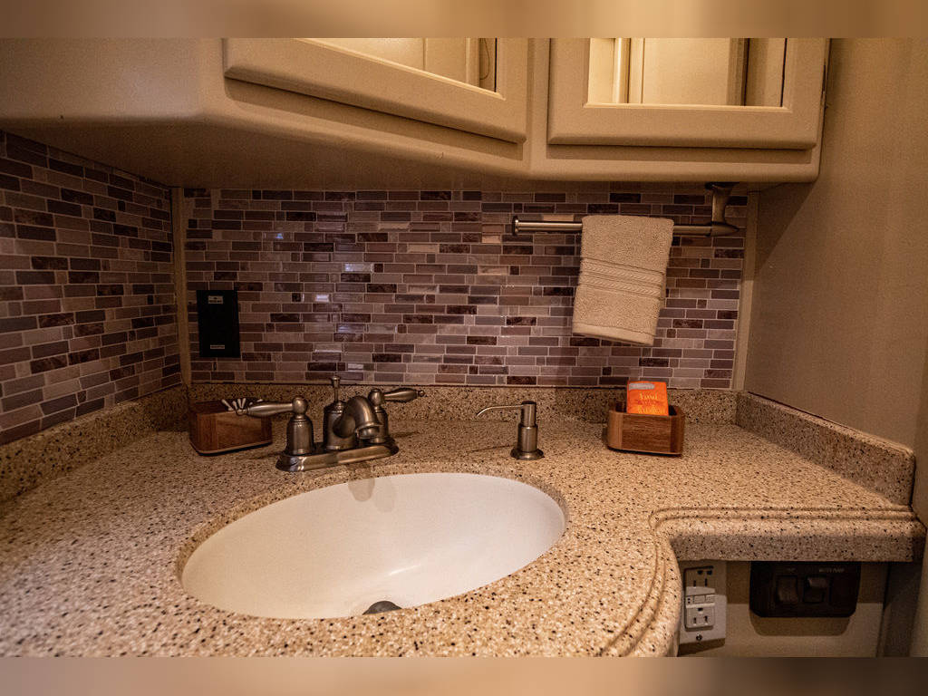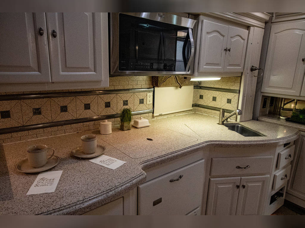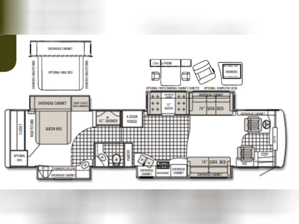 Power Shade on Windshield Corian thru-out 2 Bath Room Sinks Frosted Shower Enclosure CS Leather Jack Knife Sleeper Sofa RS Leather Recliner Manual MCD Day/Night Shades Living Room & Bed Room