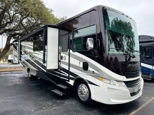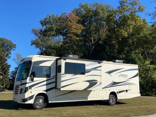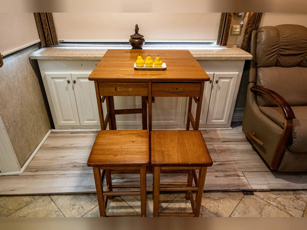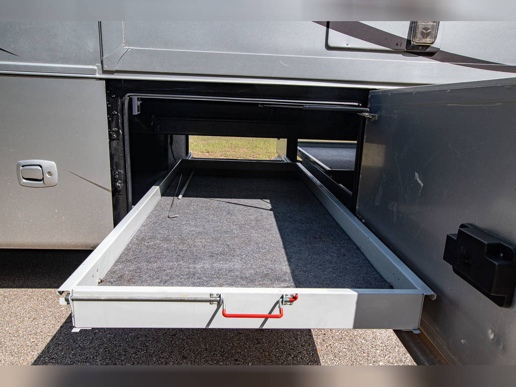 Auto Patio Awning Heated bay for tanks Automatic Front Door Awning driving lites Dock lights (4) Rear Ladder Fresh Water Capacity 90 Gal. Waste Water Capacity 45 Gal. Slide Room Topper Awnings Exterior Height 12′ 7″ Power Cord & Water Hose Reels RS Living Room Slide 12′ 7″ X 32″ RS Bed Room Bed Slide 8′ 11″ X 24″ 2 Cargo Trays