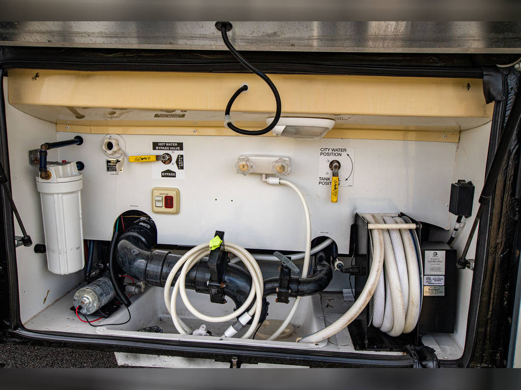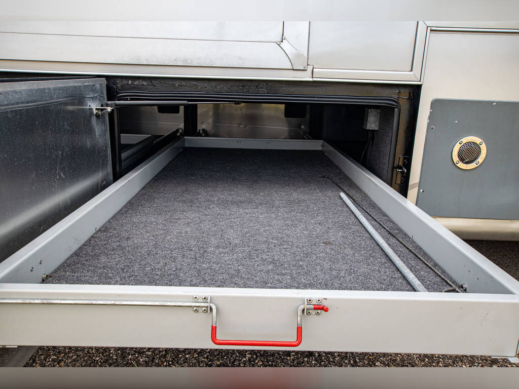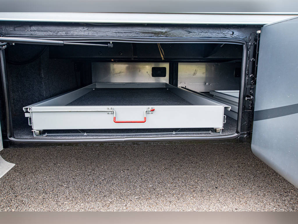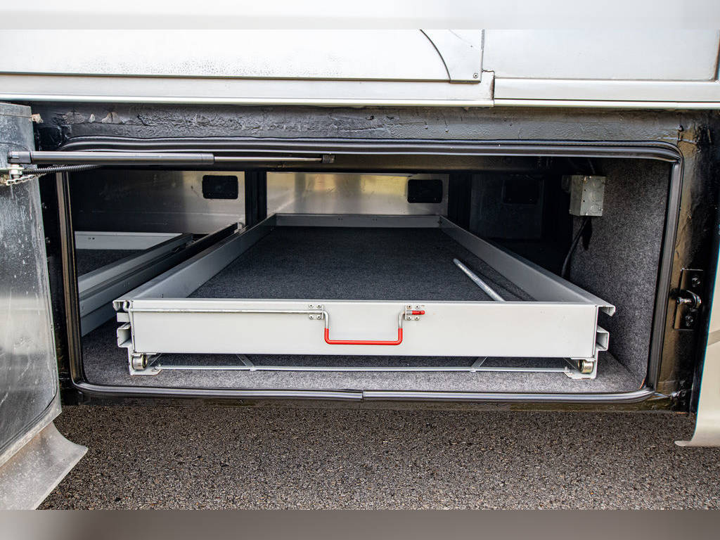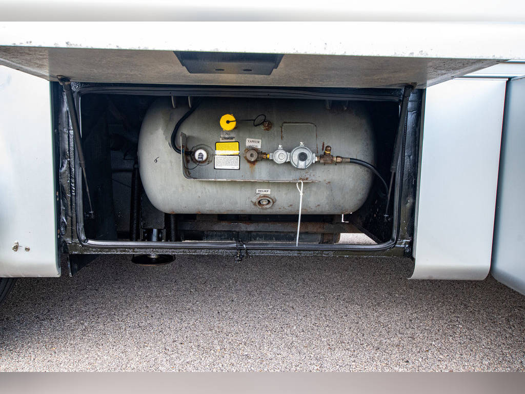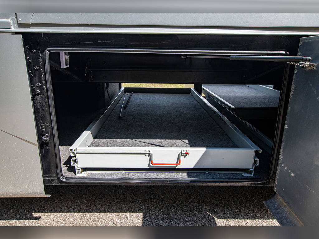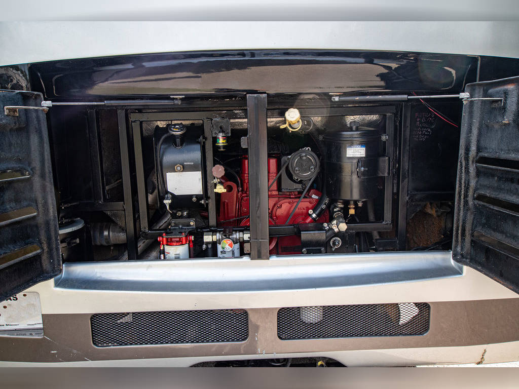 Ducted Air Spotlight w/ Remote Entry door screen Automatic entry step Power Sepwell Cover Generator on slide tray Dual Fuel Fills Gray Water Capacity 70 Gal. LP Capacity 35 Gal. Deluxe Full Body Paint Dual Pane Tinted Windows Black tank flush CS Kitchen Slide 13′ 4″ X 20″ CS Bed Room Dresser Slide 8′ 1″ X 14″ Folding Ladder in Bay