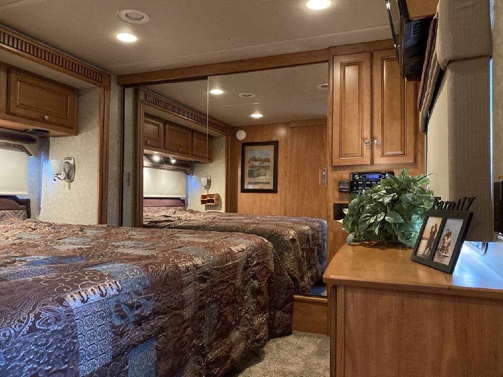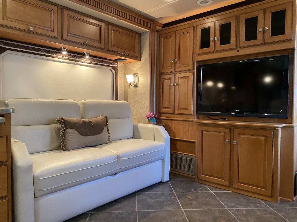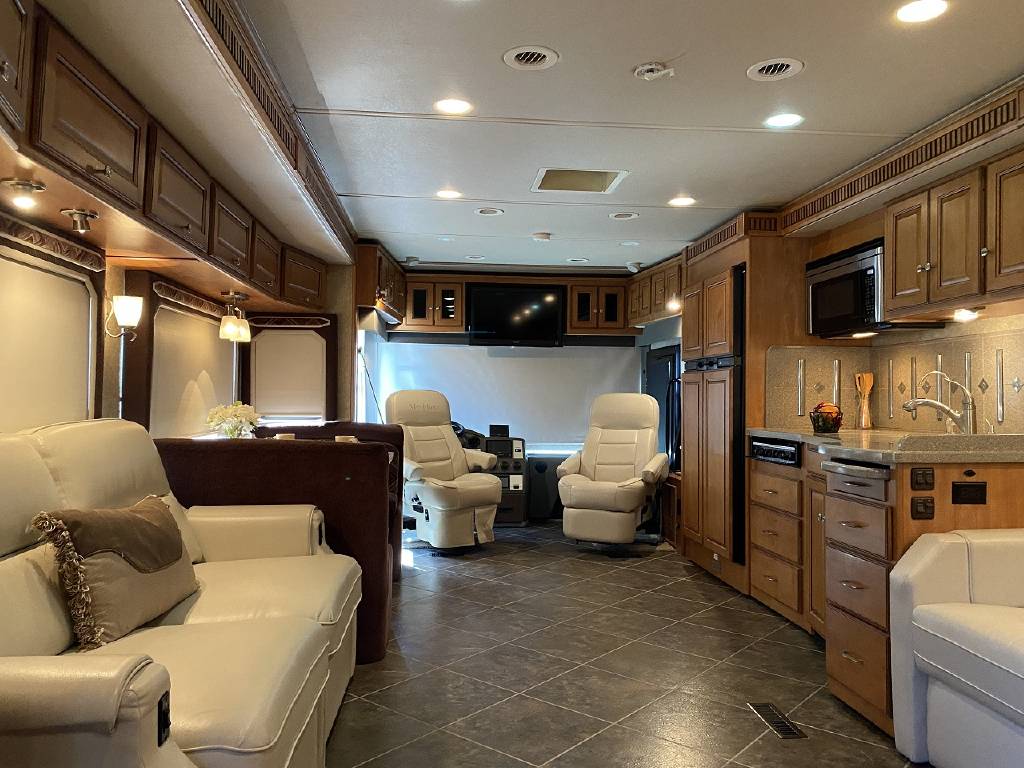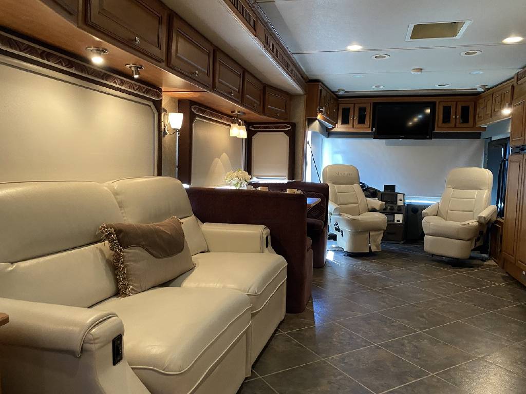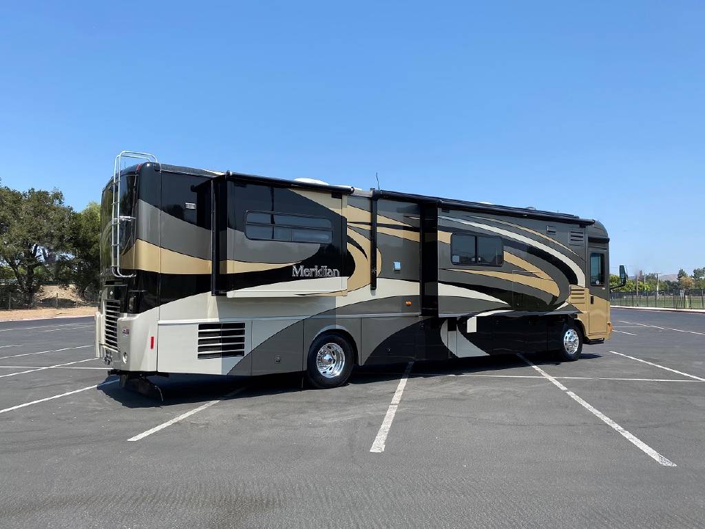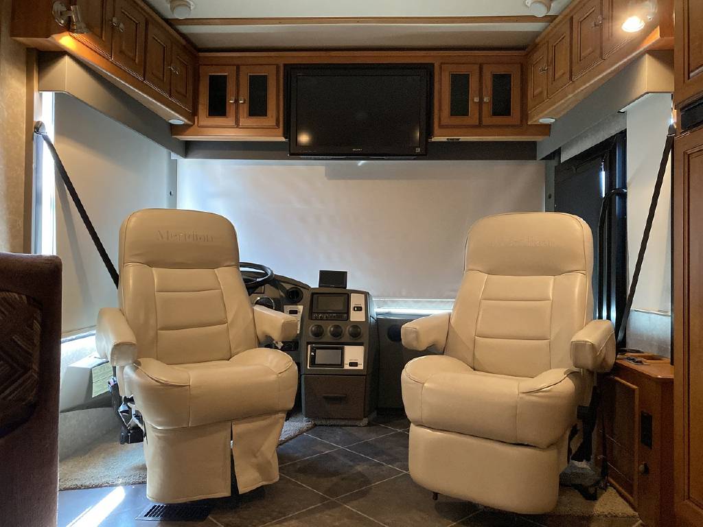 2010 Itasca Meridian 40L Triple Slide Full Body Paint 76k Miles, Maxum Full Air Chassis, Cummins® ISC 8.3L 360HP Turbo-Charged Diesel Engine, Allison® 3000 MH 6-Speed Automatic Transmission, Onan 8.0kw Quiet Diesel Generator, Engine Brake & Heater, Battery Boost, Full Coach Inverter, Automatic Hydraulic Levelers, Side View & Back Up Cameras, Private Rear Bedroom with Sliding Wood Door, Spacious Bedroom with Slide-Out, Island Style Walk Around King Size Bed, Above Bed Cabinets, Built In Headboard, & Dresser, Residential Size Mirrored Door Wardrobe, Sony Bedroom TV, Bedroom Jensen CD/DVD/AUX/MP3 Player With Speakers, Private Bath with Porcelain Toilet, Corian Vanity/Sink, Corner Glass Enclosed Corner Shower With Skylight & Seat, Splindide Washer/Dryer, Big Norcold Raised Wood Paneled 4 Door Fridge with Ice, Corian Solid Surface Counter Top With Matching Sink & Stove Covers, Pull Out Counter Top Extension, Sharp Carousel Residential Size Microwave, 3 Burner Stove, Dual Basin Sink, Drivers Side Living Room Super-Slide with Ultra Leather Convertible Booth Dinette and Ultra Leather Power Convertible Couch, Passenger Side Slide With Opposing Ultra Leather Convertible Couch & Kitchen, Dual Pane Windows, Window Shades Throughout, Sleeps 8, Tile-Like Flooring Through Entry, Kitchen and Bath Areas, Ultra-Leather Swivel/Recline Captain’s Chairs, Sony Living Room Tv, Jensen Sirius Ready/Bluetooth, AUX, USB Stereo, Large Power Patio Awning with Alumiguard, Door Awning, Full Basement Storage with EZ-Access Doors, 10 Gallon Gas/Electric Water Heater, 92 Gallons Fresh Water, TrueAir® Residential Central Air Conditioning w/Heat Pump, 50 Amp Service, Outdoor Entertainment Center With Stereo, 10K Tow Package, High Gloss Full Body Paint.