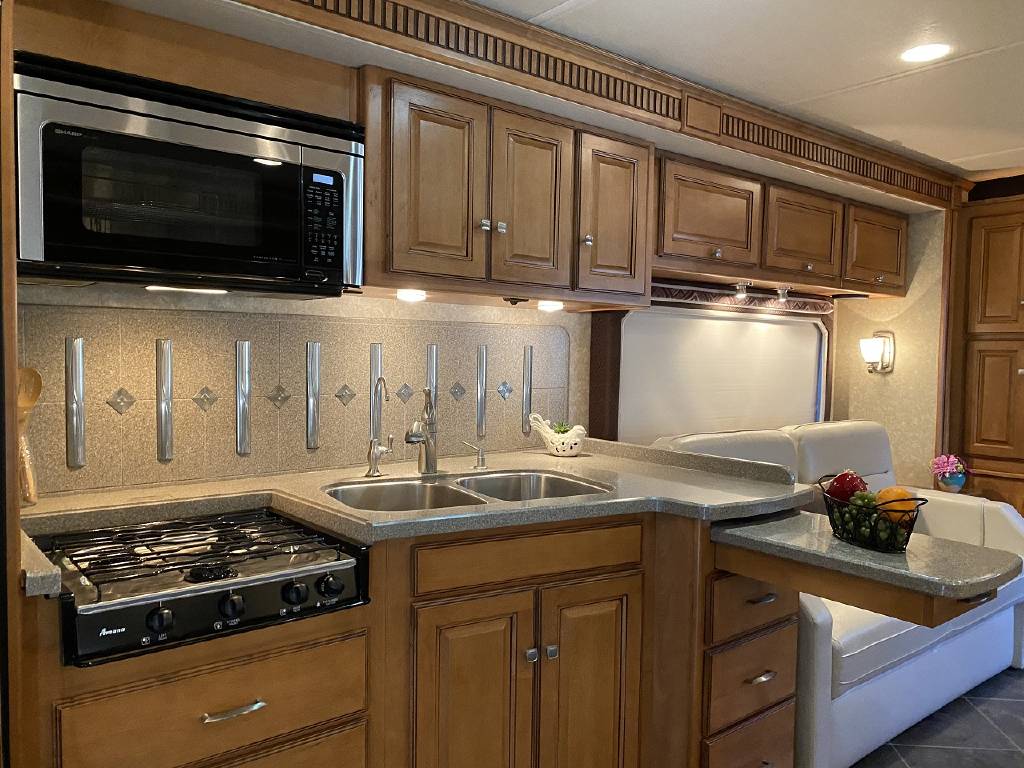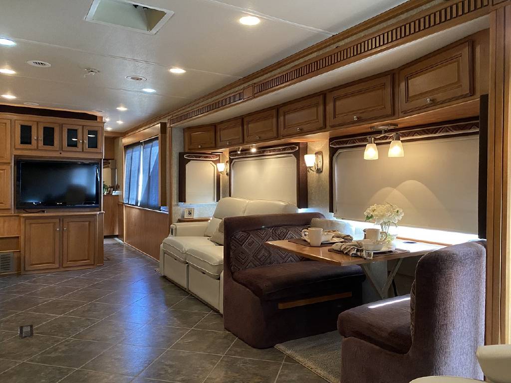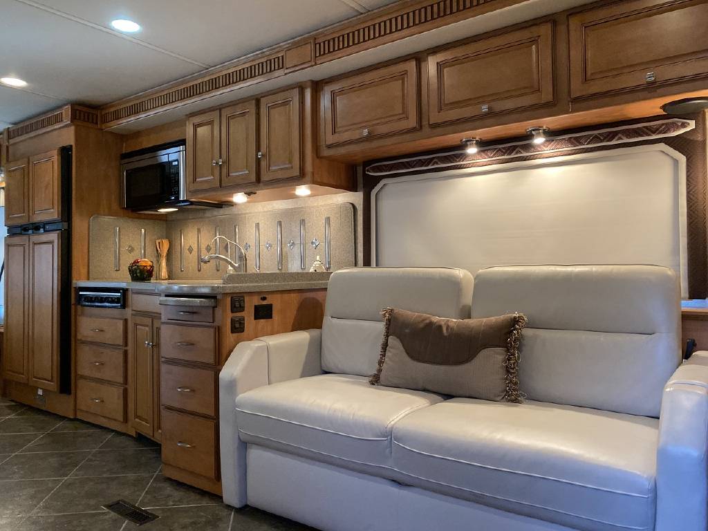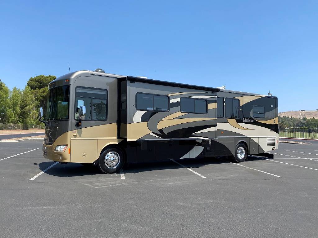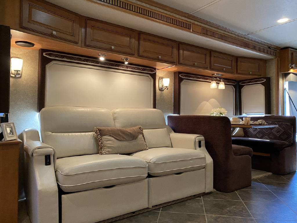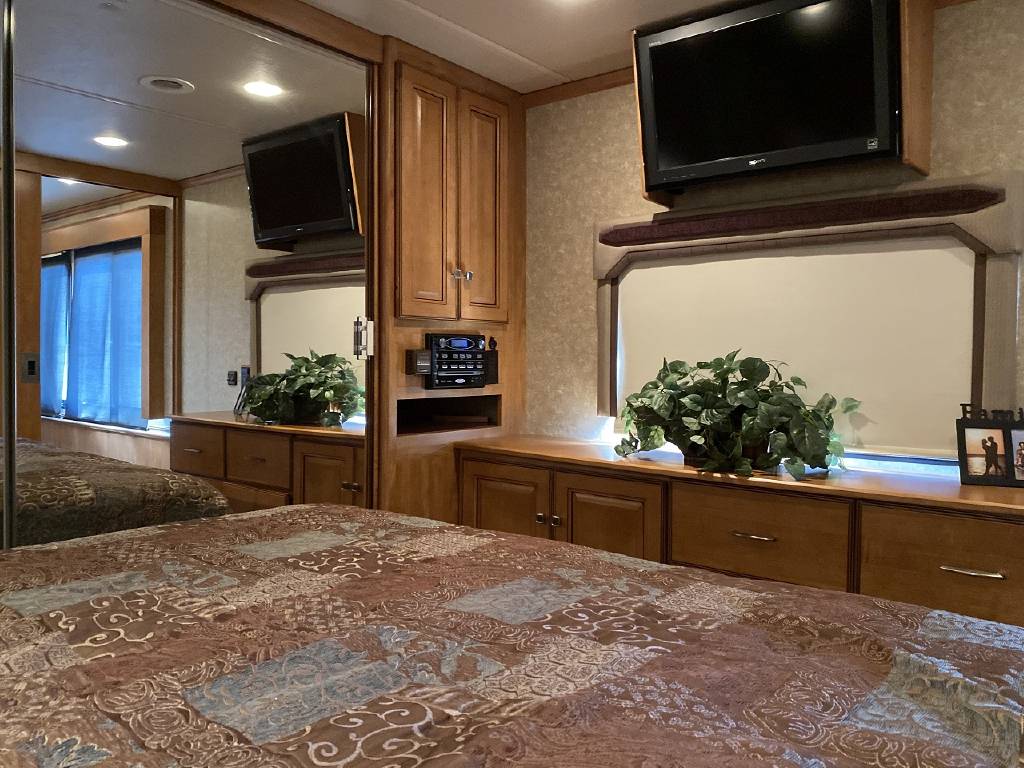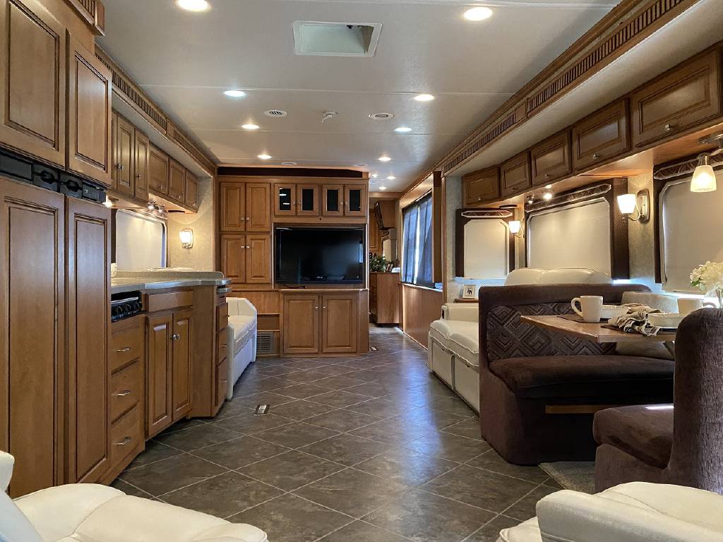 2010 Itasca Meridian 40L Triple Slide Full Body Paint 76k Miles, Maxum Full Air Chassis, Cummins® ISC 8.3L 360HP Turbo-Charged Diesel Engine, Allison® 3000 MH 6-Speed Automatic Transmission, Onan 8.0kw Quiet Diesel Generator, Engine Brake & Heater, Battery Boost, Full Coach Inverter, Automatic Hydraulic Levelers, Side View & Back Up Cameras, Private Rear Bedroom with Sliding Wood Door, Spacious Bedroom with Slide-Out, Island Style Walk Around King Size Bed, Above Bed Cabinets, Built In Headboard, & Dresser, Residential Size Mirrored Door Wardrobe, Sony Bedroom TV, Bedroom Jensen CD/DVD/AUX/MP3 Player With Speakers, Private Bath with Porcelain Toilet, Corian Vanity/Sink, Corner Glass Enclosed Corner Shower With Skylight & Seat, Splindide Washer/Dryer, Big Norcold Raised Wood Paneled 4 Door Fridge with Ice, Corian Solid Surface Counter Top With Matching Sink & Stove Covers, Pull Out Counter Top Extension, Sharp Carousel Residential Size Microwave, 3 Burner Stove, Dual Basin Sink, Drivers Side Living Room Super-Slide with Ultra Leather Convertible Booth Dinette and Ultra Leather Power Convertible Couch, Passenger Side Slide With Opposing Ultra Leather Convertible Couch & Kitchen, Dual Pane Windows, Window Shades Throughout, Sleeps 8, Tile-Like Flooring Through Entry, Kitchen and Bath Areas, Ultra-Leather Swivel/Recline Captain’s Chairs, Sony Living Room Tv, Jensen Sirius Ready/Bluetooth, AUX, USB Stereo, Large Power Patio Awning with Alumiguard, Door Awning, Full Basement Storage with EZ-Access Doors, 10 Gallon Gas/Electric Water Heater, 92 Gallons Fresh Water, TrueAir® Residential Central Air Conditioning w/Heat Pump, 50 Amp Service, Outdoor Entertainment Center With Stereo, 10K Tow Package, High Gloss Full Body Paint.