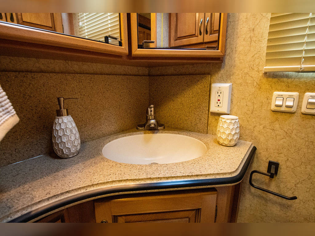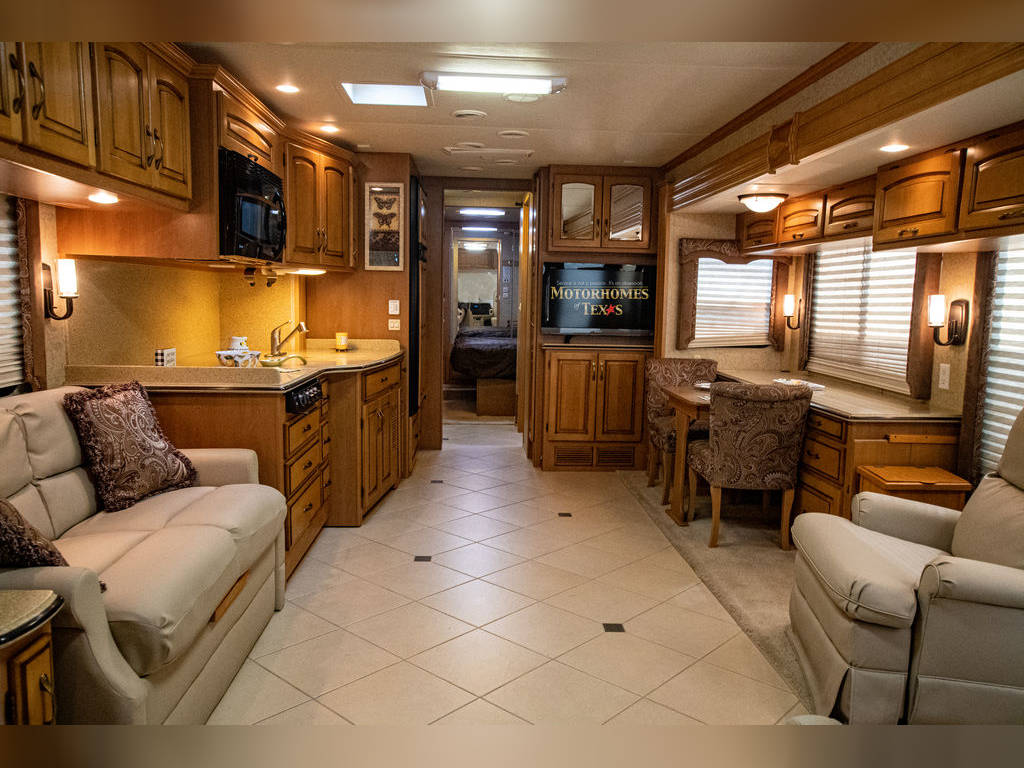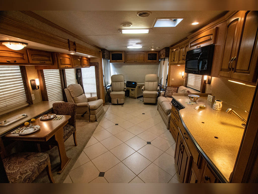Manual Tilt and Telescoping Steering Column with VIP Smart Wheel Full Air ABS Brakes 120V Engine Block Heater 8 6 Volt House Batteries 10,000 lbs. Hitch Capacity “Blue Ox” Tow Bar Automatic 4 Point Leveling System
