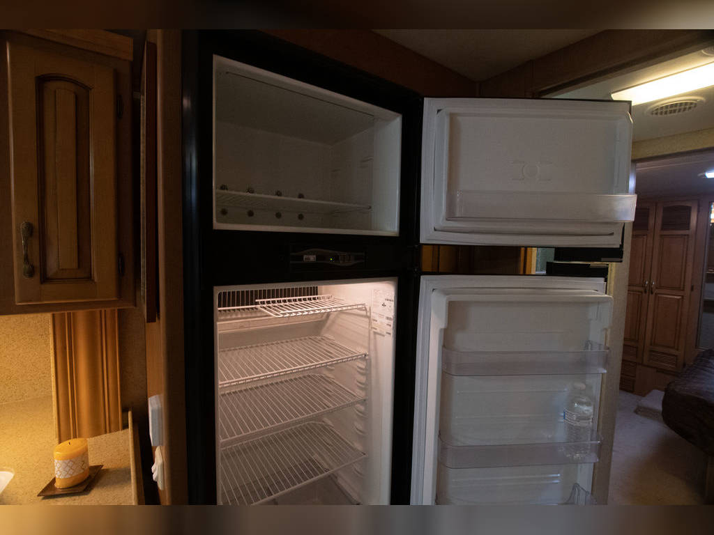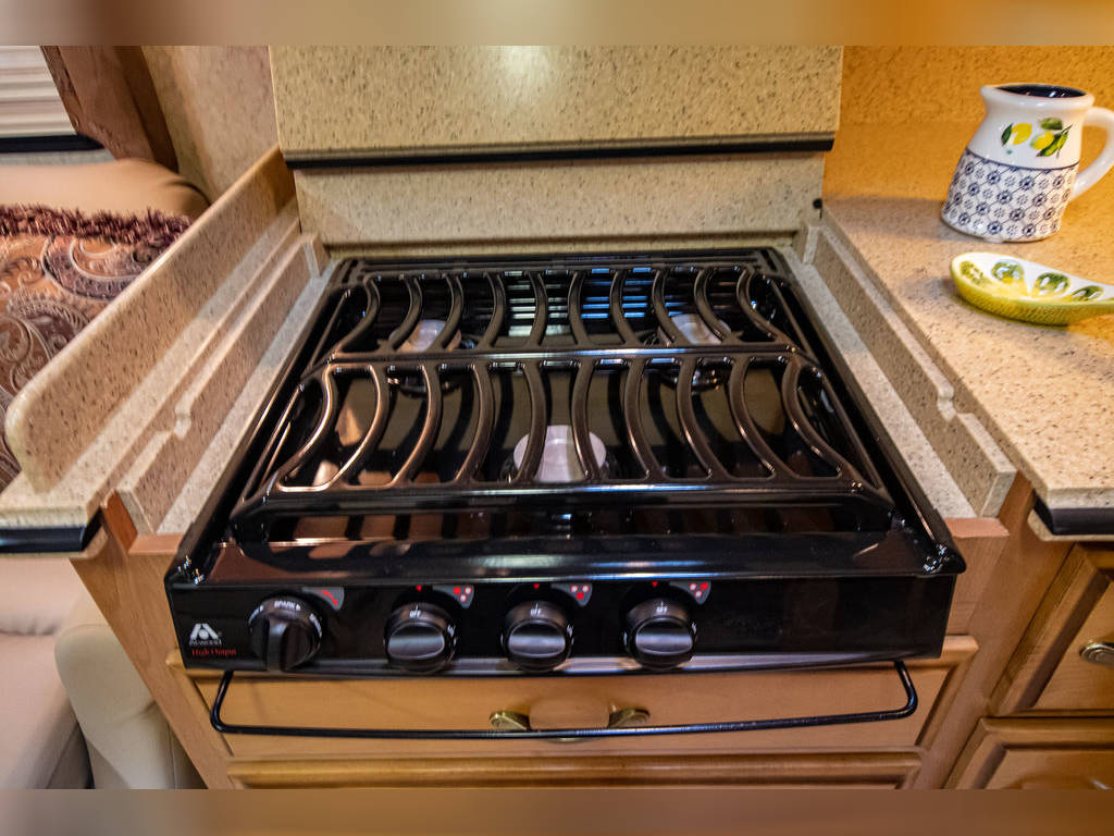 Recessed Fuel Fills with Crossover to Fill from Either Side Exterior Security Lights, Chrome Convex Exterior Mirrors with Remote Control, Defrost and Turn Signals Large Cargo Tray with Access from Either Side Fiberglass Roof with Walkable Decking & Integrated Gutter Rail Fan-Tastic® Vent with Rain Sensor in Kitchen and Bathroom Areas Gray Water Capacity 65 Gal. Powered Patio Awning Slide Room Topper Awnings RS Living Room/Dinette Slide 13′ 3″ X 33″ CS Bed Room Dresser Slide 5′ 8″ X 17″