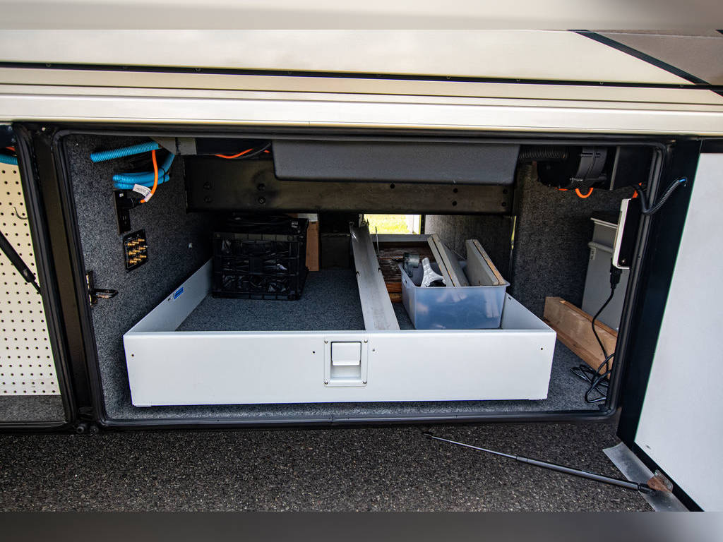 Roof Air Conditioning Drainage System Full-Paint Masterpiece Finish™ with Diamond Shield Protection on Front Cap Automatic Step for Entrance Door Front Entrance Door with Power Stepwell Cover One-Piece Tinted Windshield Fresh water capacity 105 gal Waste Water Capacity 45 Gal. Double-Pane Tinted Safety-Glass Windows Cargo Tray RS Bed Room Bed Slide 6′ X 24″ CS Living Room/Kitchen Slide 11′ 7″ X 17″
