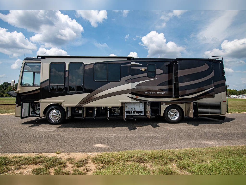 2011 Newmar Dutch Star 3734. A formidable 400HP Cummins® ISL engine is its powerplant, while a new feather sweep treatment adds a bold touch to Newmar’s superb Full-Paint Masterpiece™ Finish, the mark of the most impressive exterior in the industry. It’s all riding comfortably on a Freightliner® XCR Custom Chassis with IFS and “Comfort Steer”.