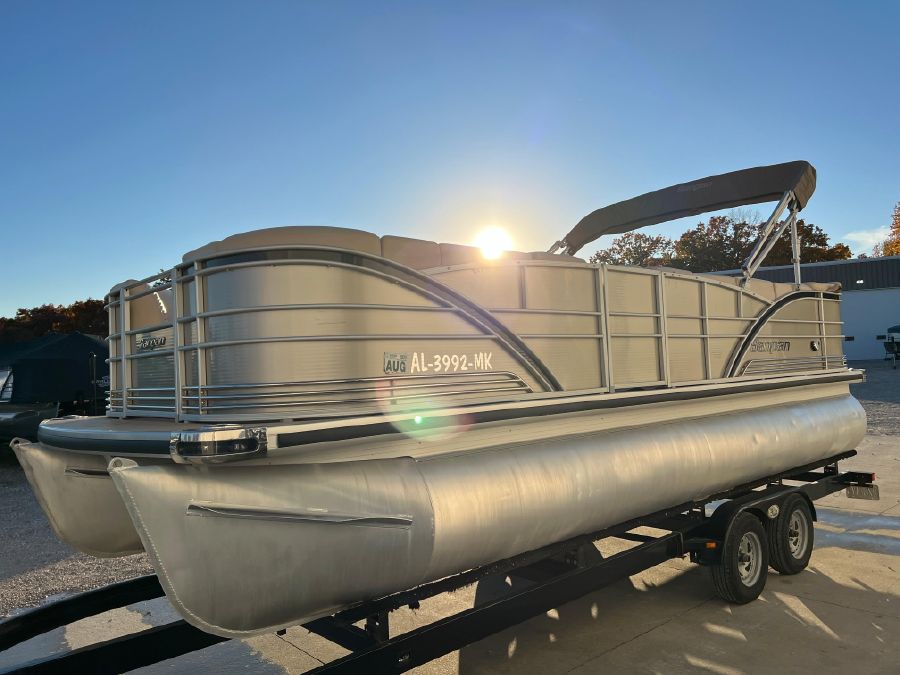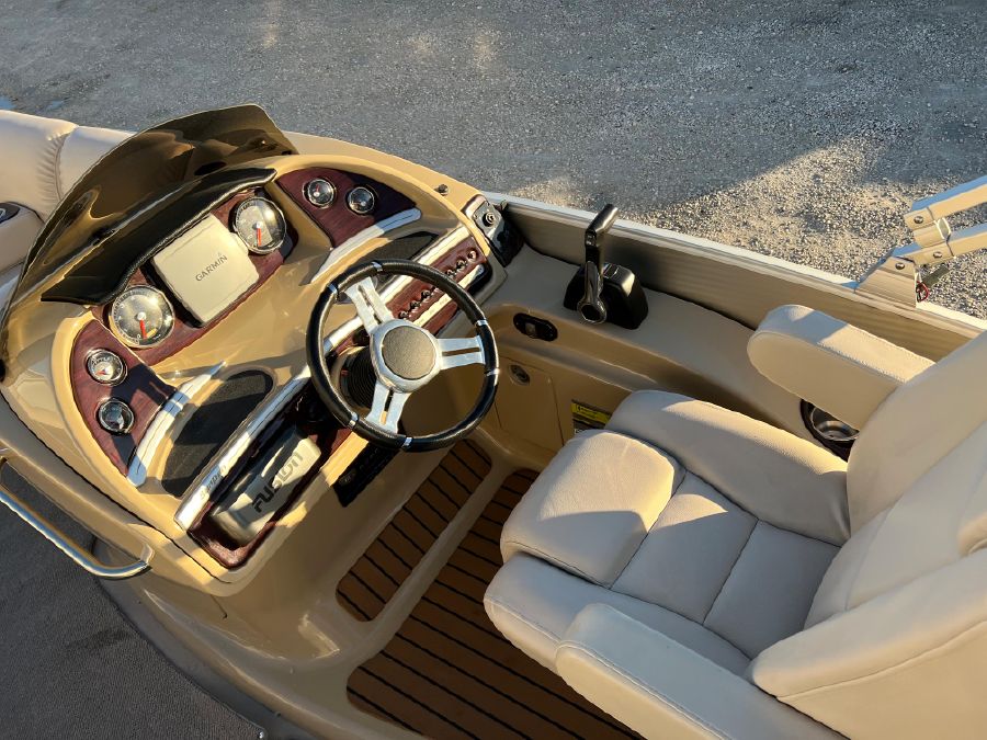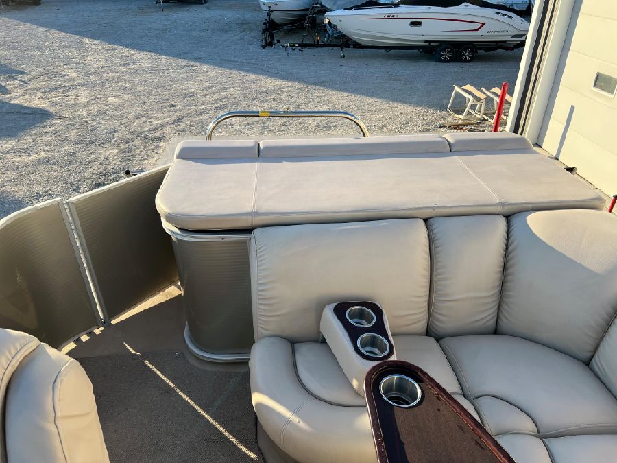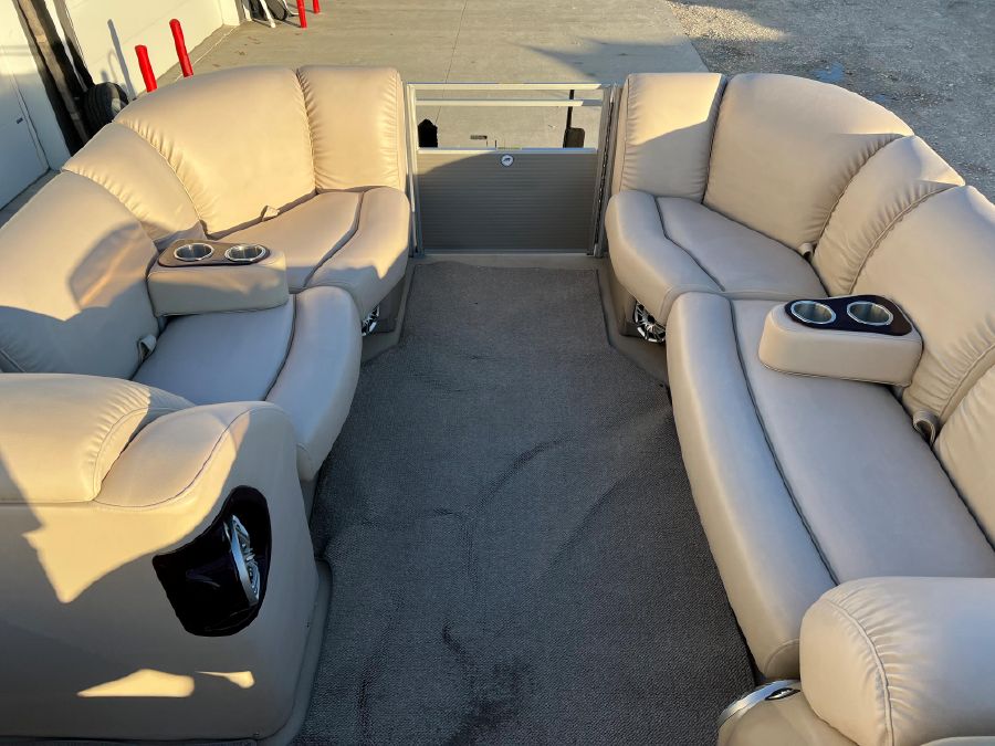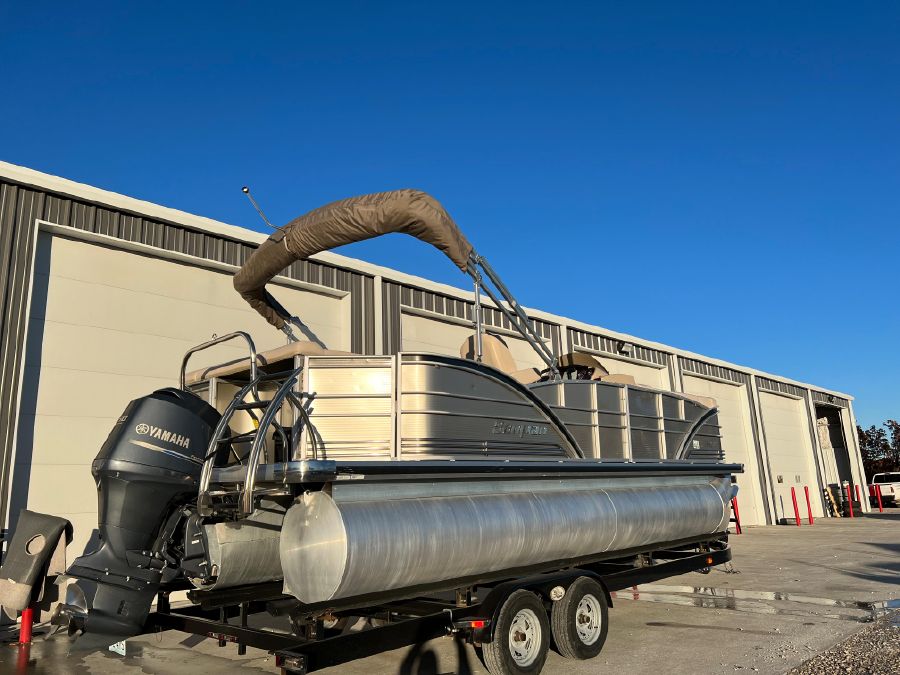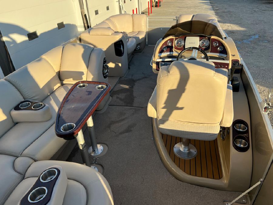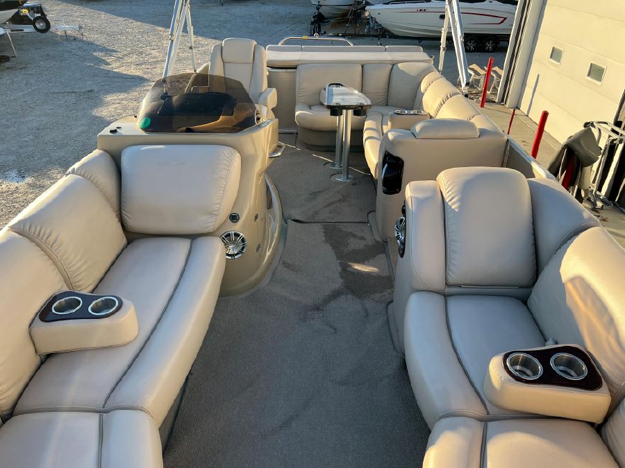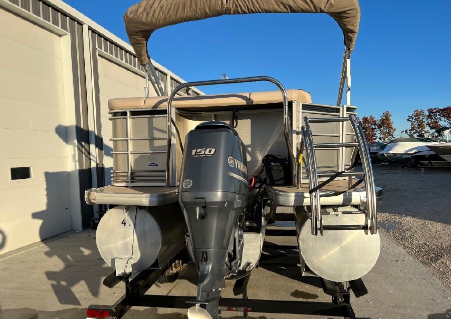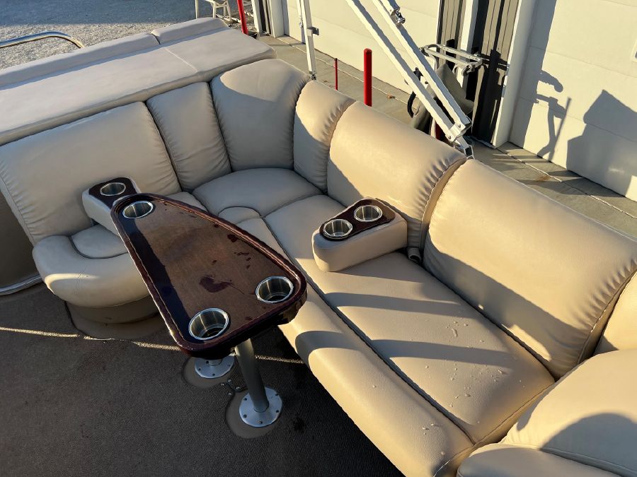 !!! Only 127 Hours !!! This is a fully loaded top of the line 24’ Tri Toon equipped with a 150 hp Yamaha four stroke outboard, hydraulic steering, seat covers, removable carpet/vinyl floor, Carpet is not stained but has some spots where it was wet from the water in the pics, elevated helm, AM/FM stereo, Bimini Top, and more.