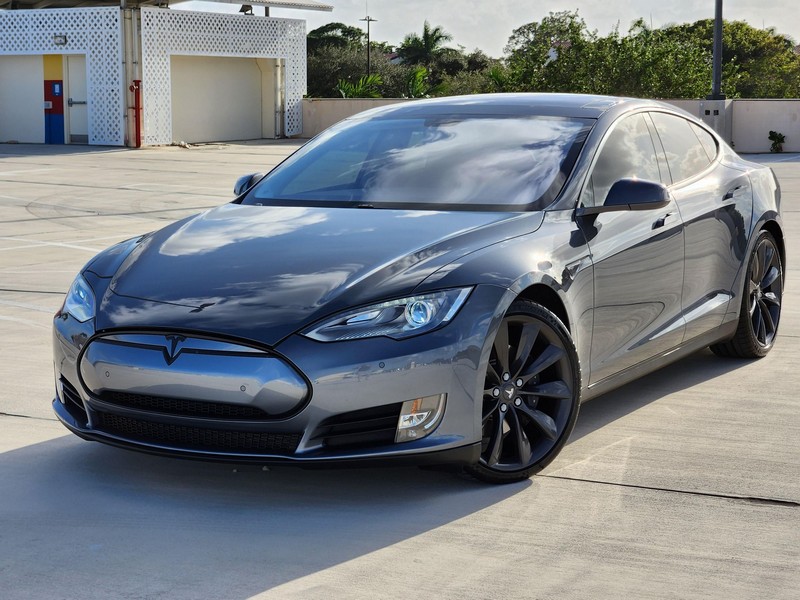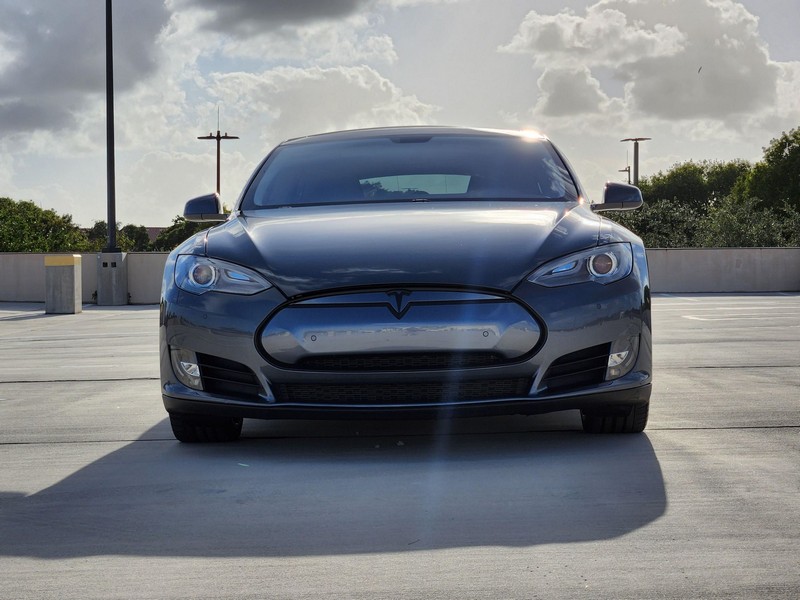THIS… is a 2013 Tesla Model S P85+, finished in grey with a black and grey interior. The odometer on this Model S indicates roughly 14,300 miles.