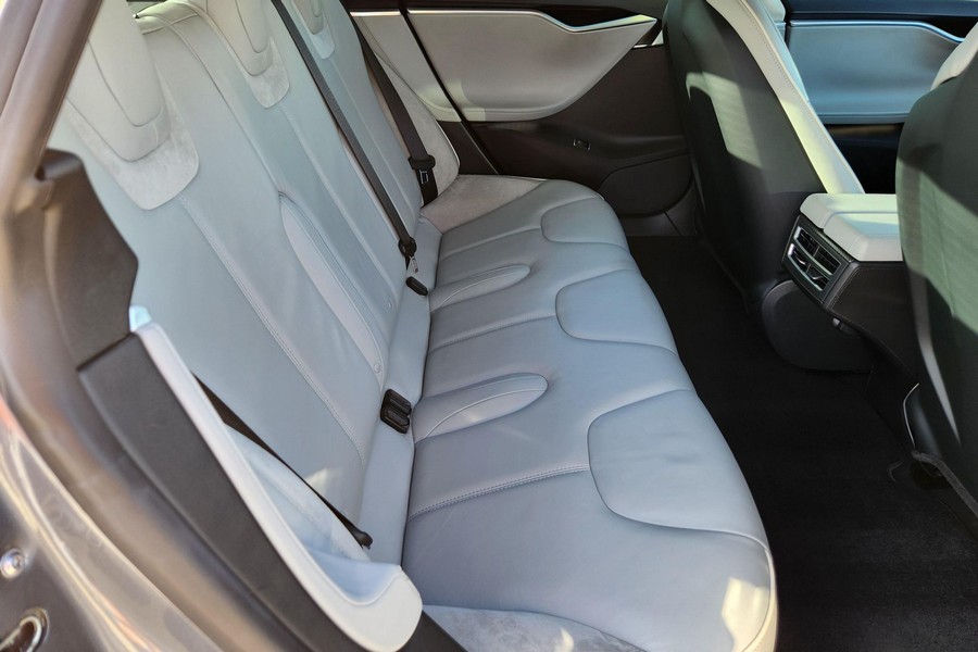 The attached Carfax history report lists no accidents or mileage discrepancies in this Tesla’s past. It also shows one owner and registrations in Florida since new. Factory equipment includes 21-inch wheels, air suspension, a panoramic glass roof, a premium interior, a 17-inch touchscreen infotainment system, a premium audio system, and a HomeLink garage door opener. Power comes from a rear-mounted electric motor, which draws electricity from an 85-kWh lithium-ion battery pack to zap the rear wheels with 416 horsepower and 443 lb-ft of torque.