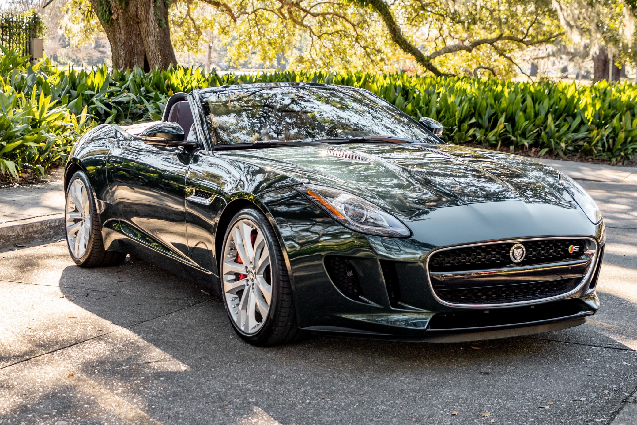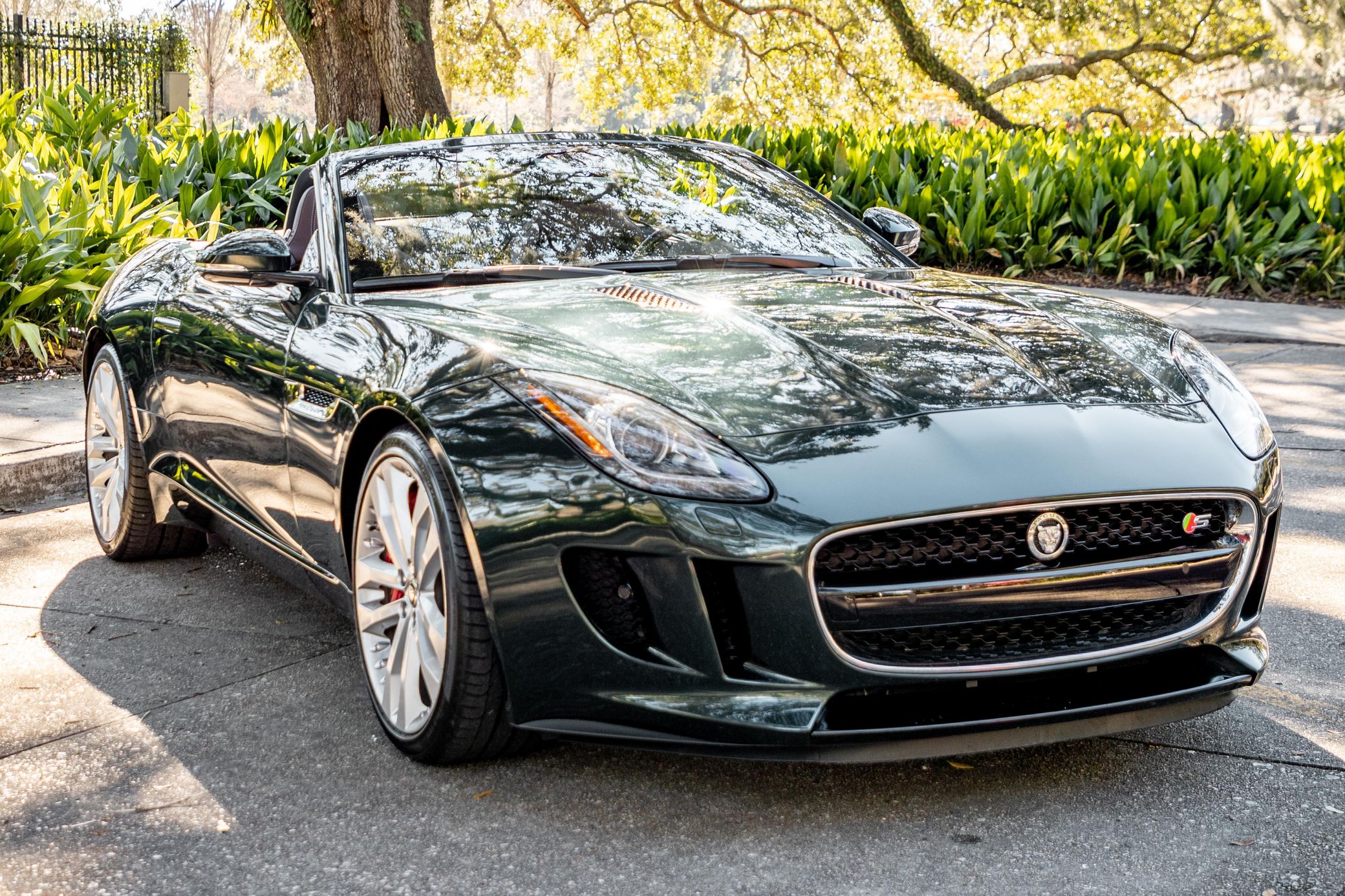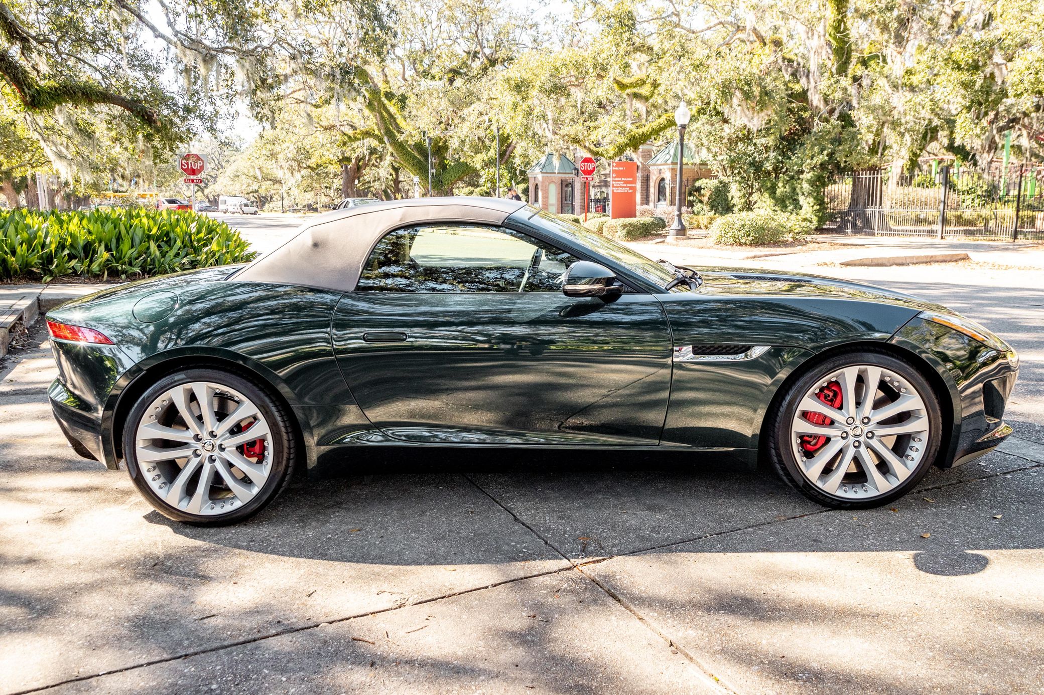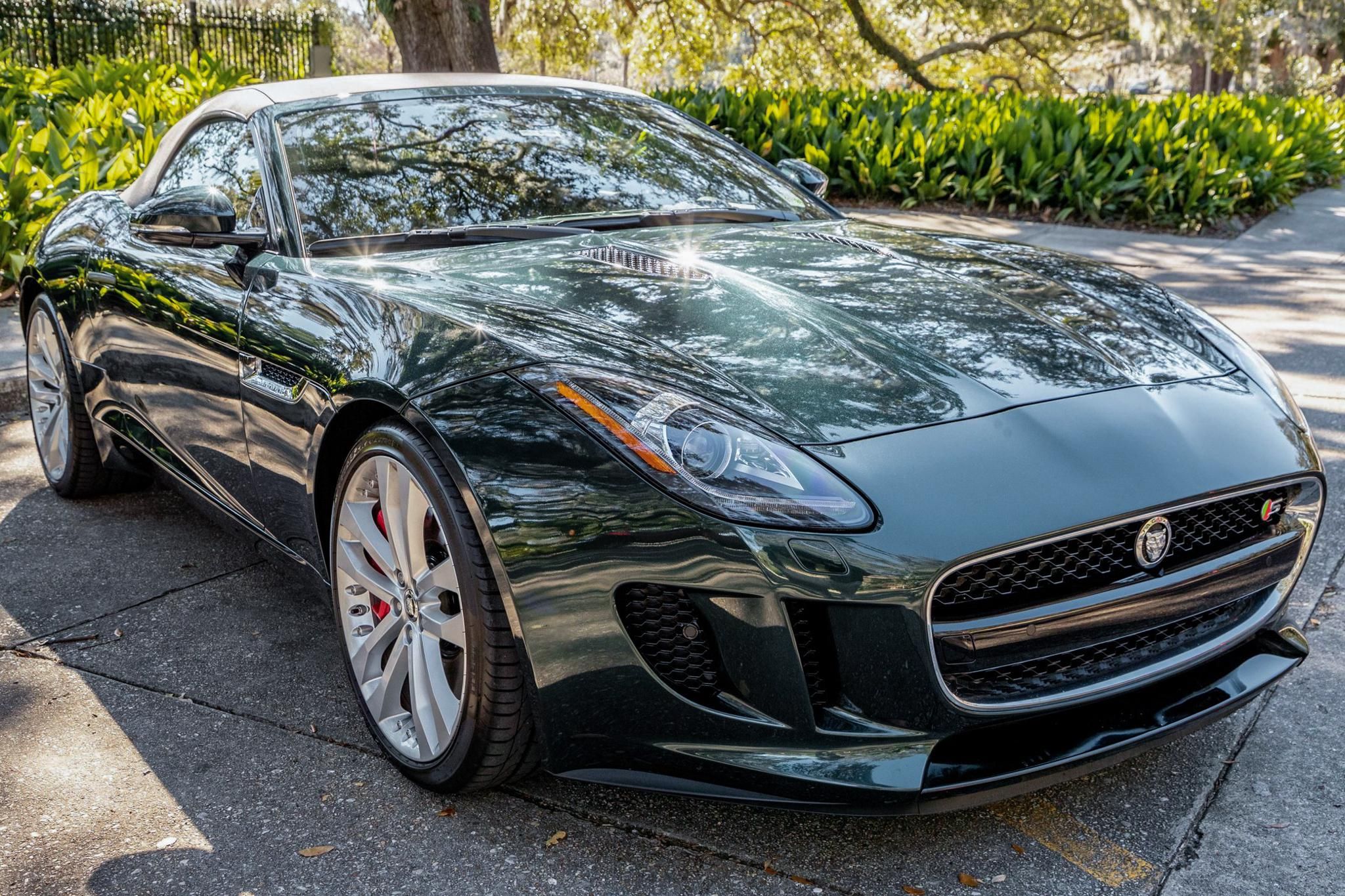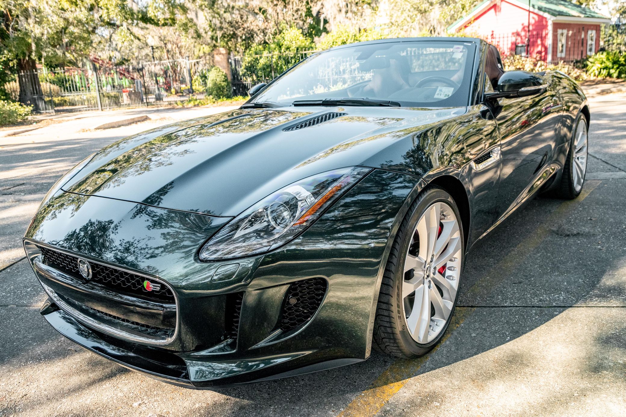 THIS… is a 2014 Jaguar F-Type S Convertible, finished in British Racing Green with a beige soft top and a Jet/Brogue interior. The odometer currently displays approximately 18,200 miles. The attached Carfax vehicle history report lists no accidents or mileage discrepancies in this F-Type’s past. It also confirms that this is a one-owner car that has been registered in Louisiana since new. Equipment includes Premium Pack S, Performance Pack S, Vision Pack, Climate Pack, Extended Leather Pack, adaptive sport suspension, a limited-slip differential, active exhaust system, power-adjustable seats, a Meridian sound system, and more as detailed below. The seller reports no modifications.