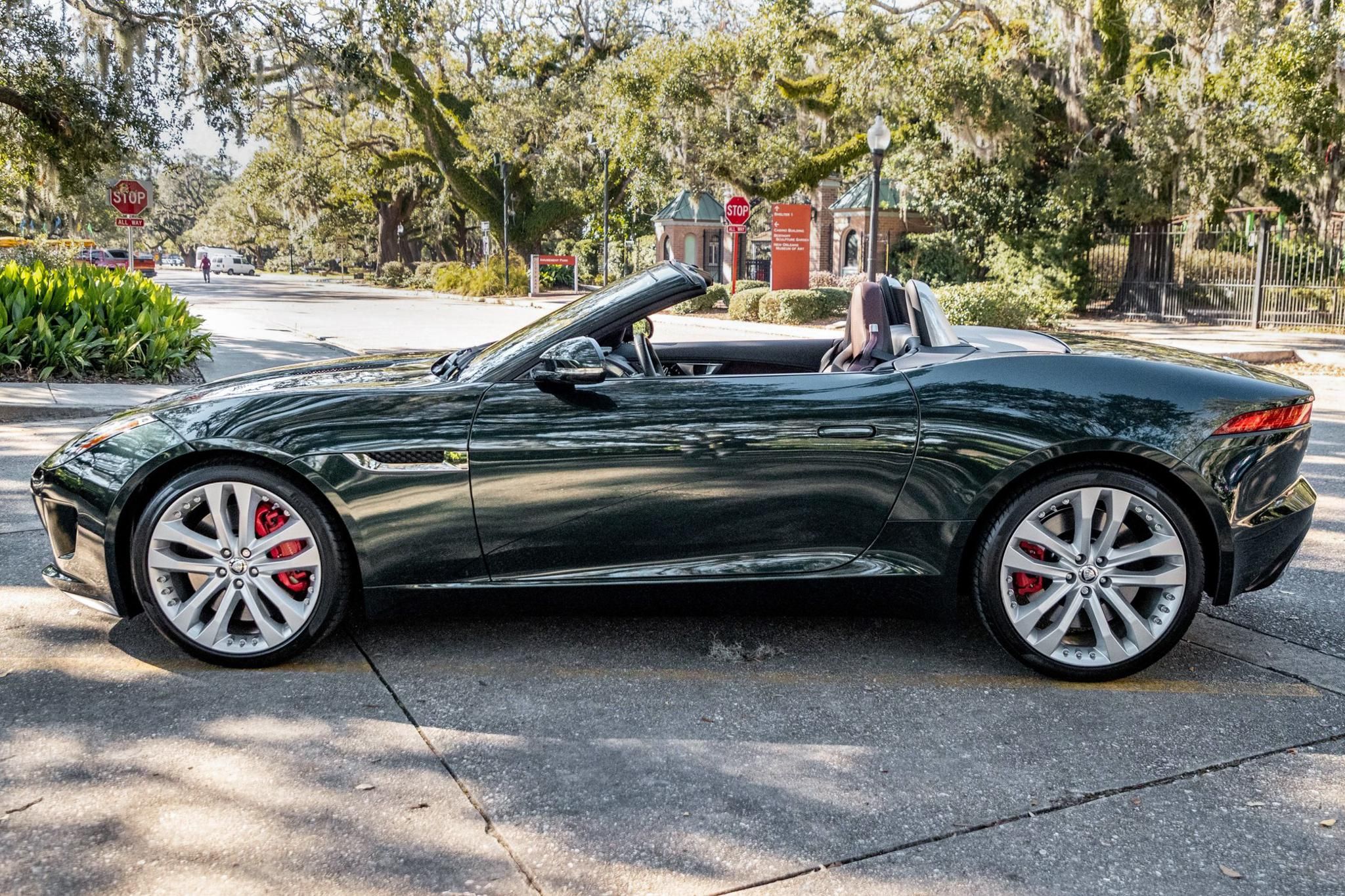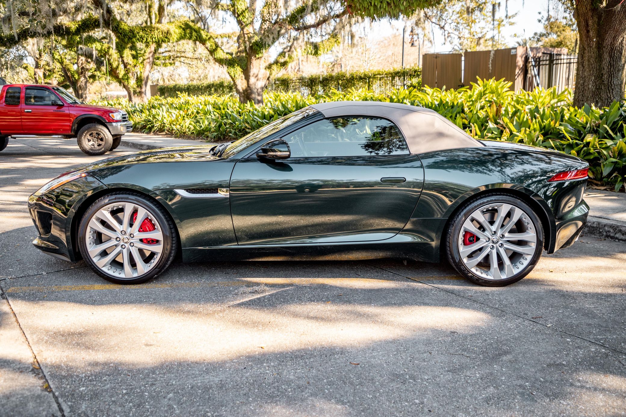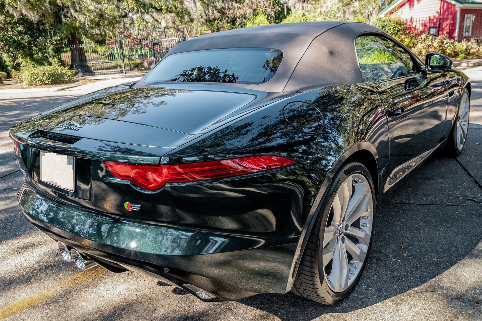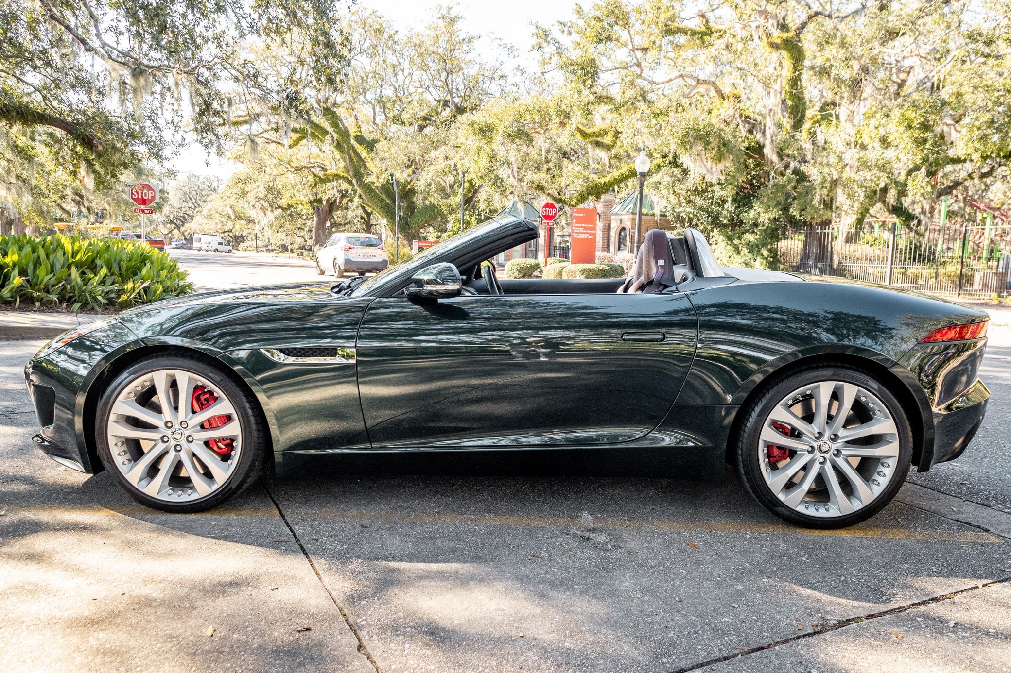 THIS… is a 2014 Jaguar F-Type S Convertible, finished in British Racing Green with a beige soft top and a Jet/Brogue interior. The odometer currently displays approximately 18,200 miles. The attached Carfax vehicle history report lists no accidents or mileage discrepancies in this F-Type’s past. It also confirms that this is a one-owner car that has been registered in Louisiana since new. Equipment includes Premium Pack S, Performance Pack S, Vision Pack, Climate Pack, Extended Leather Pack, adaptive sport suspension, a limited-slip differential, active exhaust system, power-adjustable seats, a Meridian sound system, and more as detailed below. The seller reports no modifications.