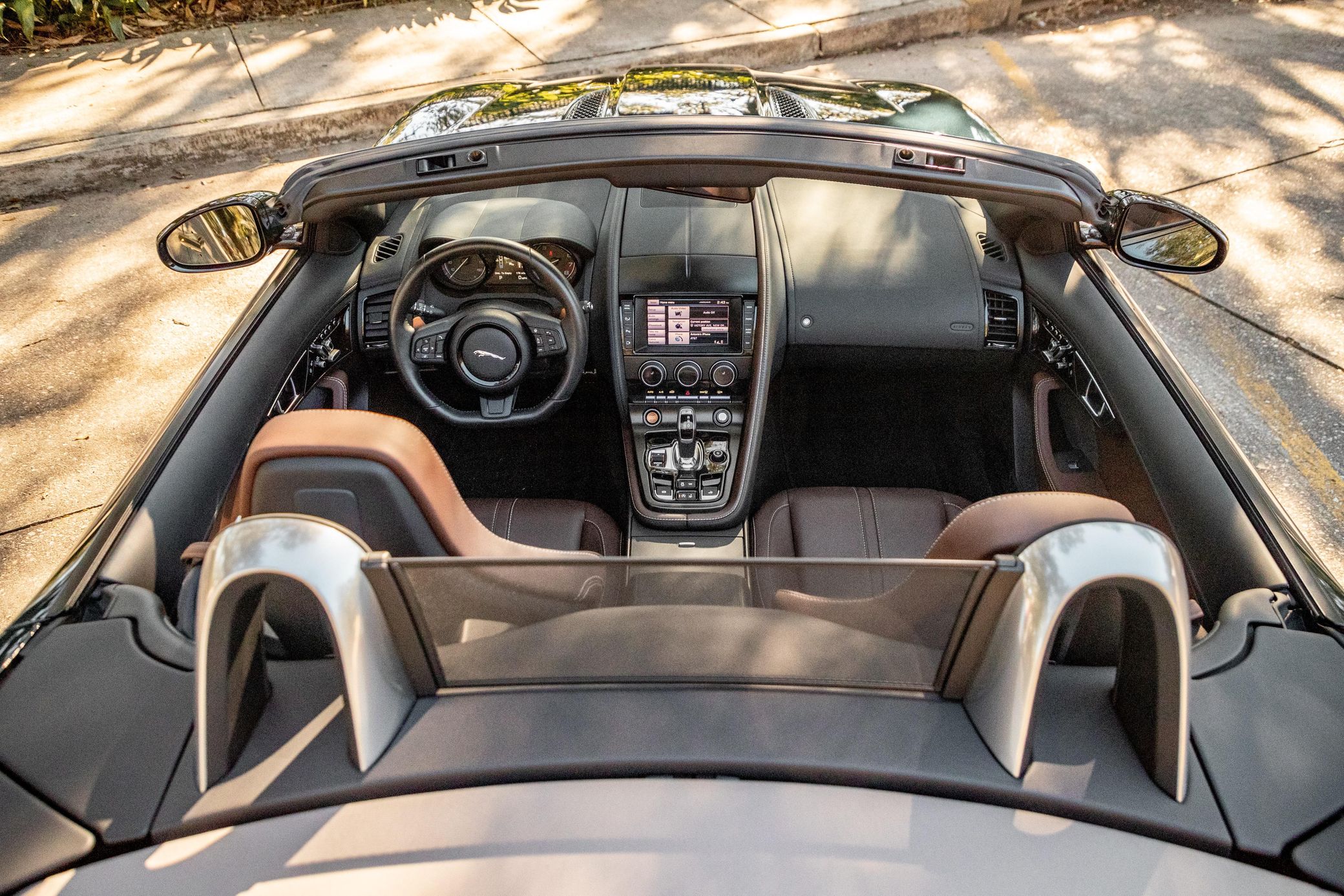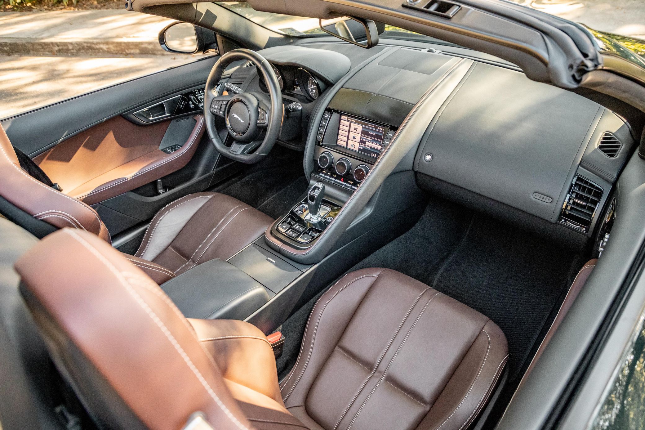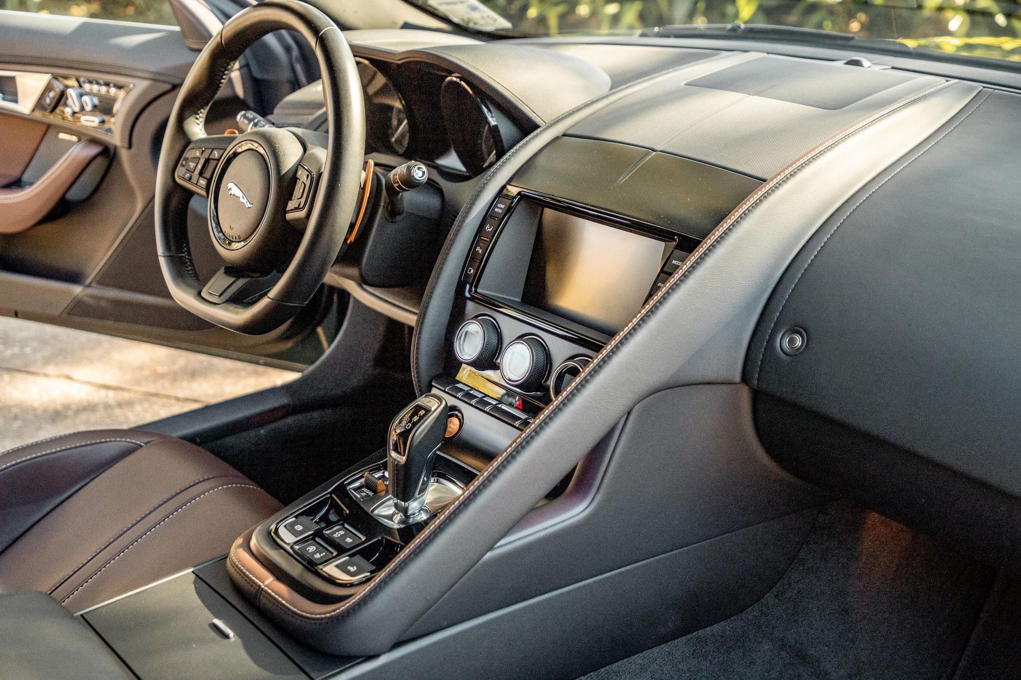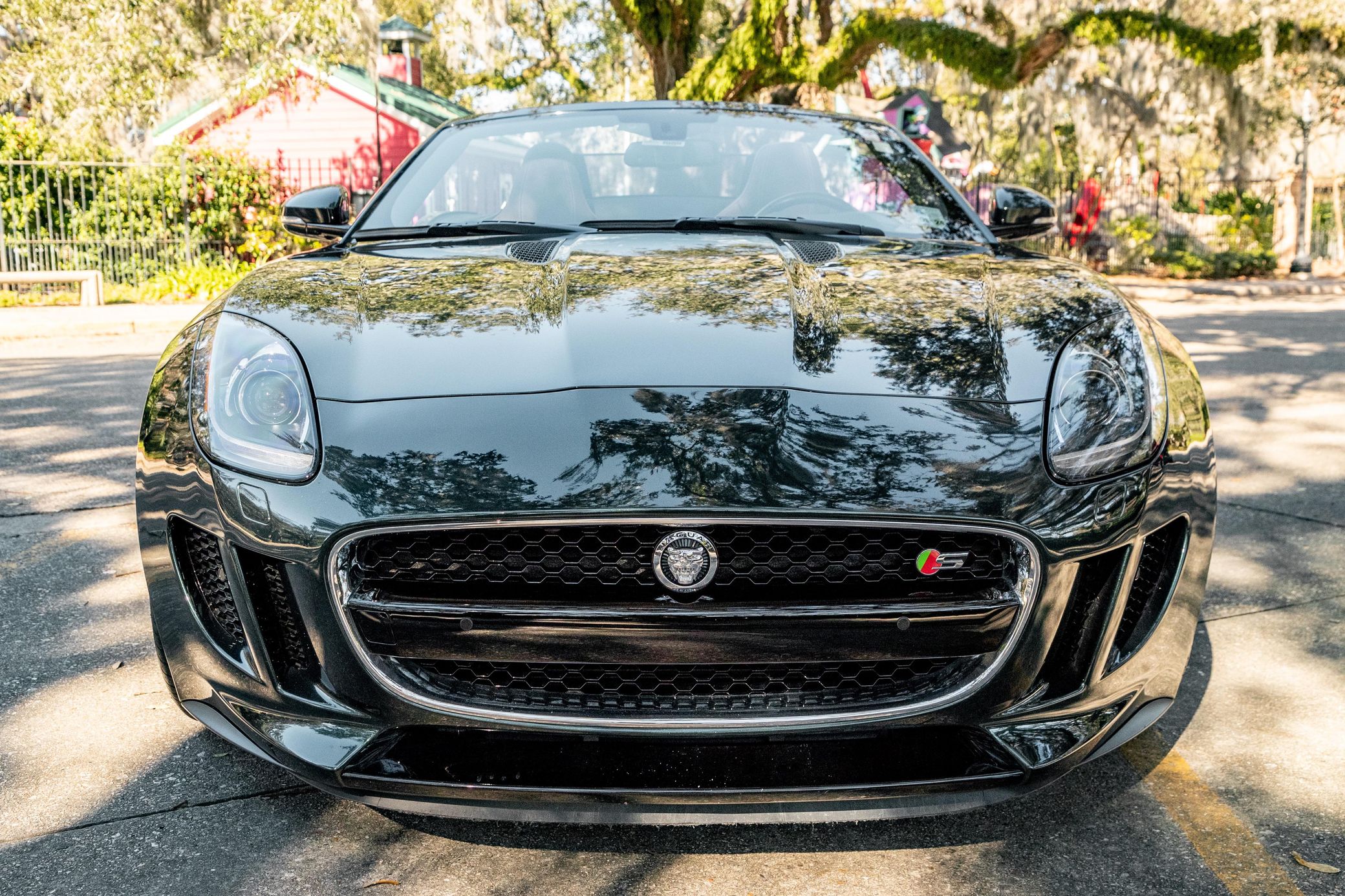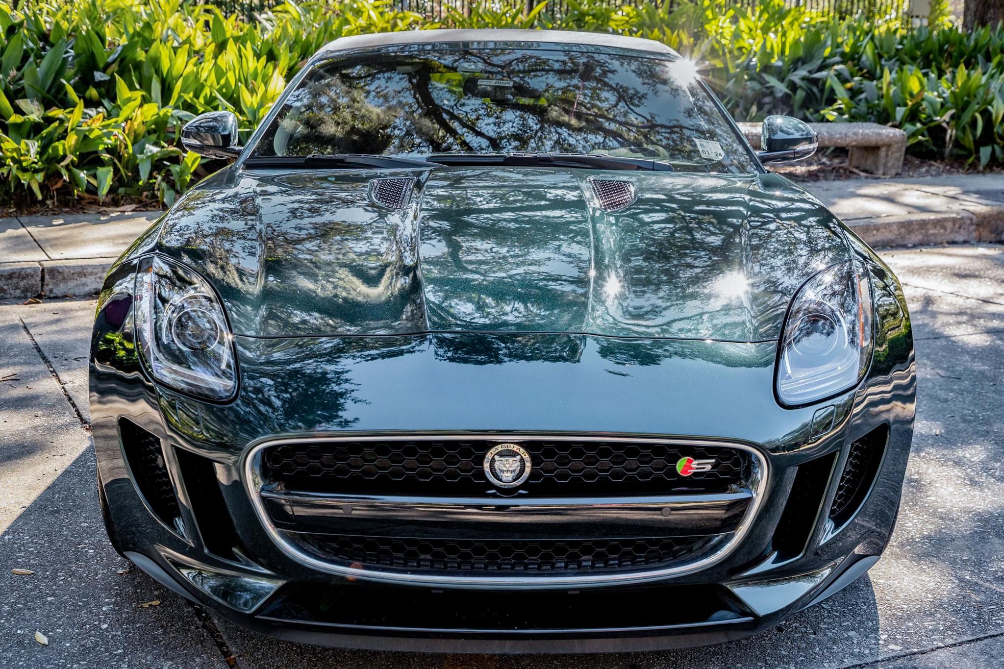 THIS… is a 2014 Jaguar F-Type S Convertible, finished in British Racing Green with a beige soft top and a Jet/Brogue interior. The odometer currently displays approximately 18,200 miles. The attached Carfax vehicle history report lists no accidents or mileage discrepancies in this F-Type’s past. It also confirms that this is a one-owner car that has been registered in Louisiana since new. Equipment includes Premium Pack S, Performance Pack S, Vision Pack, Climate Pack, Extended Leather Pack, adaptive sport suspension, a limited-slip differential, active exhaust system, power-adjustable seats, a Meridian sound system, and more as detailed below. The seller reports no modifications.