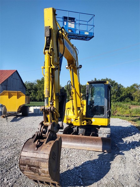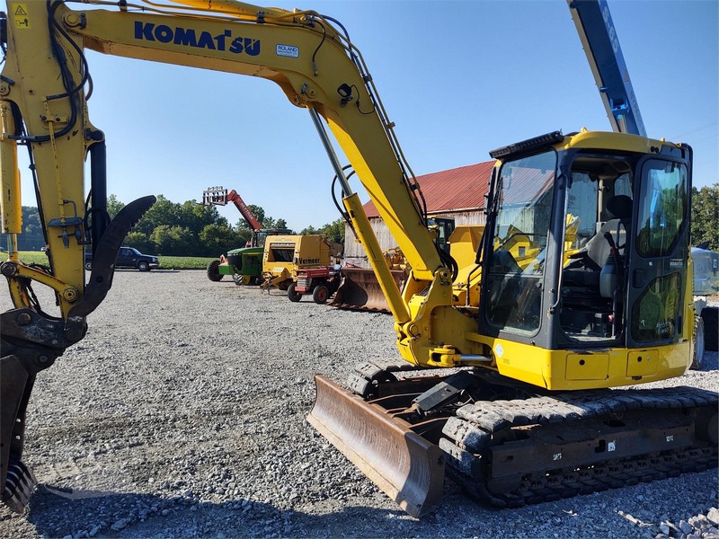 2014 Komatsu PC88-10, 5113 Hrs. Auxiliary Hydraulics, Hyd. Coupler, Hyd. Thumb, 24” Bucket, Blade, Swing Boom, Zero Tail Swing, Heat and A.C. Steel Tracks With Rubber Pads, Radio.