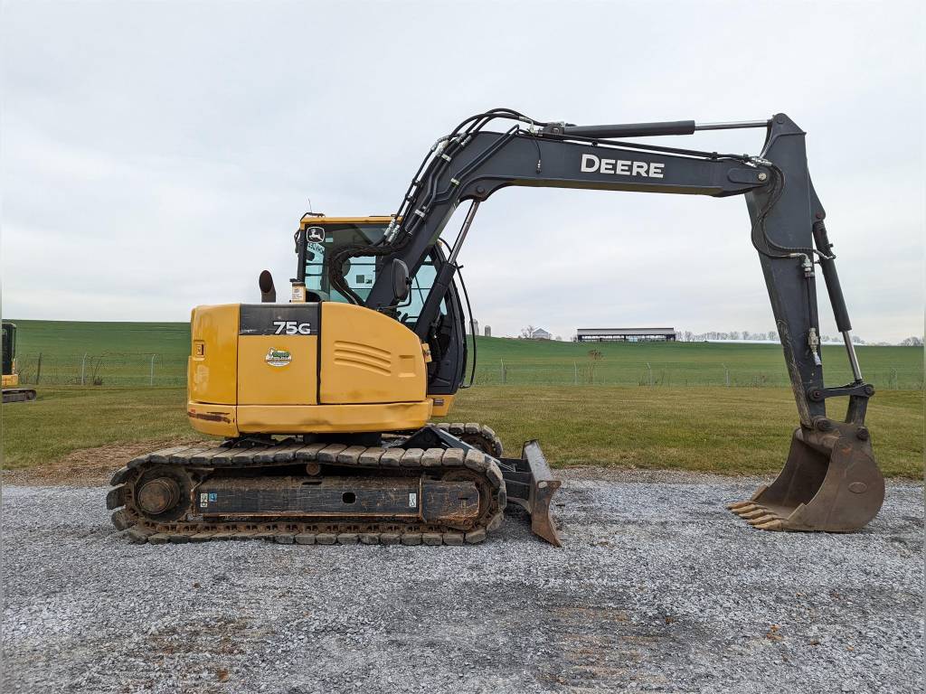 2015 DEERE, 75G Excavators – Crawler, Heat, A/C, Radio, Blade, Roadliner Pads, Auxiliary Hydraulics, 30″ Bucket.