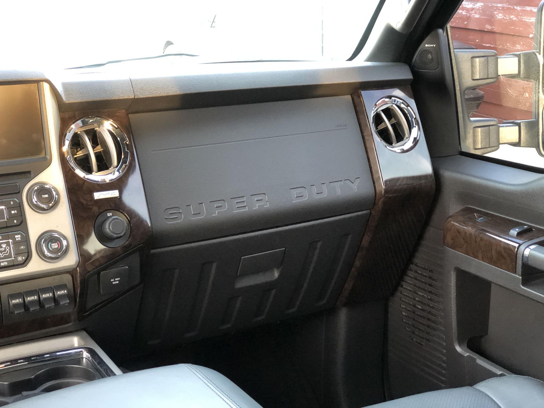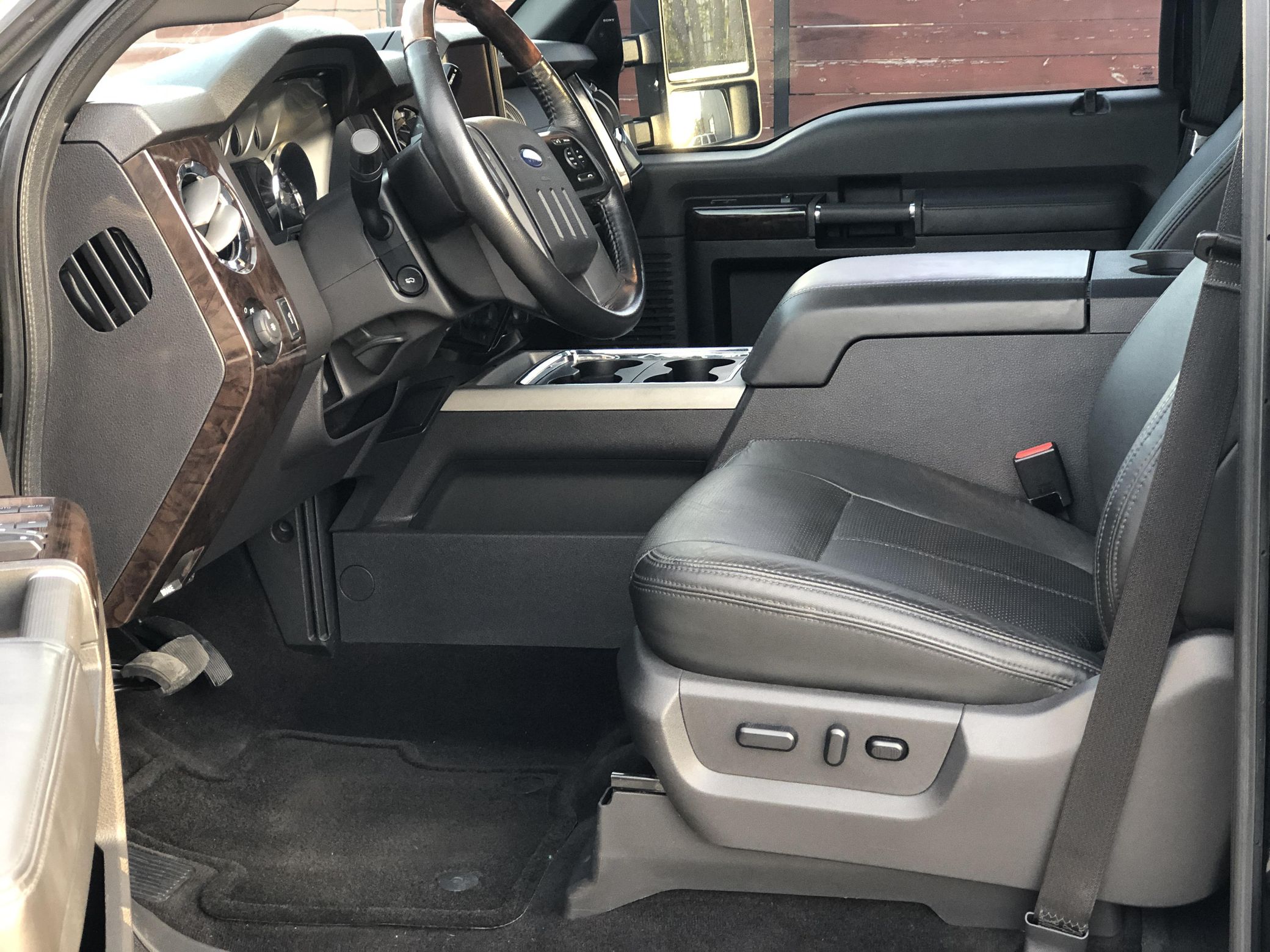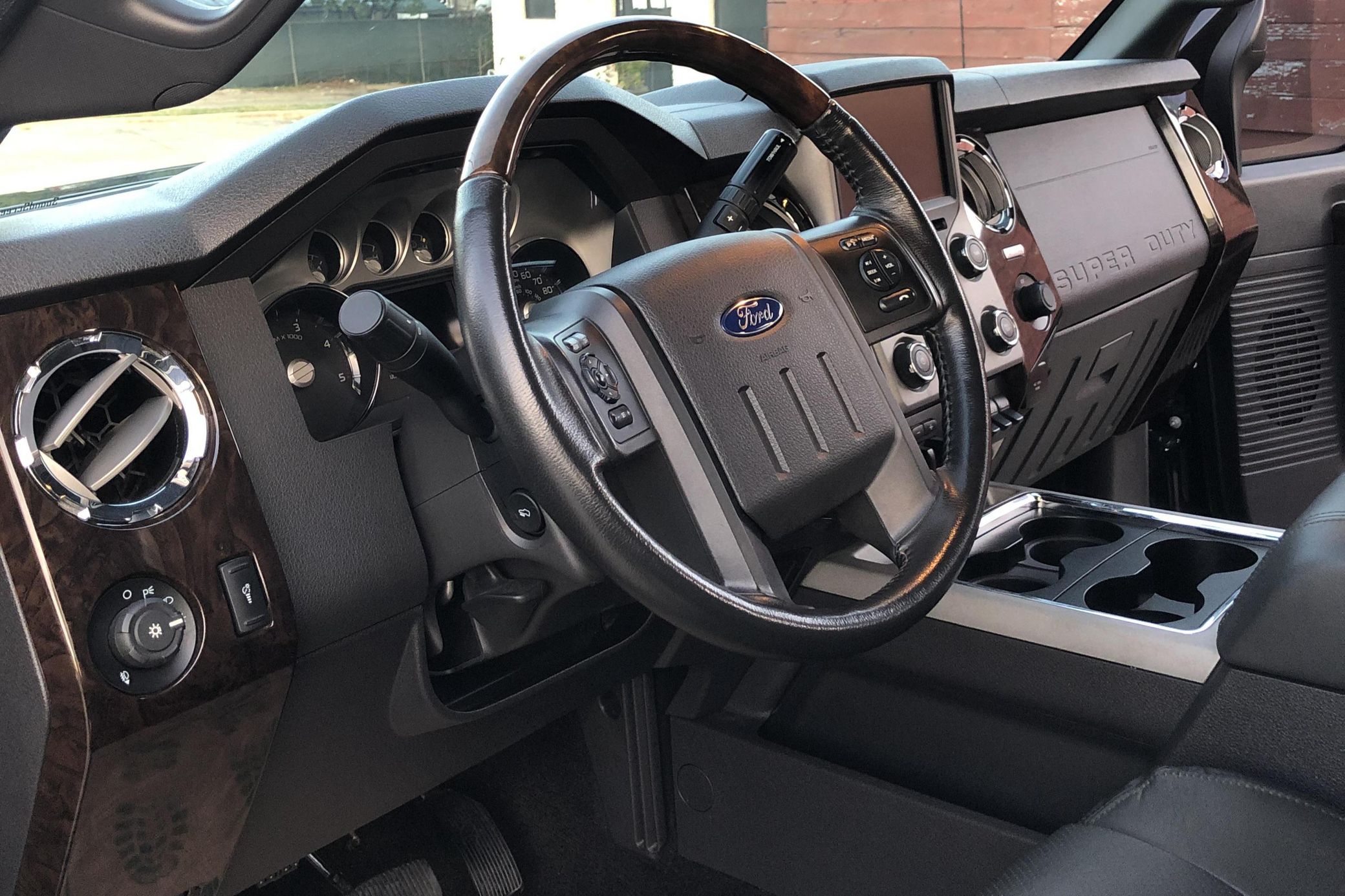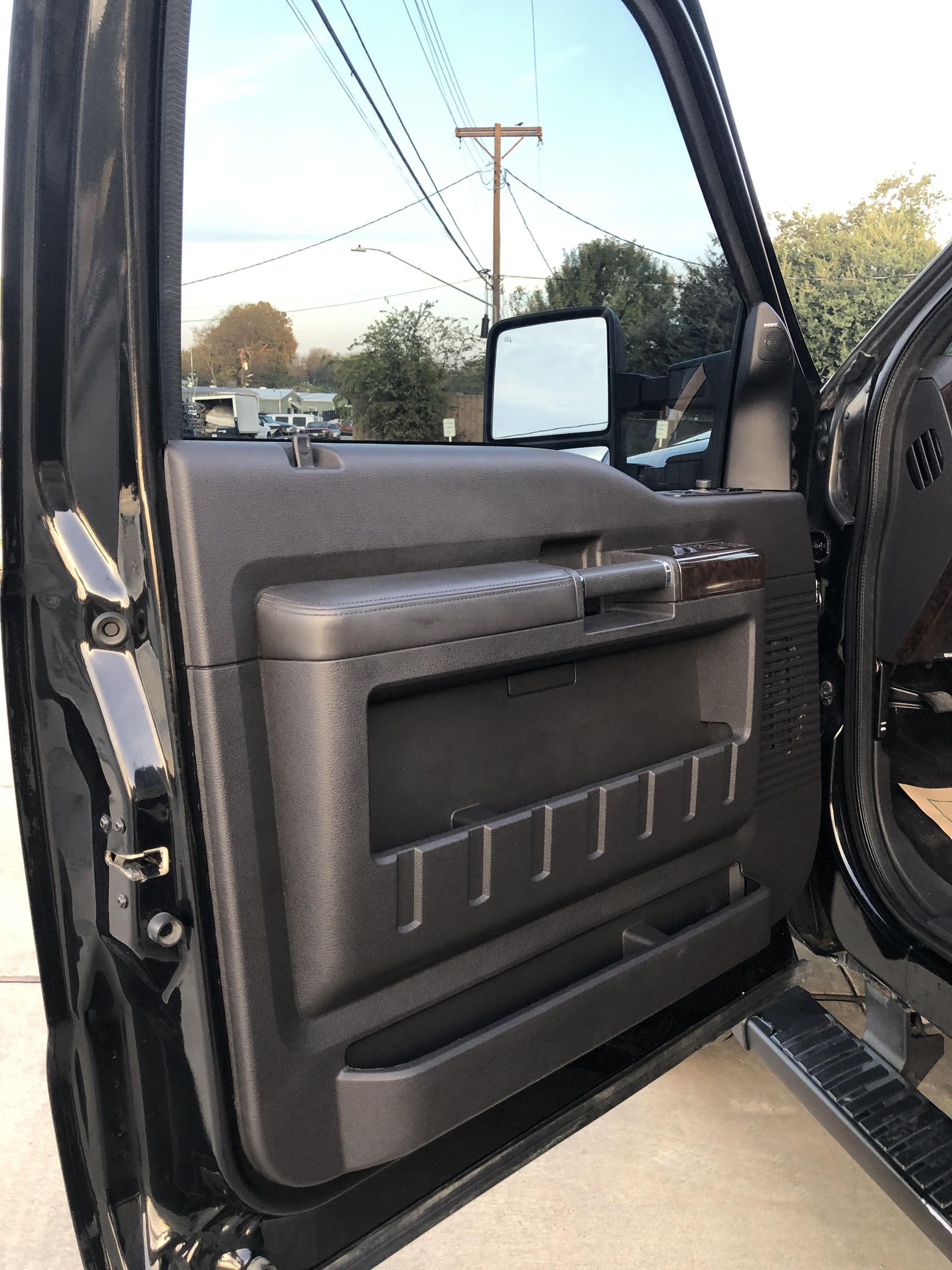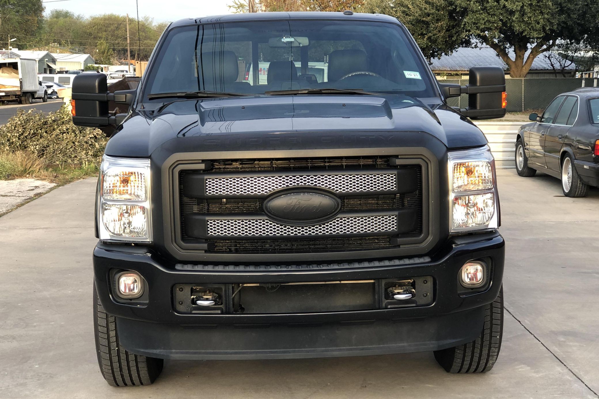 THIS… is a 2015 Ford F-350 Super Duty Platinum 4×4, finished in Tuxedo Black with a Charcoal Black interior. No accidents in this truck’s past. Highly equipped, this Platinum model features skid plates, body-colored bumpers, running boards, a step and a grab bar integrated into the tailgate, a sunroof, leather upholstery, heated, ventilated, and power-adjustable front seats, a touchscreen-based infotainment system, a navigation system, rear parking sensors, and a rear-view camera, among other equipment. Modifications reported by the seller include 20-inch Method wheels and a black wrap on the grille, on the door handles, and on the tailgate insert. Ford’s third-generation Super Duty made its debut for the 2011 model year. It looked a lot like its predecessor, and it remained available in a dizzying number of configurations, but it received a long list of updates (including a new turbodiesel engine and trailer sway control technology) that made it even better suited to towing for miles on end. Ford made several updates to the truck until production ended in 2016. Power comes from a 6.7-liter “Power Stroke” turbodiesel V8, rated at 440 horsepower and 860 lb-ft of torque. It spins the four wheels via a 6-speed automatic transmission and a 2-speed transfer case. Ford quoted a 14,000-pound towing capacity (and 15,900 pounds when using a gooseneck hitch) in 2015.