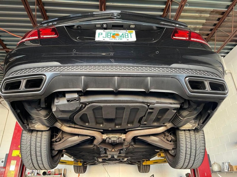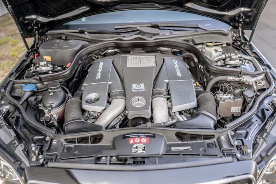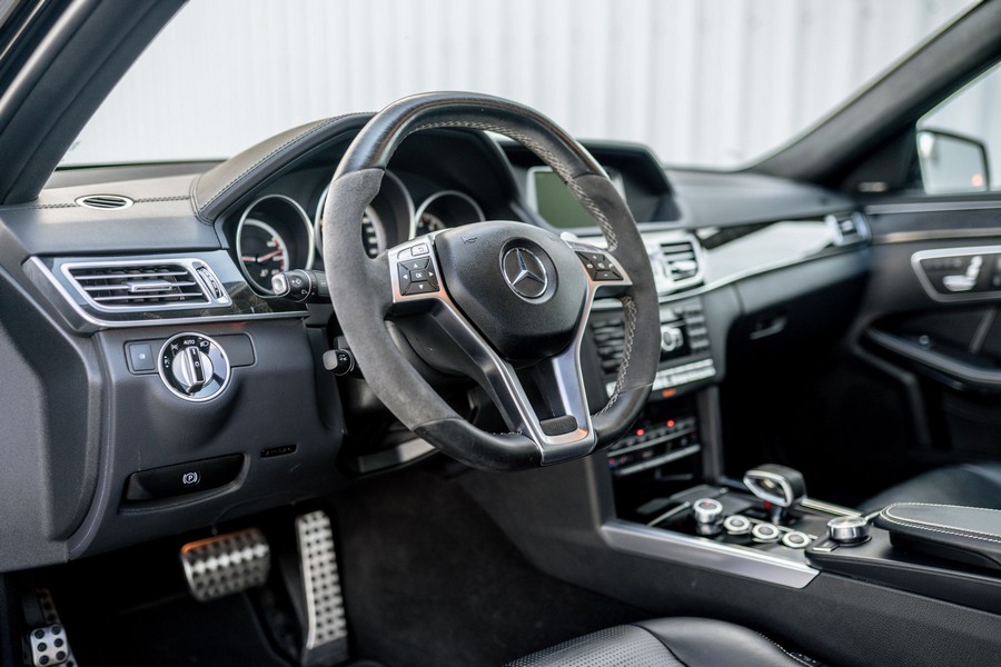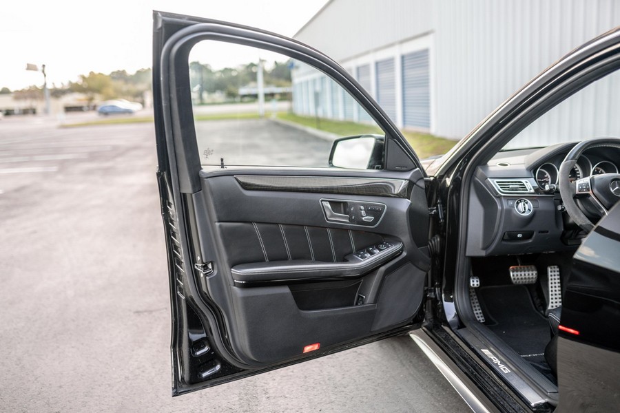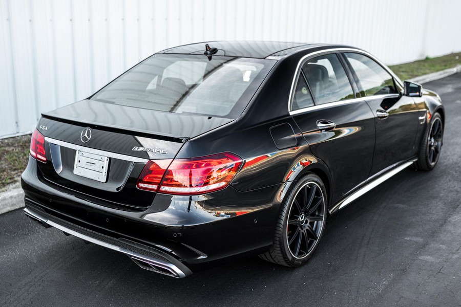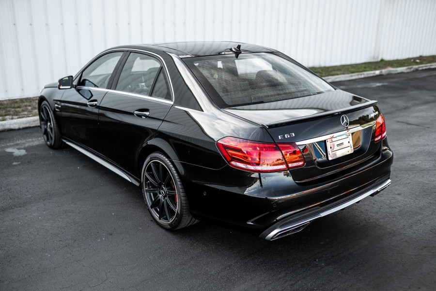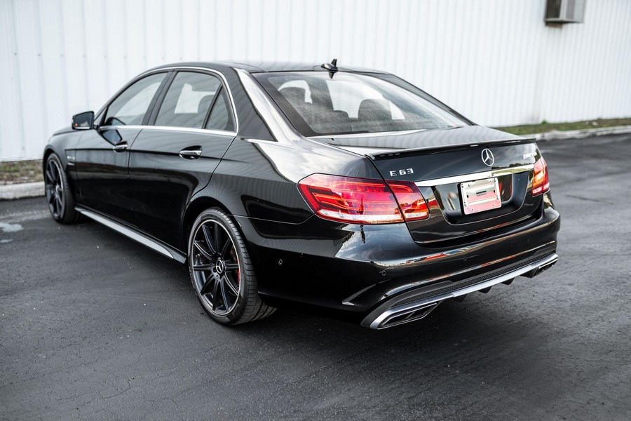 THIS… is a 2015 Mercedes-Benz E63 S AMG Sedan, finished in Obsidian Black with a black interior. The attached Carfax history report indicates no accidents or mileage discrepancies.Equipment includes the AMG Styling Package, 19-inch wheels, a limited-slip differential, LED headlights, panoramic sunroof, power-adjustable heated and ventilated front seats, AMG Performance steering wheel, Distronic Plus adaptive cruise control, a Harman/Kardon Logic7 Surround Sound system, and more as detailed below. The selling dealer reports no modifications. Power comes from an “M157” twin-turbocharged 5.5-liter V8, rated at 577 horsepower and 590 lb-ft of torque. Output is sent to all four wheels through a 7-speed automatic transmission and Mercedes-Benz’s 4Matic permanent all-wheel drive system.