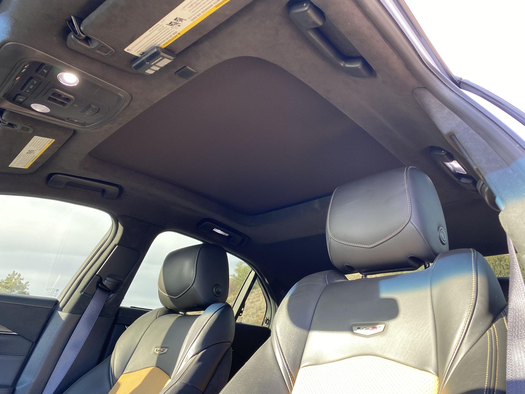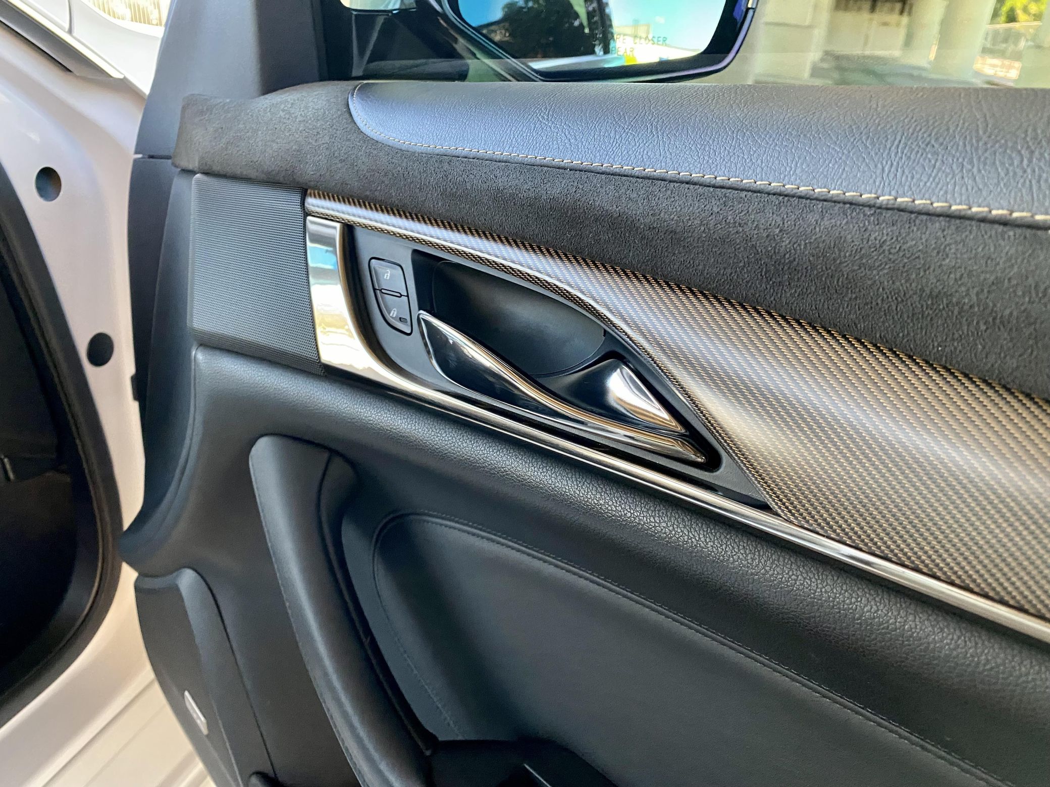 The odometer displays about 26,900 miles. No mileage inconsistencies in this sedan’s past. Factory equipment includes 19-inch wheels, the Magnetic Ride Control suspension system, a Brembo braking system, a carbon fiber hood, carbon fiber interior trim, leather and suede upholstery, heated and ventilated front sport seats, a heated steering wheel, a 12.3-inch digital instrument cluster, a Bose sound system, a wireless device charger, a head-up display, plus front and rear parking sensors. Modifications reported by the seller are limited to black paint on the hood vent, a ceramic tint on the windshield and on the windows, and a hard-wired Escort Passport 9500ci radar detector. The third-generation CTS-V arrived for 2016 as the most powerful series-produced Cadillac ever released. It earned the nickname “four-door Corvette” because it was powered by an “LT4” V8 engine shared with the Corvette Z06, among other models. This decidedly American take on the concept of a high-power sport sedan was praised by enthusiasts and journalists alike for offering excellent performance, surprisingly sharp handling, and an interior that represented a big step forward over the second-generation model. Production ended in 2019, when the CTS was replaced by the CT5. Power comes from a 6.2-liter supercharged V8, rated at 640 horsepower and 630 lb-ft of torque. It spins the rear wheels via an 8-speed automatic transmission linked to a pair of shift paddles.