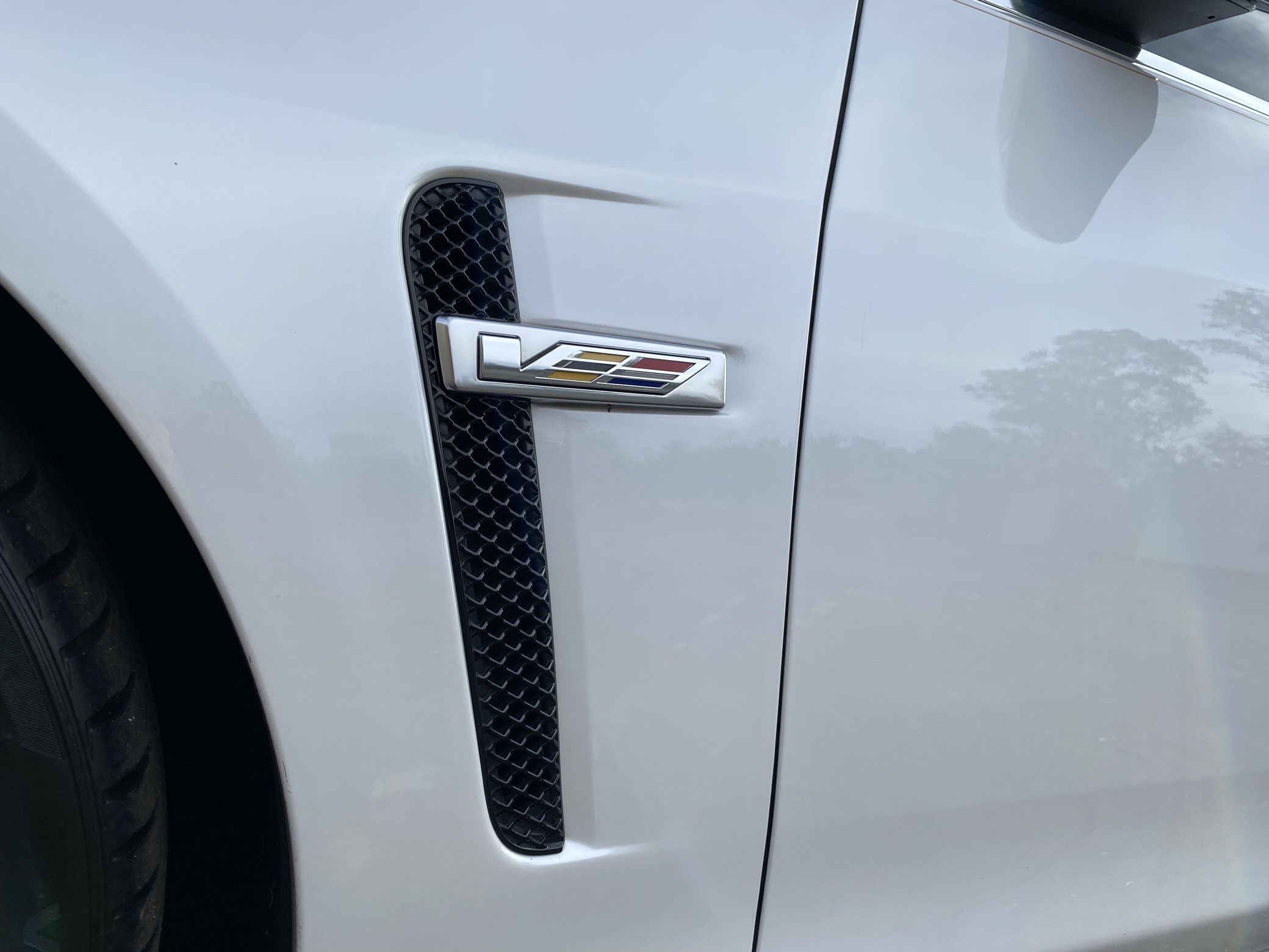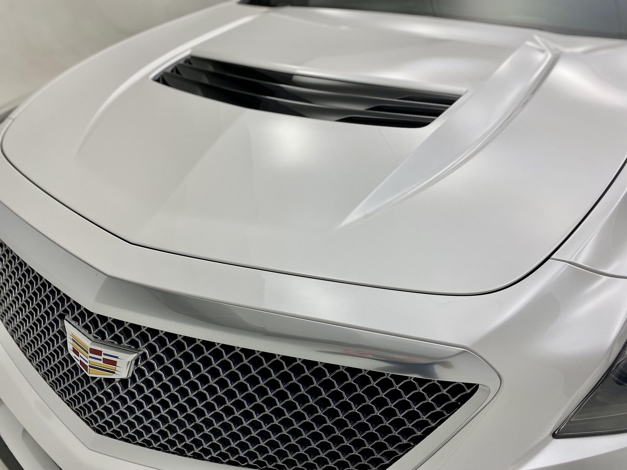 THIS… is a 2016 Cadillac CTS-V, finished in White Frost with a Jet Black and Saffron interior.