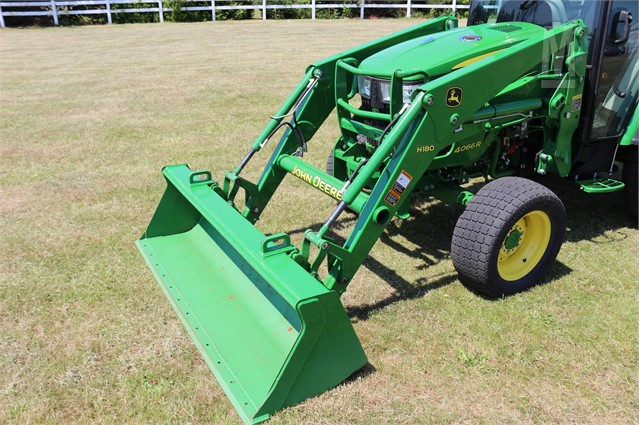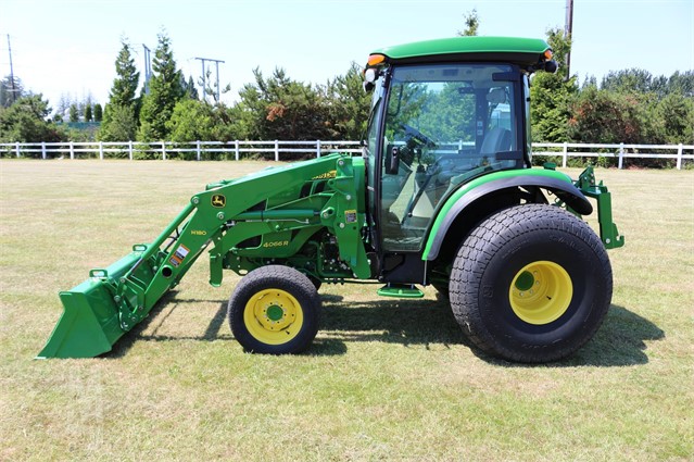 Ultra clean low hour 4066R cab with H180 loader. This is the most premium compact tractor John Deere has to offer. Heat/AC/Defrost, air ride seat, factory installed radio, and iMatch quick hitch.