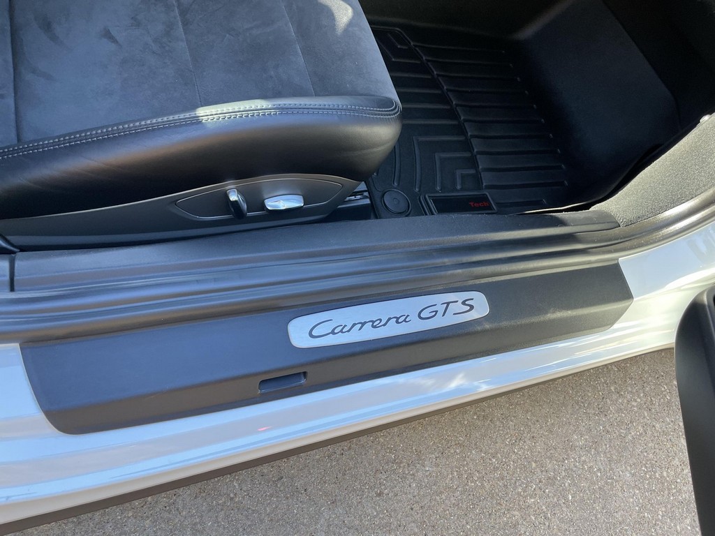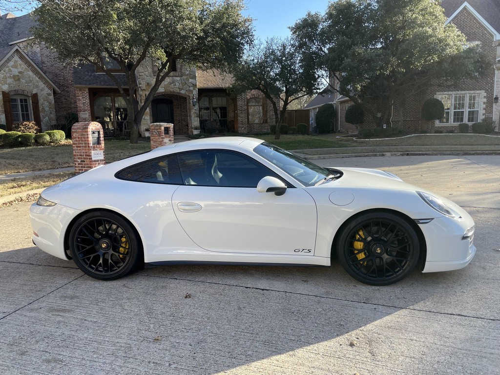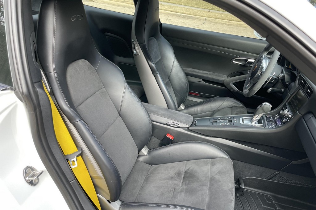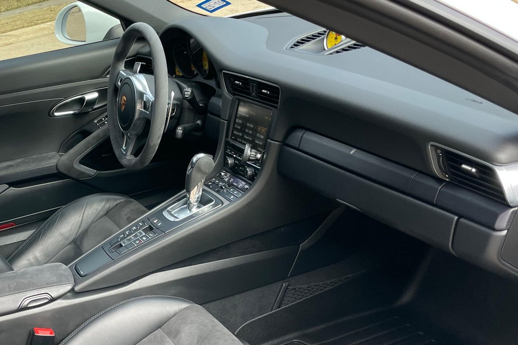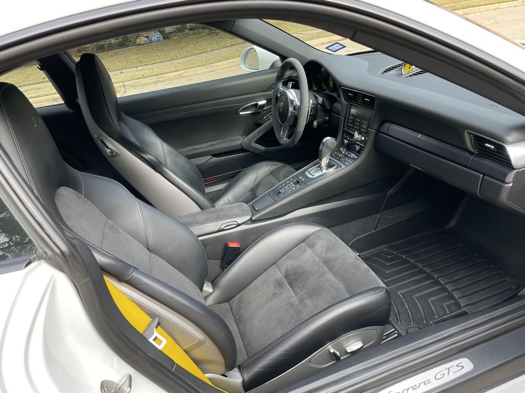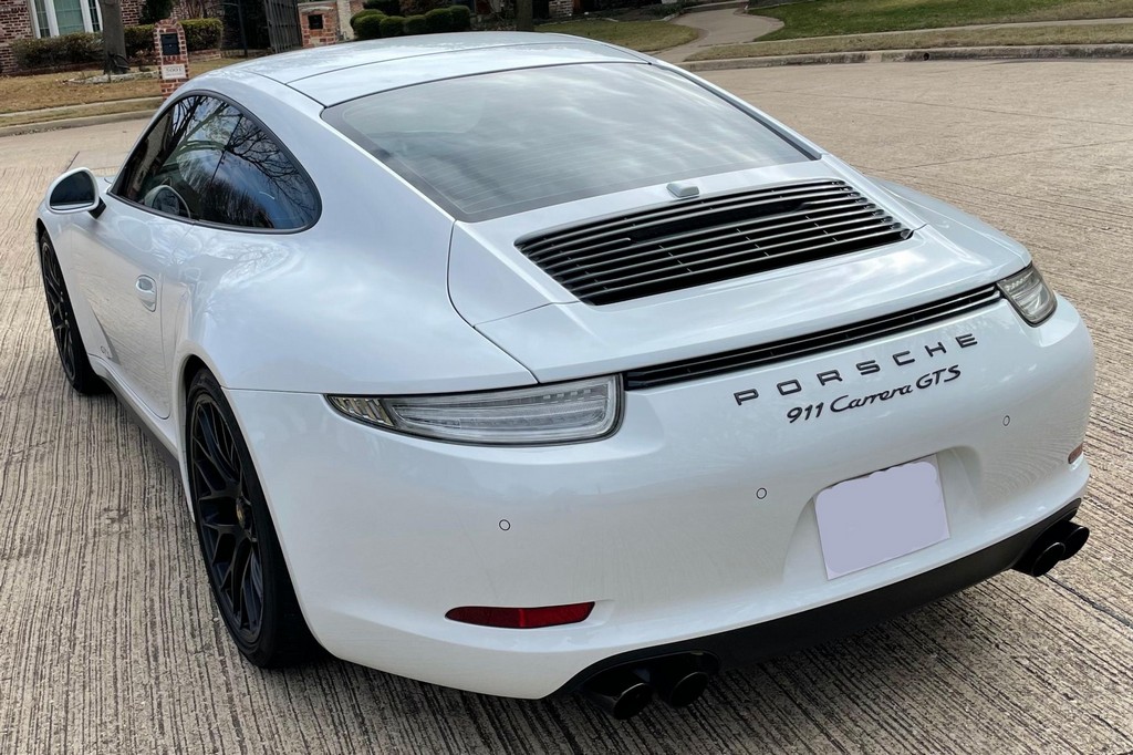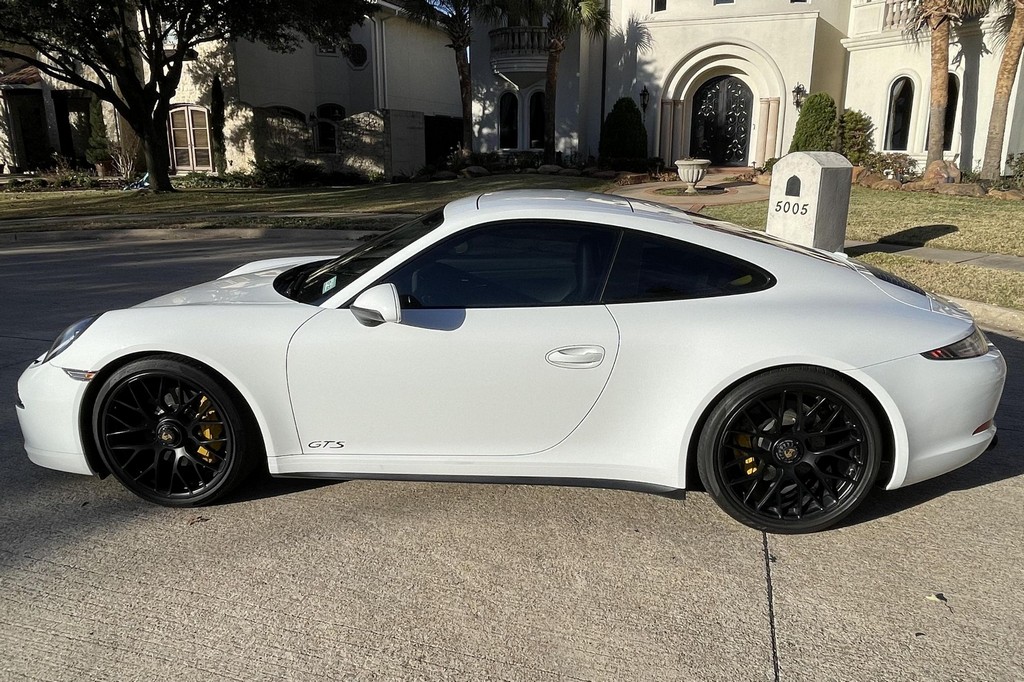 THIS… is a 2016 Porsche 911 Carrera GTS, finished in white with a black interior. The attached Carfax history report shows no accidents or mileage discrepancies in this 911’s past. Factory equipment includes the Bose Audio package (Bose Surround Sound system, navigation system, HD radio, online services), Porsche Ceramic Composite brakes (PCCB), PDCC sports suspension with PASM, 20-inch Turbo S center-lock alloy wheels, clear-glass taillights, a sunroof, leather and Alcantara upholstery, heated front seats, and more as detailed below. Modifications reported by the seller are limited to paint protection film applied on the front bumper and tinted windows. Porsche introduced the 991-generation 911 for the 2012 model year. It arrived as an evolution of its predecessor, the 997, which received more powerful engines across the board and a more luxurious interior. It was longer, lower, and wider but it relied extensively on aluminum to avoid putting on weight. The sport-focused GTS model was introduced for the 2015 model year and bridges the gap between the Carrera S and the GT3. Power comes from a 3.8-liter flat-6, rated at 430 horsepower and 325 lb-ft of torque. Output is sent to the rear wheels via a 7-speed PDK dual-clutch automatic transmission.