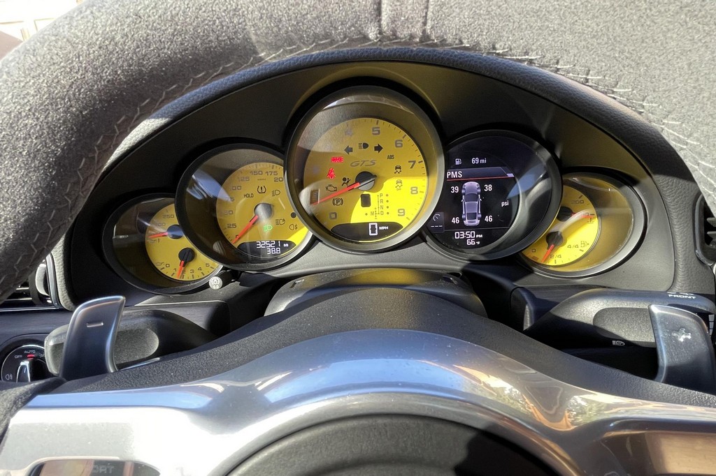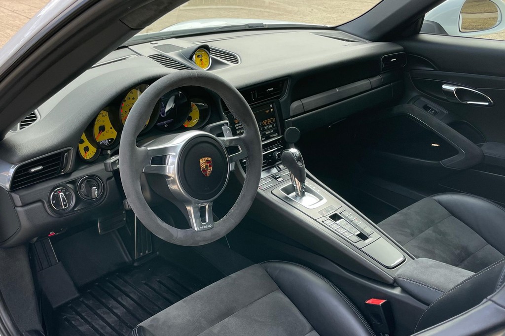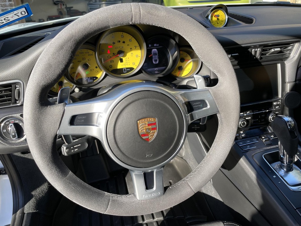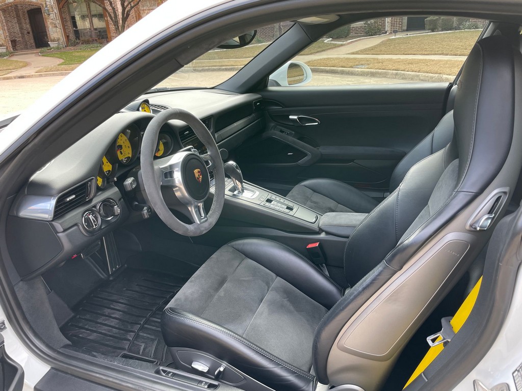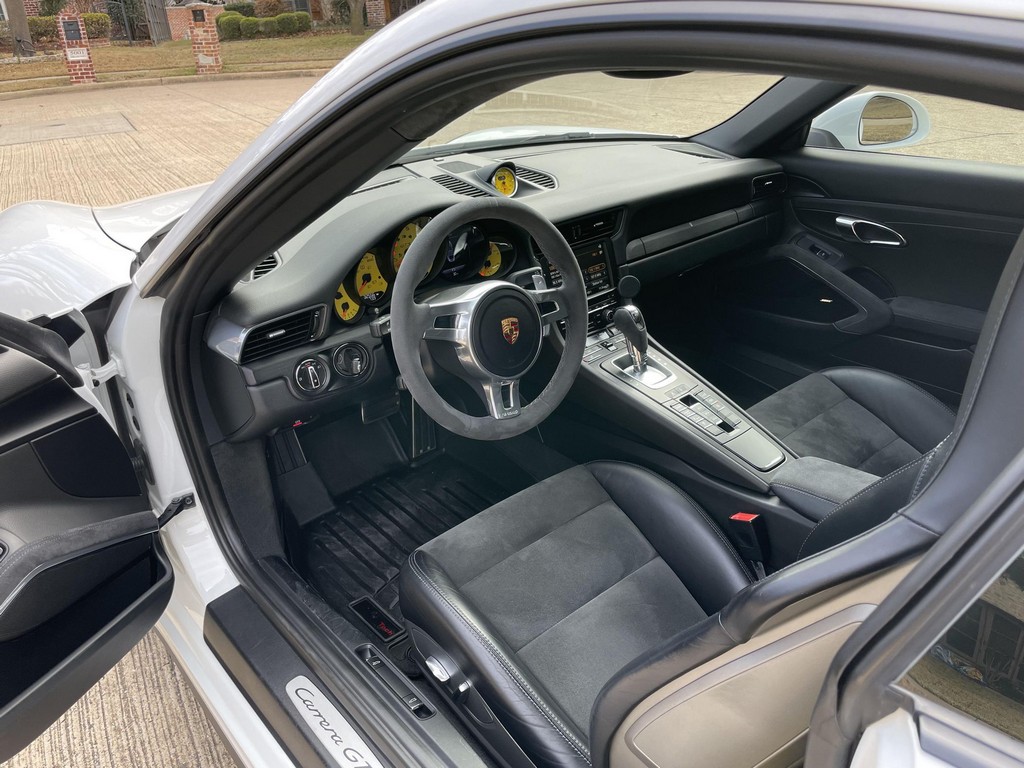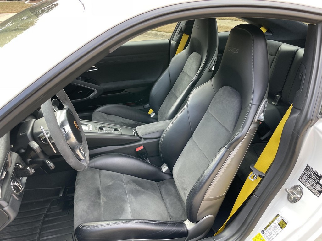 THIS… is a 2016 Porsche 911 Carrera GTS, finished in white with a black interior. The attached Carfax history report shows no accidents or mileage discrepancies in this 911’s past. Factory equipment includes the Bose Audio package (Bose Surround Sound system, navigation system, HD radio, online services), Porsche Ceramic Composite brakes (PCCB), PDCC sports suspension with PASM, 20-inch Turbo S center-lock alloy wheels, clear-glass taillights, a sunroof, leather and Alcantara upholstery, heated front seats, and more as detailed below. Modifications reported by the seller are limited to paint protection film applied on the front bumper and tinted windows. Porsche introduced the 991-generation 911 for the 2012 model year. It arrived as an evolution of its predecessor, the 997, which received more powerful engines across the board and a more luxurious interior. It was longer, lower, and wider but it relied extensively on aluminum to avoid putting on weight. The sport-focused GTS model was introduced for the 2015 model year and bridges the gap between the Carrera S and the GT3. Power comes from a 3.8-liter flat-6, rated at 430 horsepower and 325 lb-ft of torque. Output is sent to the rear wheels via a 7-speed PDK dual-clutch automatic transmission.