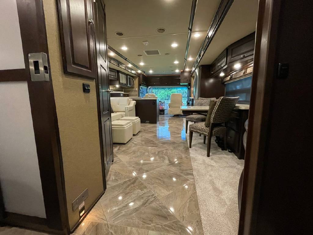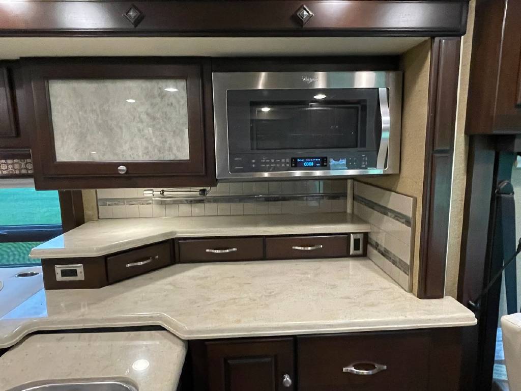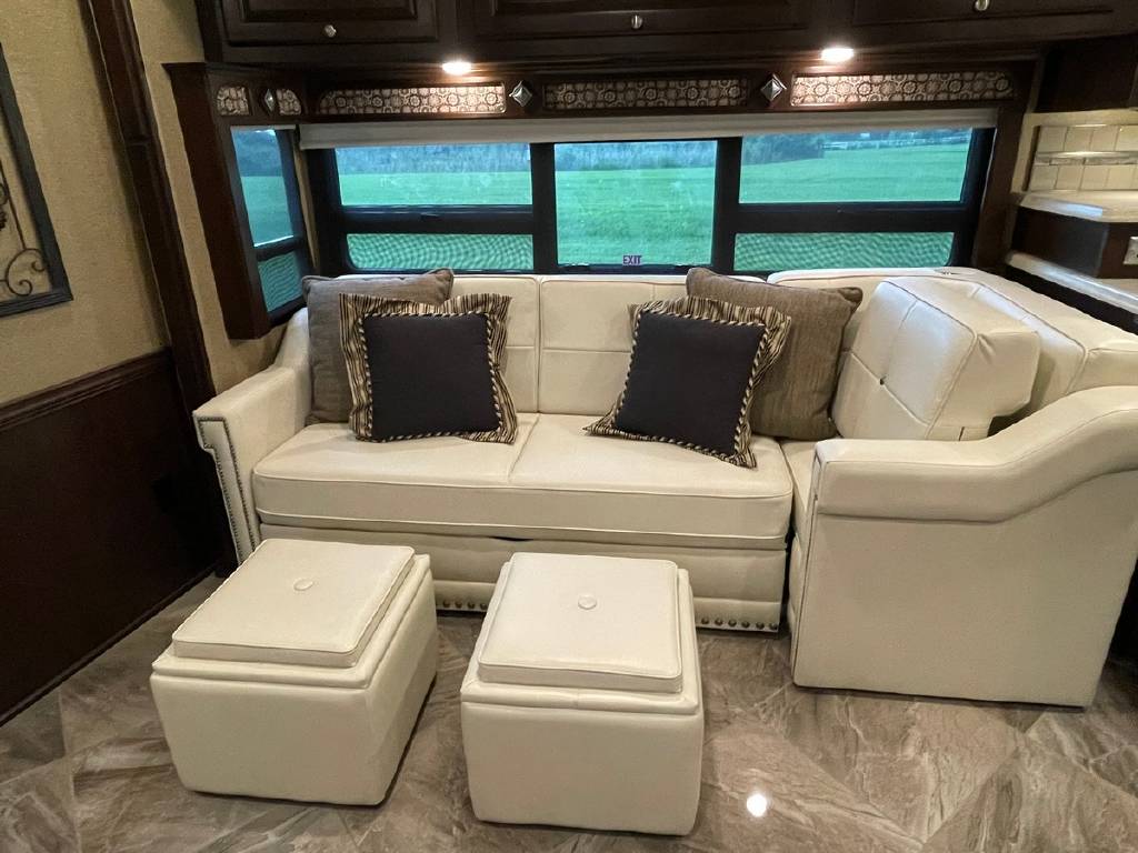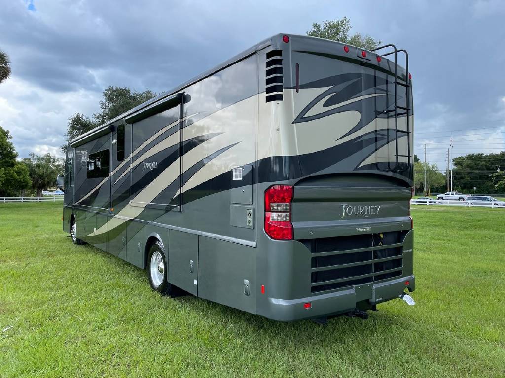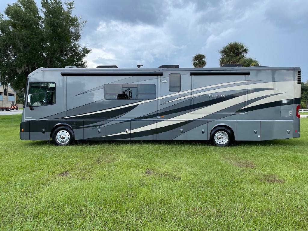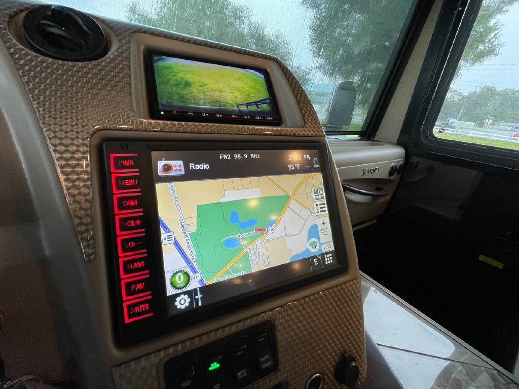 2016 Winnebago Journey 40R 3 slide motorhome with 53,223 miles. This couch is on a Maxum chassis powered by a 400-hp Cummins ISL 8.9L turbocharged diesel engine with Allison transmission. This coach has everything including Ultraleather ‘Rest Easy’ extendable sectional sofa, a massive HDTV with home theater soundbar, Glide & Dine dining table, fireplace, residential stainless steel French door refrigerator, microwave/convection oven, bath and a half, stackable washer/dryer, King size bed comfort control mattress, touch screen navigation and more!!!