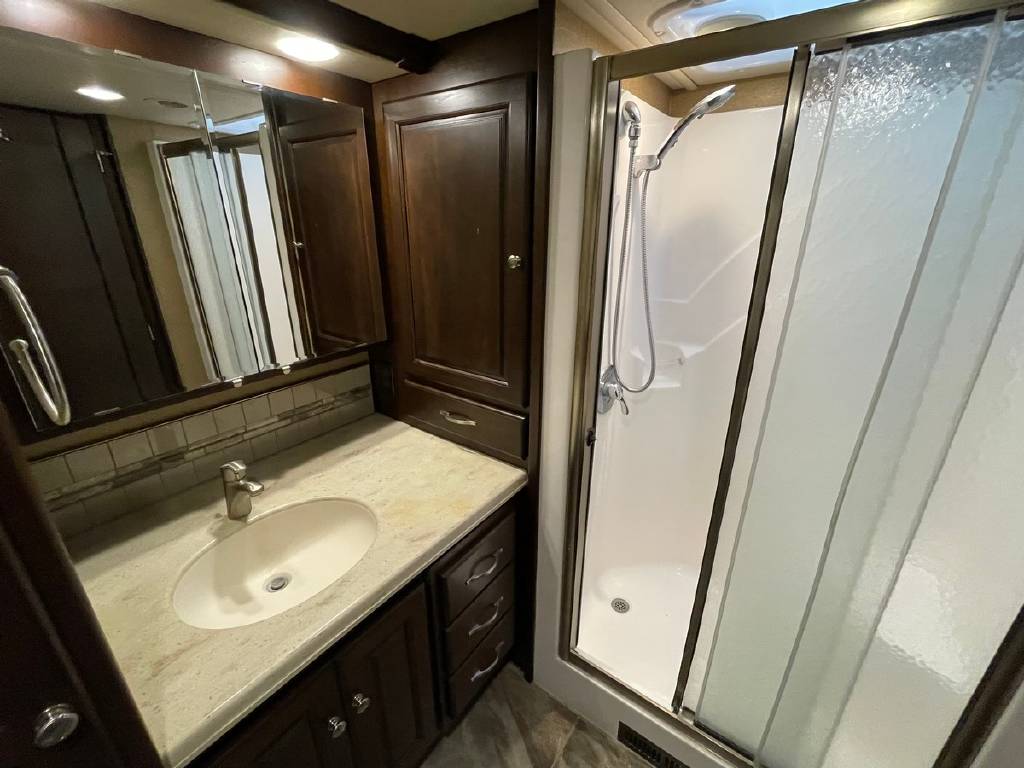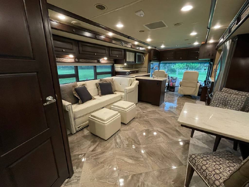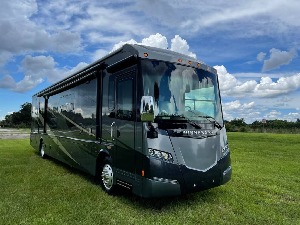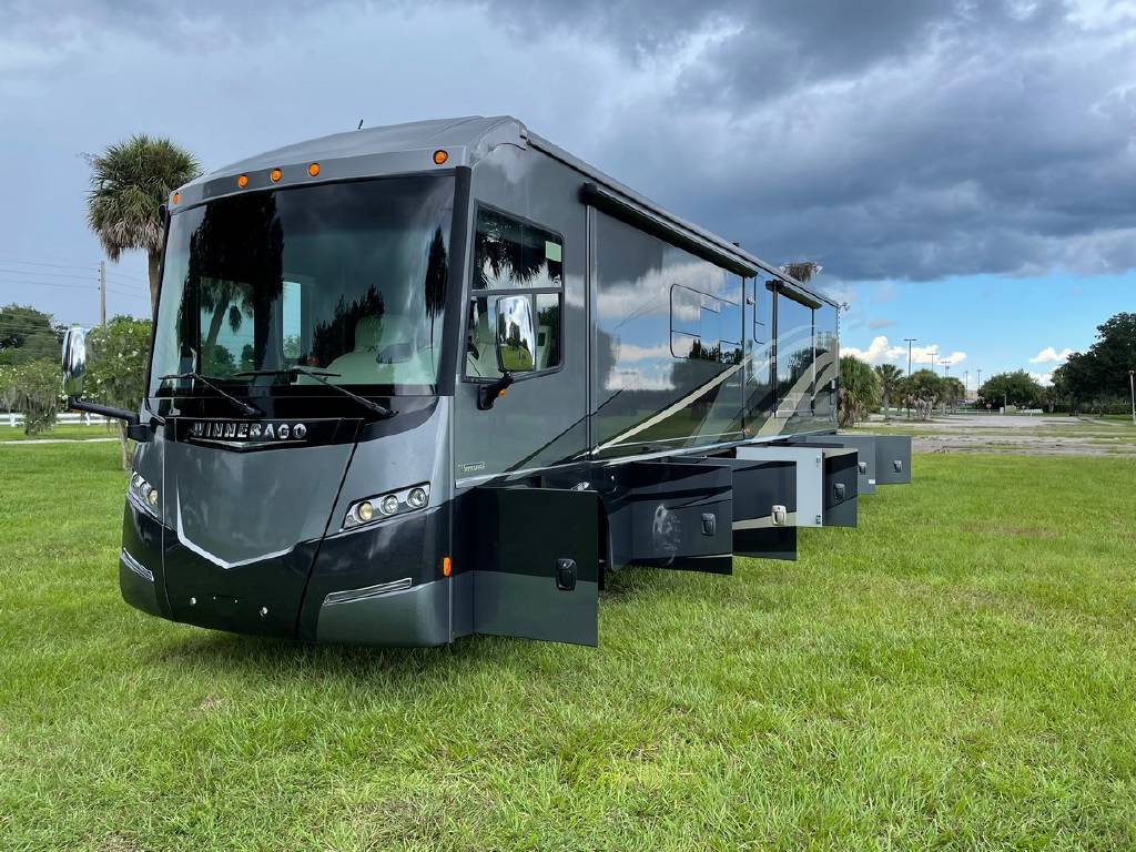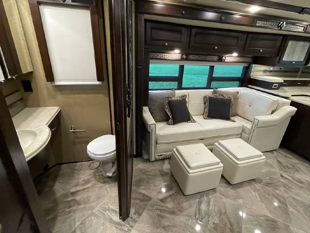 2016 Winnebago Journey 40R 3 slide motorhome with 53,223 miles. This couch is on a Maxum chassis powered by a 400-hp Cummins ISL 8.9L turbocharged diesel engine with Allison transmission. This coach has everything including Ultraleather ‘Rest Easy’ extendable sectional sofa, a massive HDTV with home theater soundbar, Glide & Dine dining table, fireplace, residential stainless steel French door refrigerator, microwave/convection oven, bath and a half, stackable washer/dryer, King size bed comfort control mattress, touch screen navigation and more!!!
