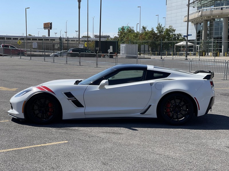 THIS… is a 2017 Chevrolet Corvette Grand Sport Coupe, finished in Arctic White with an Adrenaline Red interior. This Corvette features a desirable 7-speed manual transmission, and the odometer indicates about 10,600 miles. The attached Carfax vehicle history report shows no accidents in this Corvette’s past.