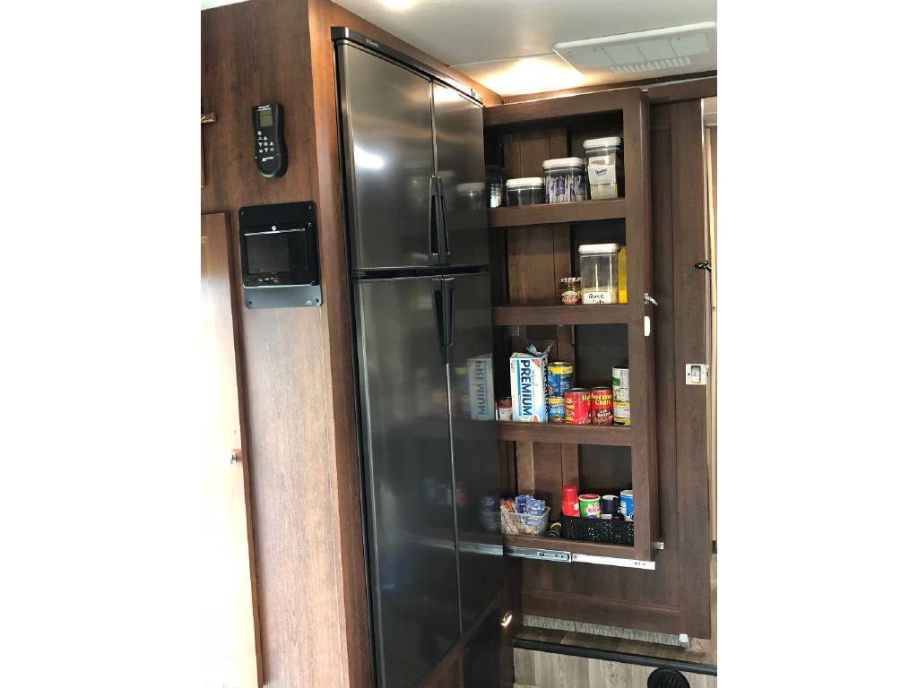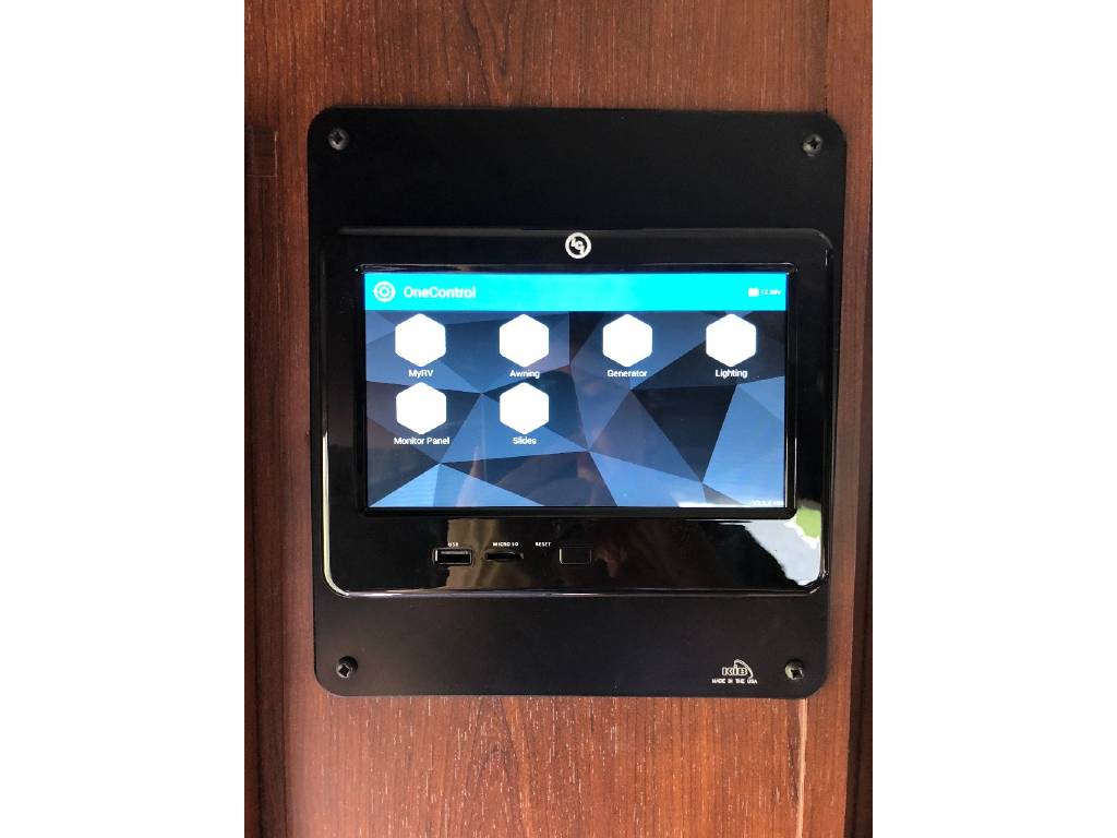 This coach is in immaculate condition and has alway been kept very clean. This coach is loaded with all of the options that are available including My RV smartphone/digital control & monitor system, stainless steel appliances, solid surface counters, heated remote mirrors, 360 degree camera system, entertainment system with interior and exterior speakers, slideroom toppers, power leather driver seating, 12CF refer with ice maker, 32″ external TV w/ DVD, bedroom TV w/ DVD, autoleveling jacks, heated enclosed tanks and Firestone Rite-Right suspension.