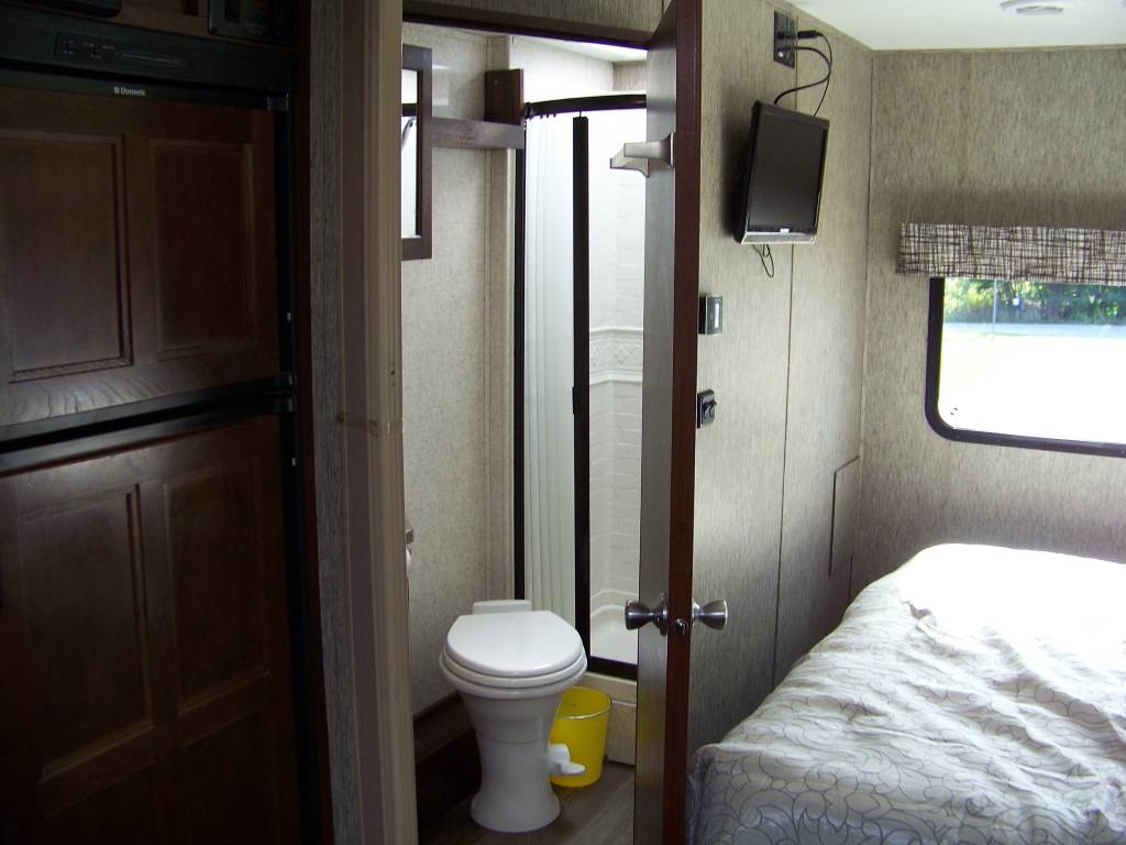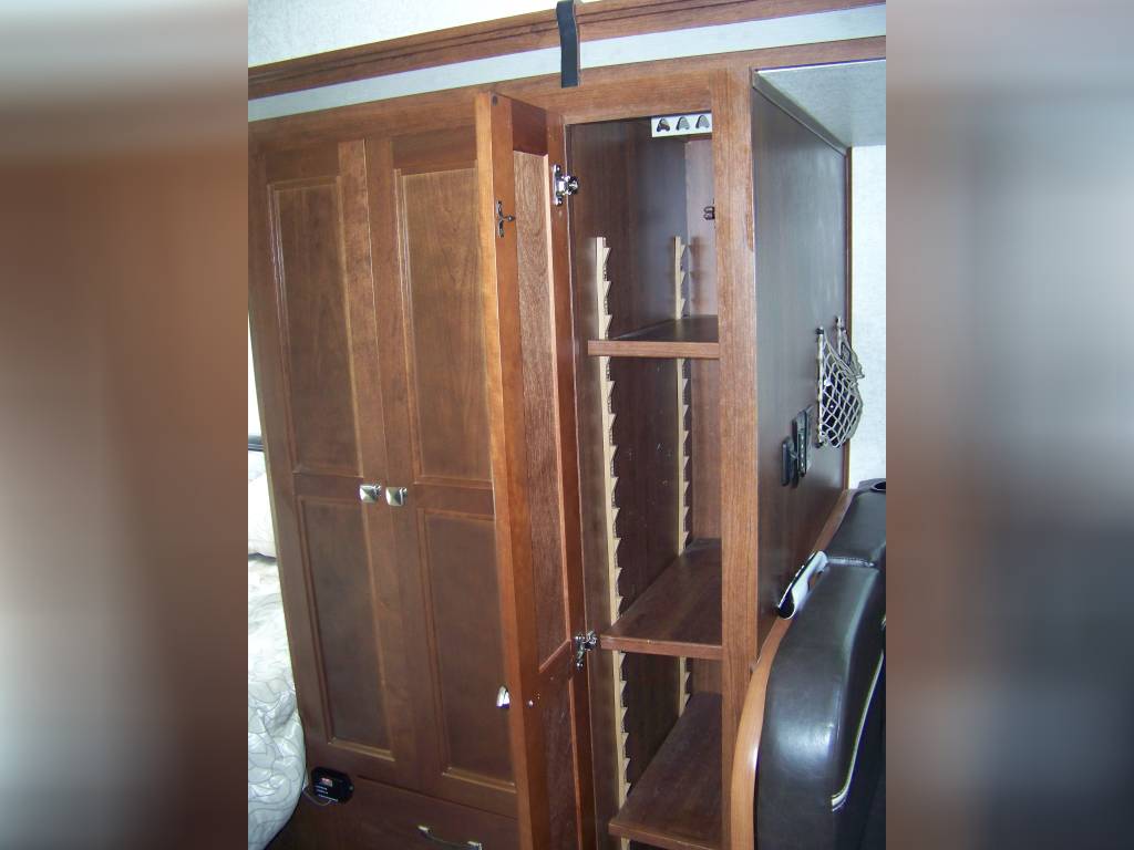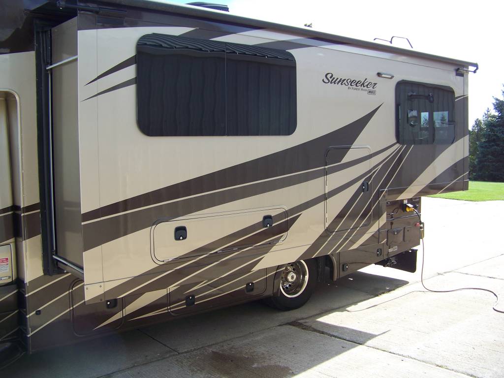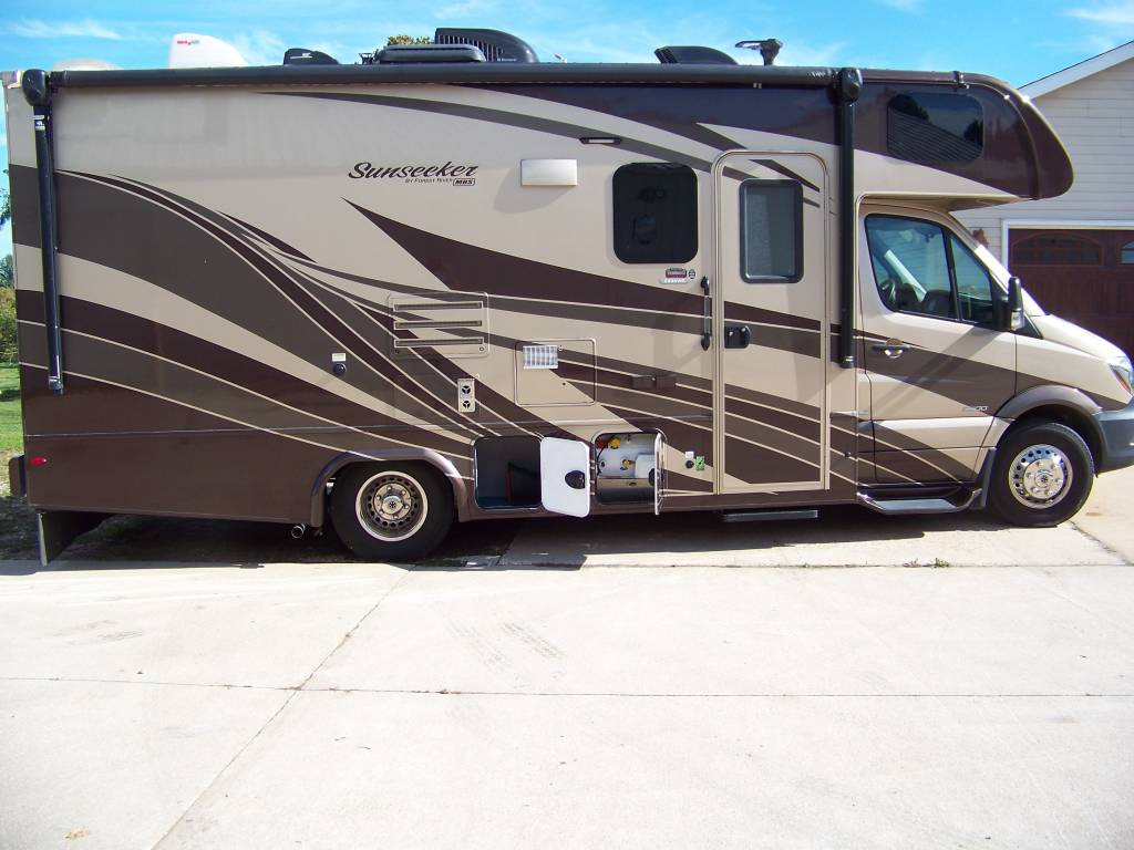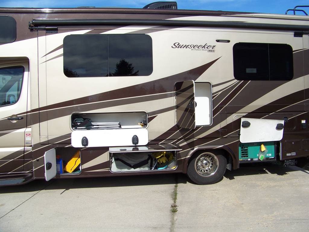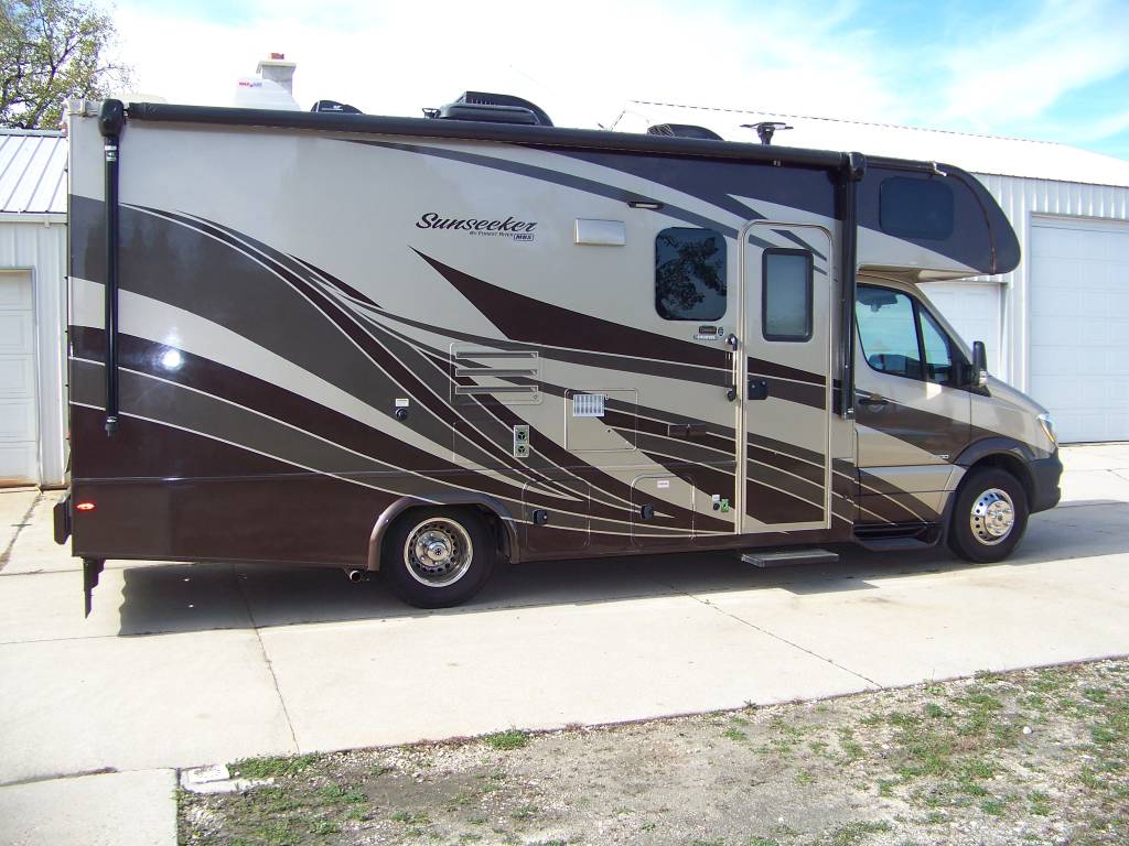 Unit Has: AC Power Monitor Rear Stabilizers Hellwig Sway Control Side Cameras Additional oak bathroom cabinet with mirror Porcelain Toilet Lots of storage Inside privacy panels for cab windows Microwave/Convection Oven Walk around queen sized bed One piece fiberglass roof, washed every year This unit has been very well maintained. Has always been stored indoors on a concrete floor, never out in the weather. Oil and filters changed every year. Cleaned and waxed 2-3 times per year. Averages 11.5-12.5 MPG towing a Chrysler Crossfire, non-towing 13-14 MPG. All airbag recalls have been taken care of.