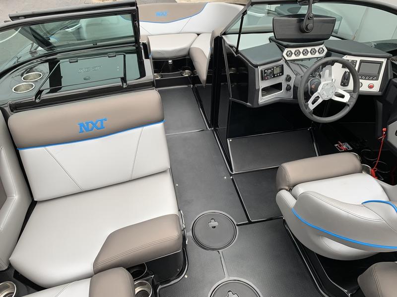 This 2017 NXT22 is “Surf Ready” and has been garage kept with one owner in excellent condition and dealer maintained since it was purchased. Panther blue mica flake and black hull makes a statement on and off the water. At 22 feet and highly driveable, it’s got room for more friends and family to wakeboard, ski, tube and surf. You won’t want to miss this boat!