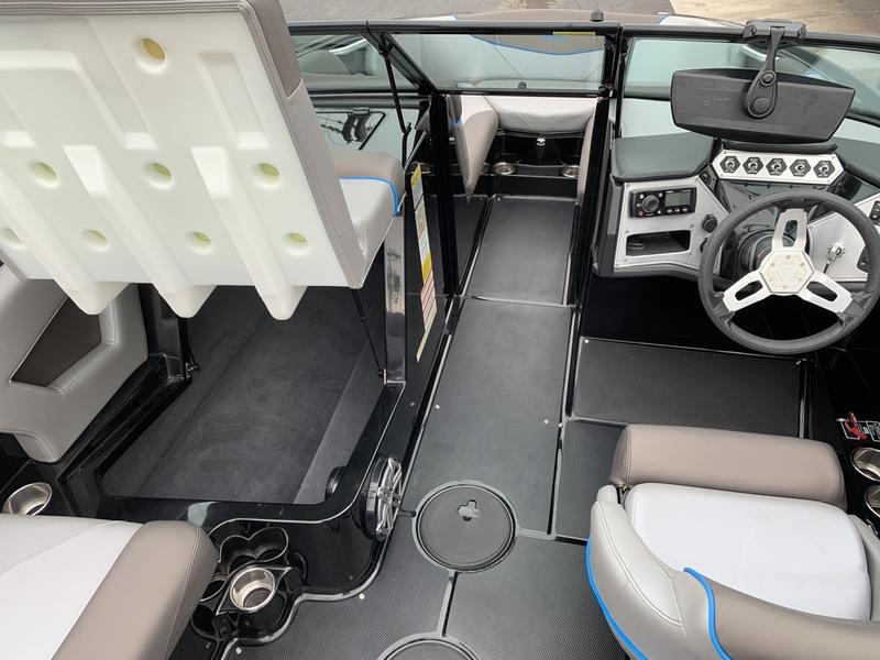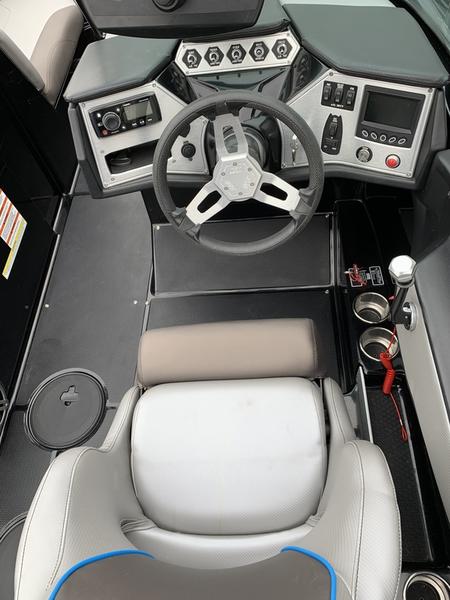 Surf Package:(Attitude Adjustment Plate, NXT Wake Shaping Device, Power Distribution Module, Ballast, Plumbed Ballast Bags) Convenience Package: (Swivel Board Racks, Depth Finder, Water Temp, Black Cover, Black Bimini Top, Floor Covering, Bow & Stern Cleats) Advanced Audio Package: (4.3″ LCD Color Screen w/ 5 Button Interface, 2 JL Tower Speakers, 5-Ch Amp) Other: Fiberglass Swim Platform Trailer: Tandem Axle w/ Brakes, Low Profile Fenders, Low Profile Wheels, Tire, Transom Tie Down Straps Standard Features: EZ Change Oil Kit, Zero Off Wakeboard GPS Based Speed Control, Three 12-Volt DC Power Outlets, Air Temp Sensor, Engine Temp, Fuel & Oil Pressure Display, Mirror, Tilt Helm, Triple Tank Ballast System.