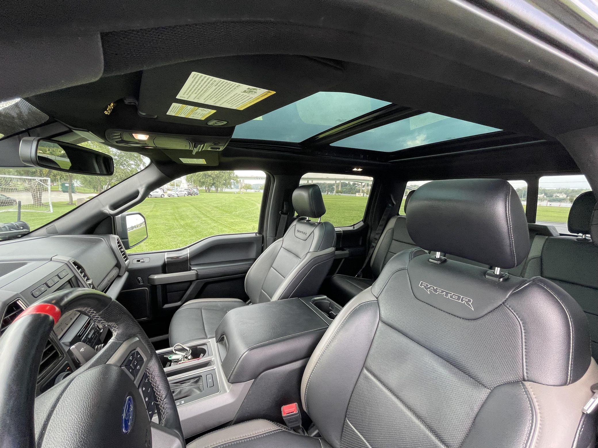 THIS… is a 2018 Ford F-150 Raptor, finished in Magnetic Metallic with a black interior. Factory equipment includes 17-inch wheels, a Raptor-specific off-road suspension system, skid plates, running boards, a trailer hitch, heated and ventilated front seats, heated rear seats, and rear parking sensors. Designed to speed across the desert, Baja racing-style, the second-generation F-150 made its debut for the 2017 model year with an impressive list of off-road hardware and more horsepower from a downsized, twin-turbocharged V6 engine. It weighed about 500 pounds less than its predecessor thanks in part to the widespread use of aluminum. Power for this Raptor comes from a turbocharged 3.5-liter “EcoBoost” V6, which produces 450 horsepower and 510 lb-ft of torque. The modifications might increase those figures, but a dyno sheet is not available. The engine spins the 4 wheels via a 10-speed automatic transmission linked to a pair of shift paddles and a 2-speed transfer case.