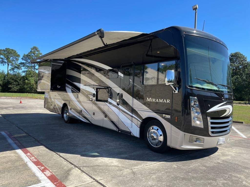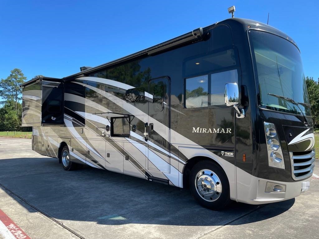 2018 Thor Miramar 35.3 , 2 slides , sleeps 6, KING BED, washer & dryer combo 1.5 Bath , rear & side cameras , auto level, outside tv , steering stabilizers , new Koni shocks , power awning, non smoker , fireplace, excellent condition, no issues .