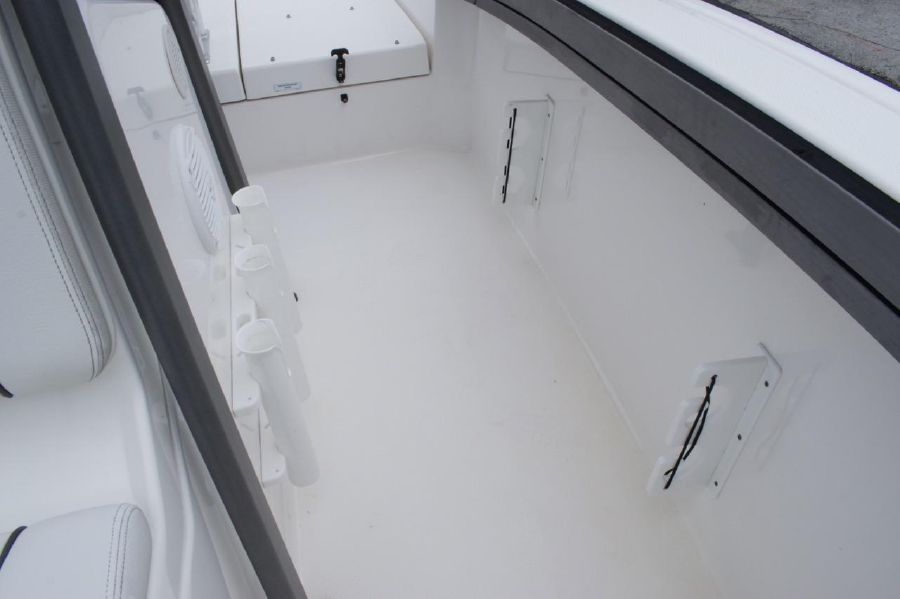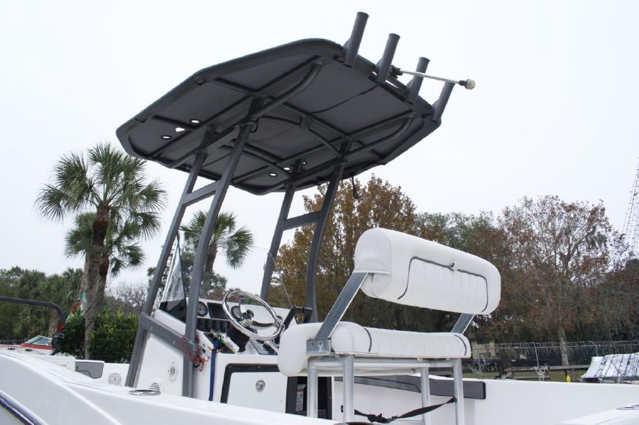 This Boat is loaded with features including T-top, rod holders, stainless steel cupholders, stainless steel grab handles, bow cushion package, leaning post with back rest, and more.