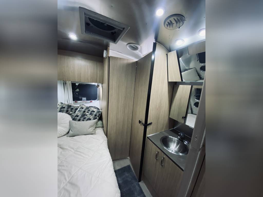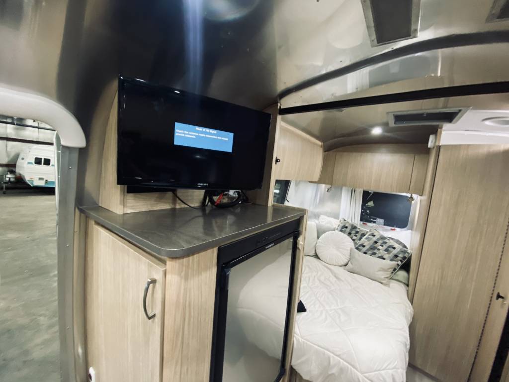 2019 Flying Cloud 19CB corner bed with the wild honey and landmark wood interior. Low usage and stored indoors from the elements, this Flying cloud comes with several extras in addition to the standard options offered by Airstream: Solar Panel, Window Awning Package, Convection Microwave, 3 Burner Cooktop, Remote Tire Pressure Monitoring System, Soft starter for AC, Upgraded Smart TV,Samsung DVD Player, HDMI Cable and Apple adapter to stream from an iPhone or iPad, Complete Hitch and Stabilizer Bar System, Small Portable Gas Grill, Portable Inflatable Automatic Air Mattress.