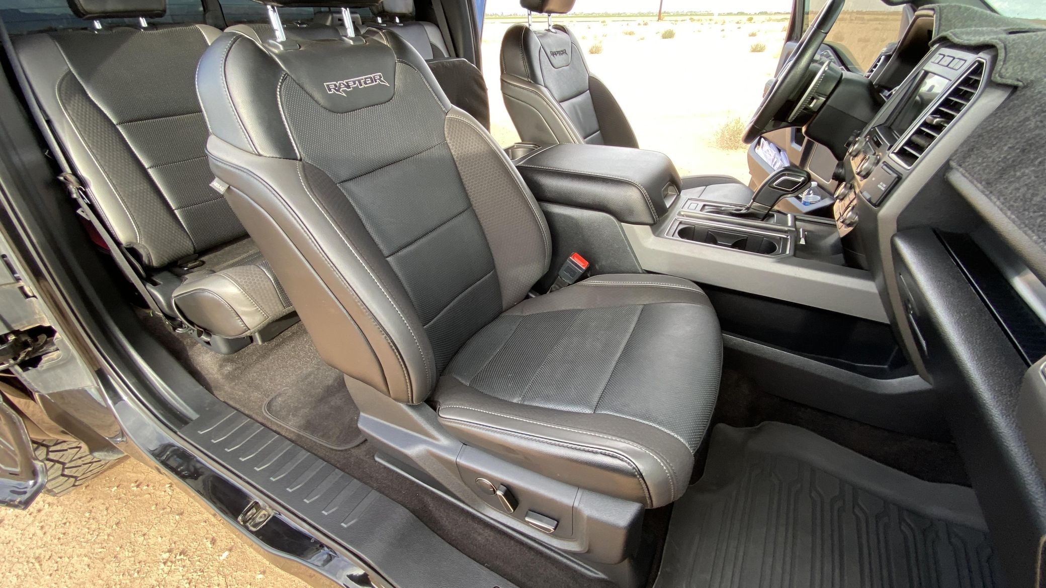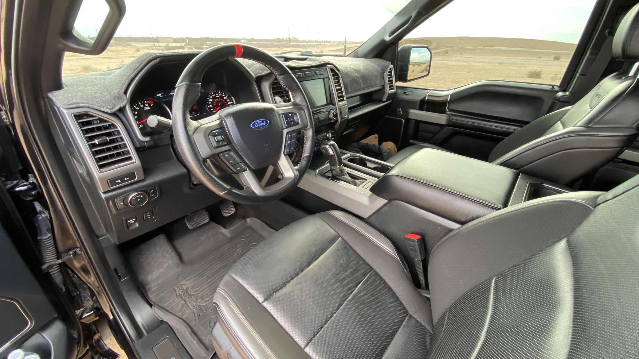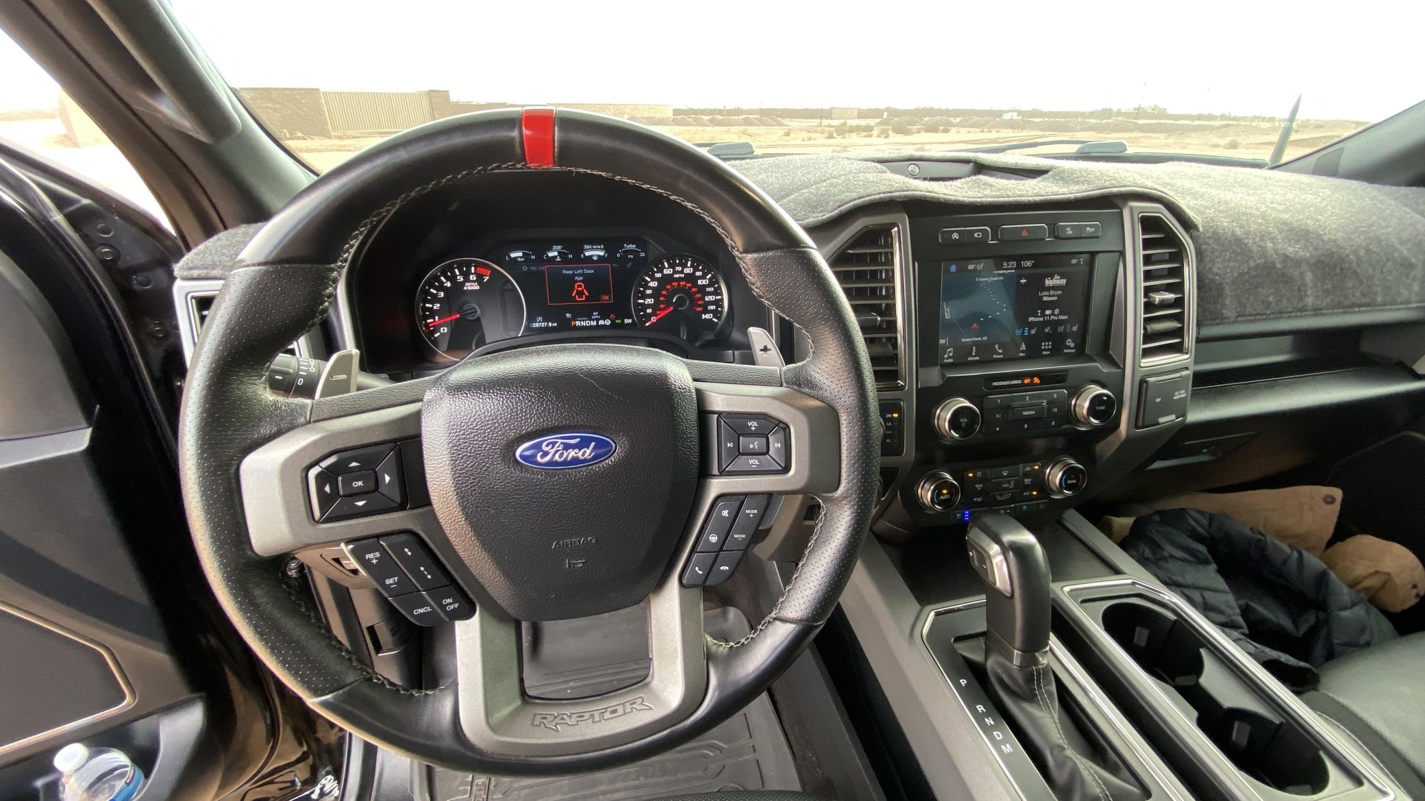 Power for this Raptor comes from a turbocharged 3.5-liter “EcoBoost” V6 engine, which produces 450 horsepower and 510 lb-ft of torque. It spins the four wheels via a 10-speed automatic transmission linked to a pair of shift paddles and a 2-speed transfer case.