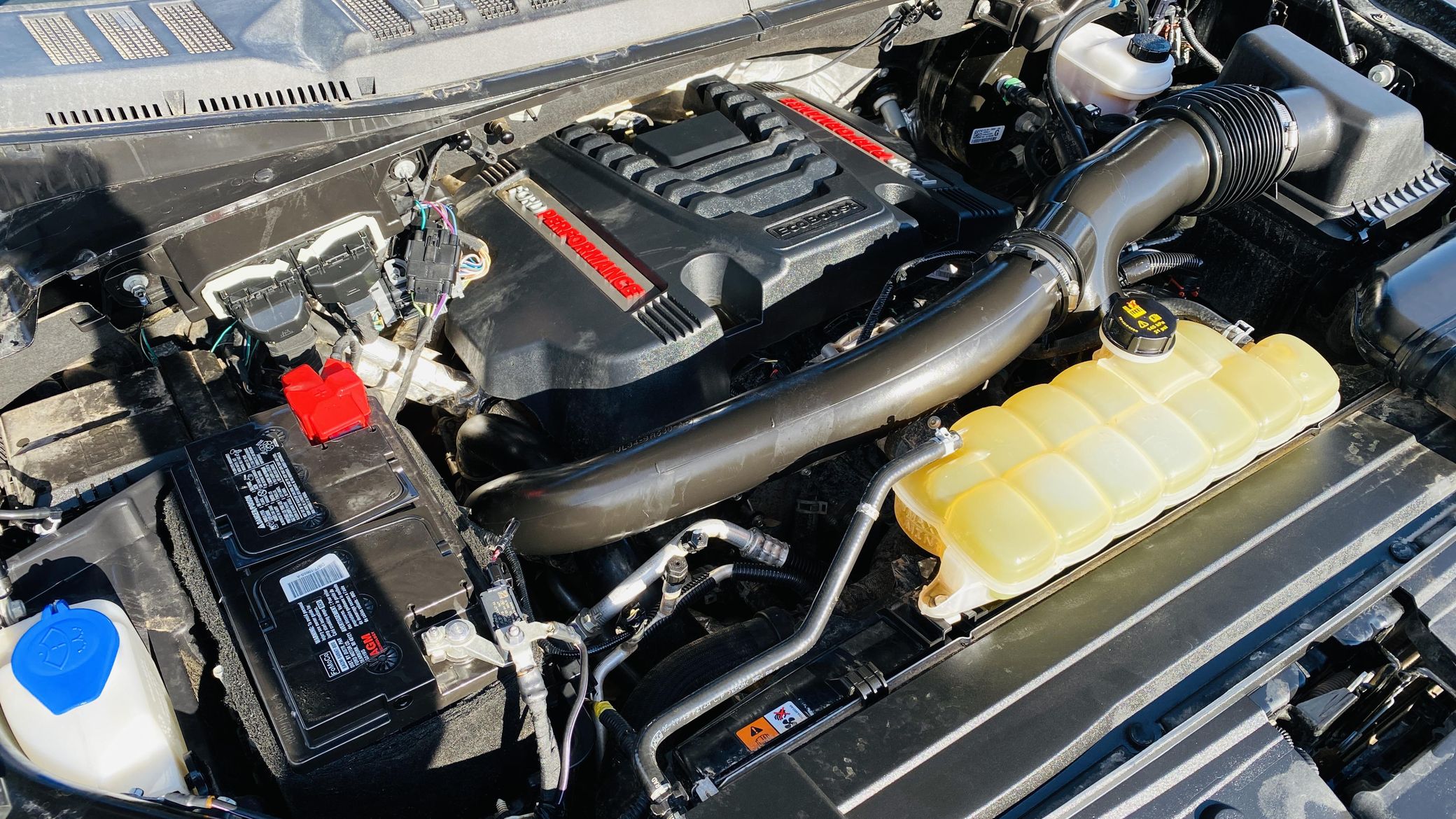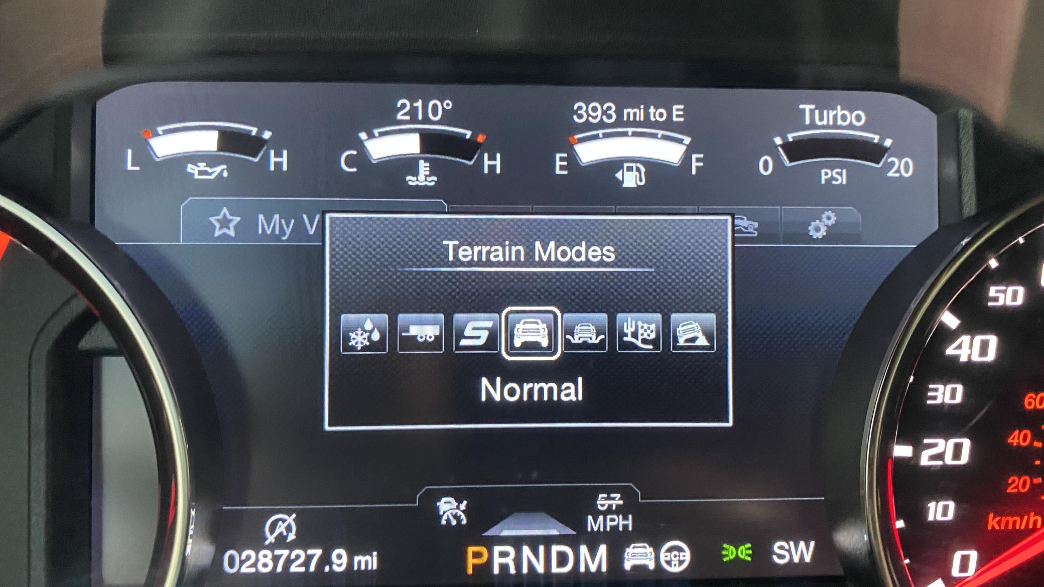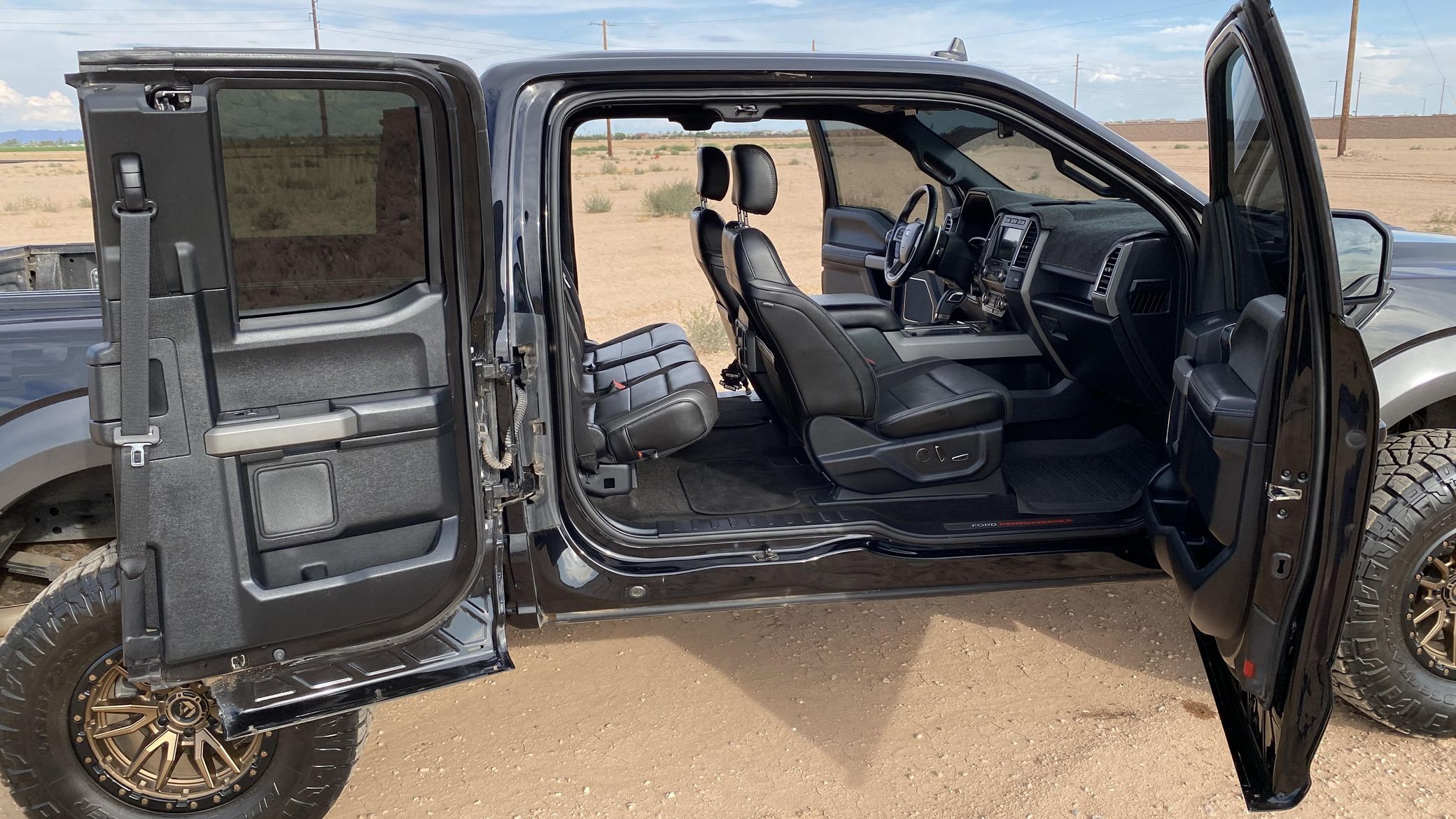 Power for this Raptor comes from a turbocharged 3.5-liter “EcoBoost” V6 engine, which produces 450 horsepower and 510 lb-ft of torque. It spins the four wheels via a 10-speed automatic transmission linked to a pair of shift paddles and a 2-speed transfer case.